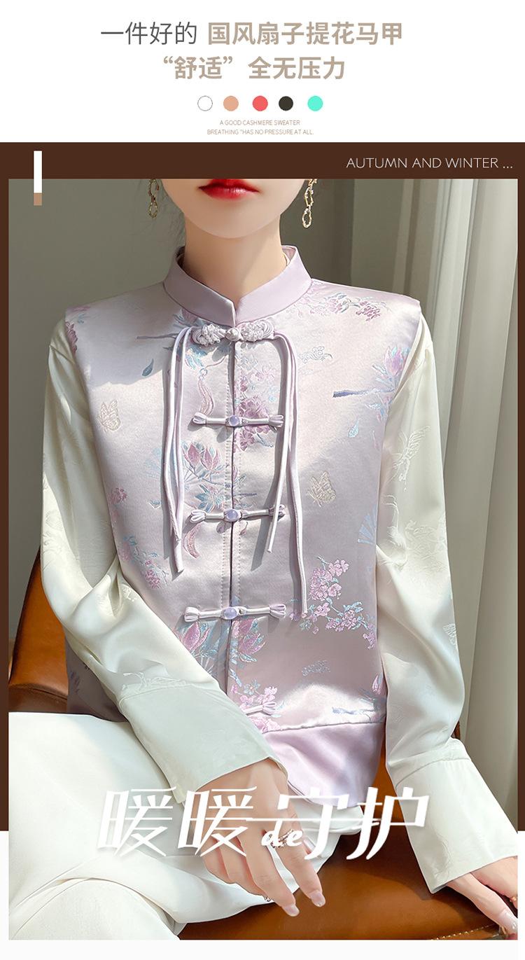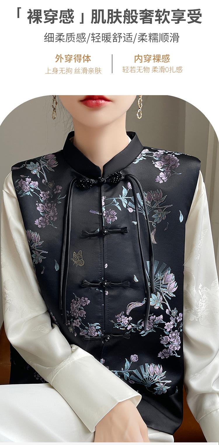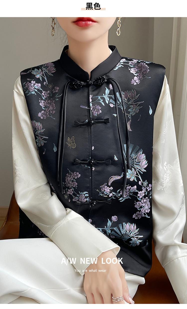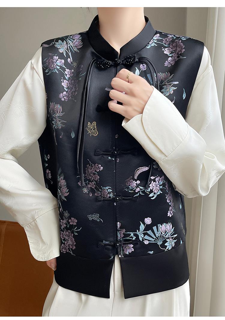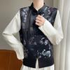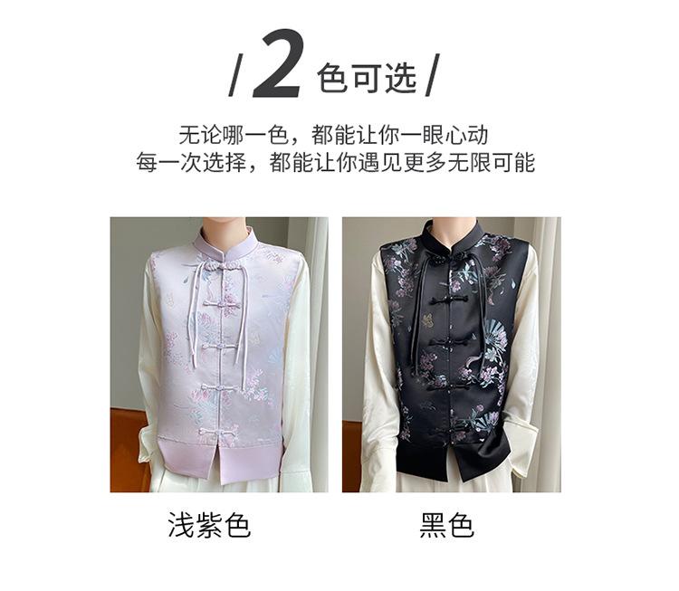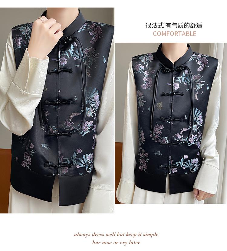 Otoño e Invierno 2024 Nuevo Estilo Chino Estilo Nacional Elegante Satén Cuello Vertical Sin Mangas Chaleco Cárdigan Hebilla Jacquard Chaleco