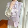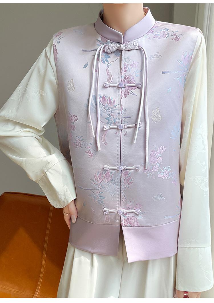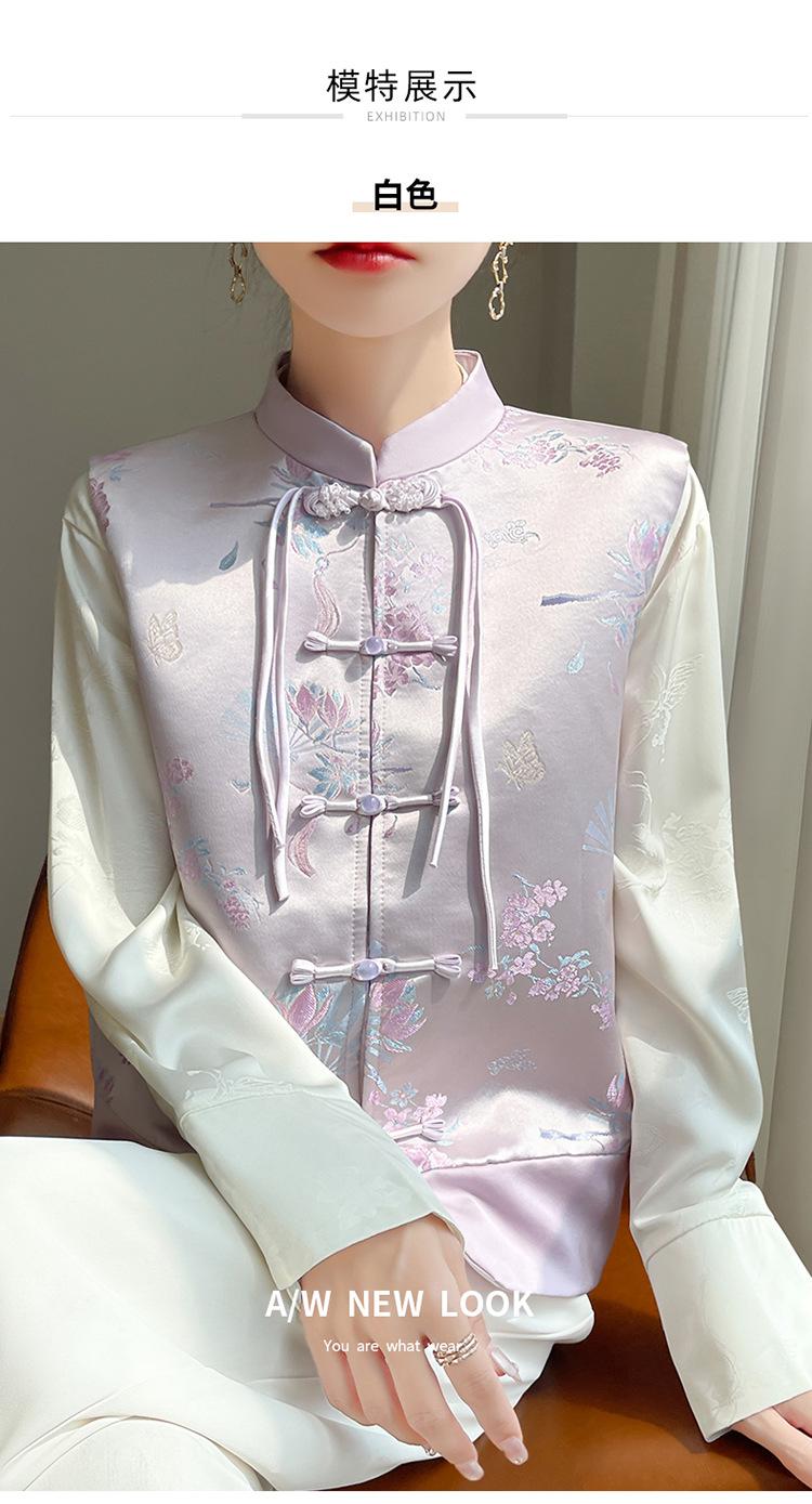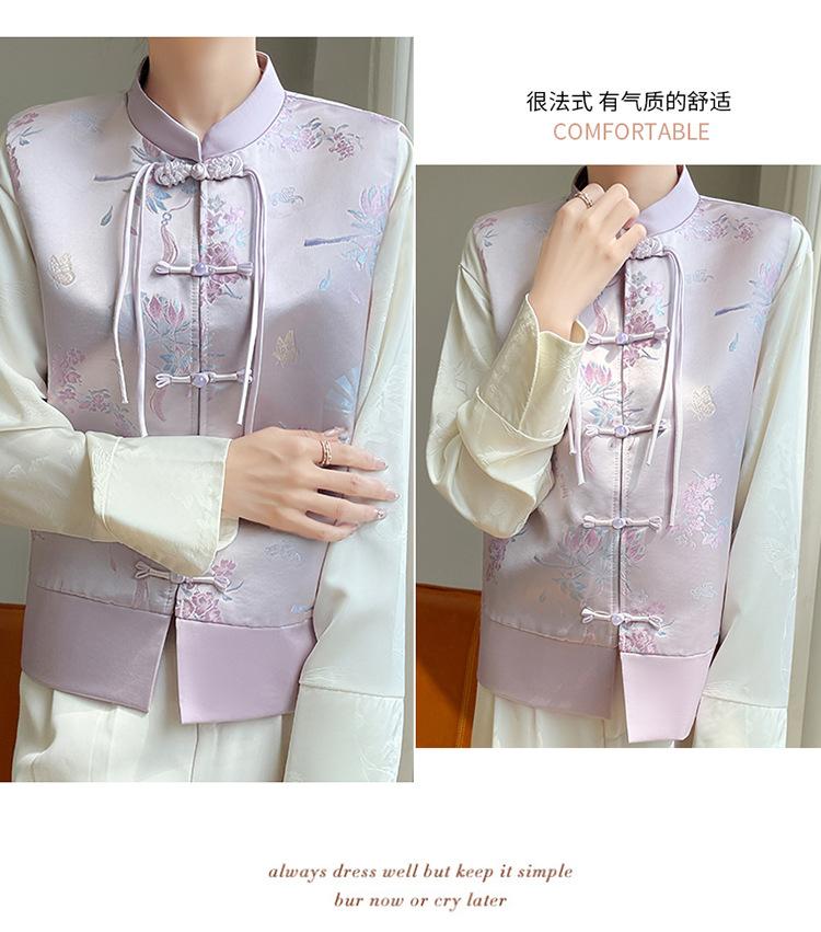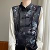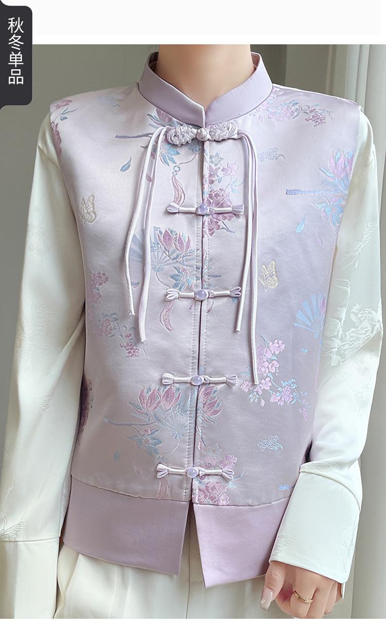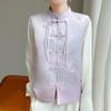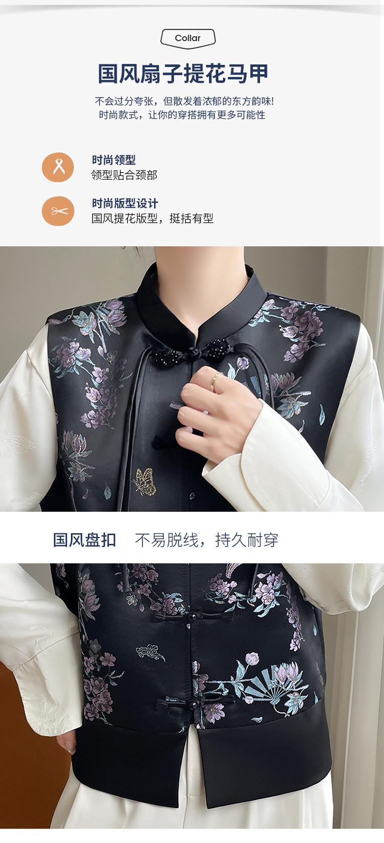Otoño e Invierno 2024 Nuevo Estilo Chino Estilo Nacional Elegante Satén Cuello Vertical Sin Mangas Chaleco Cárdigan Hebilla Jacquard Chaleco