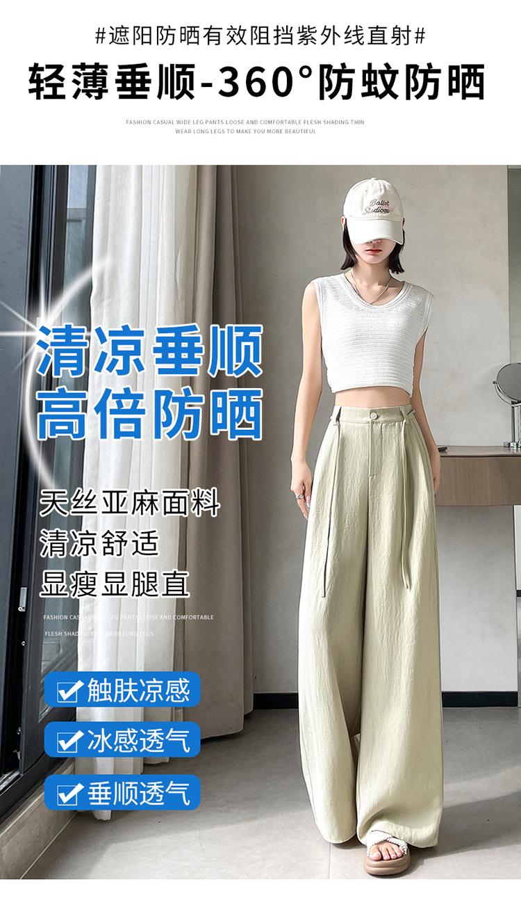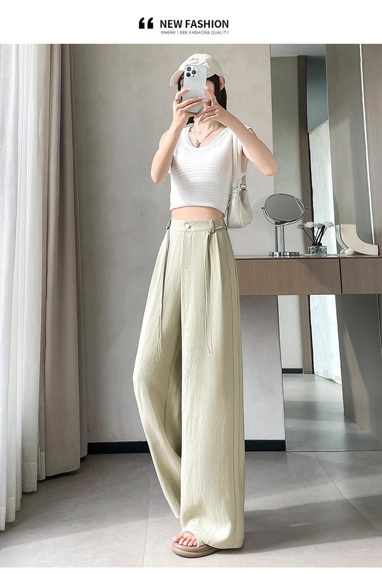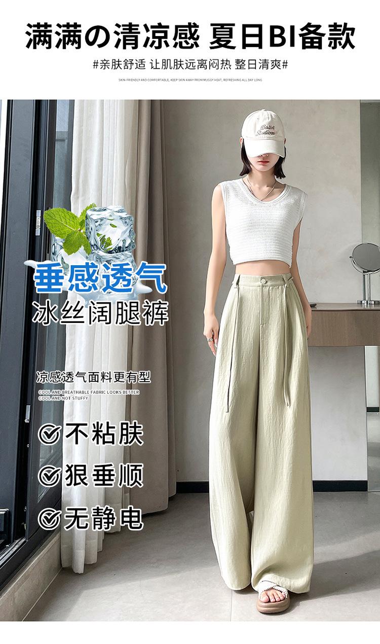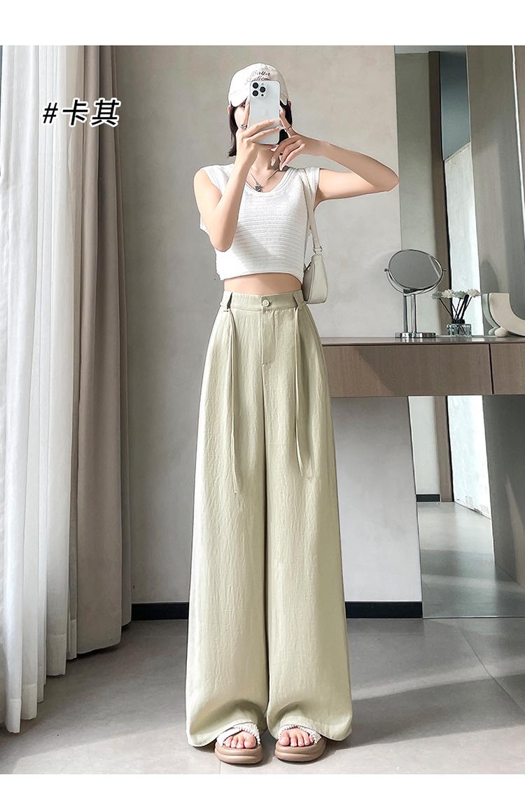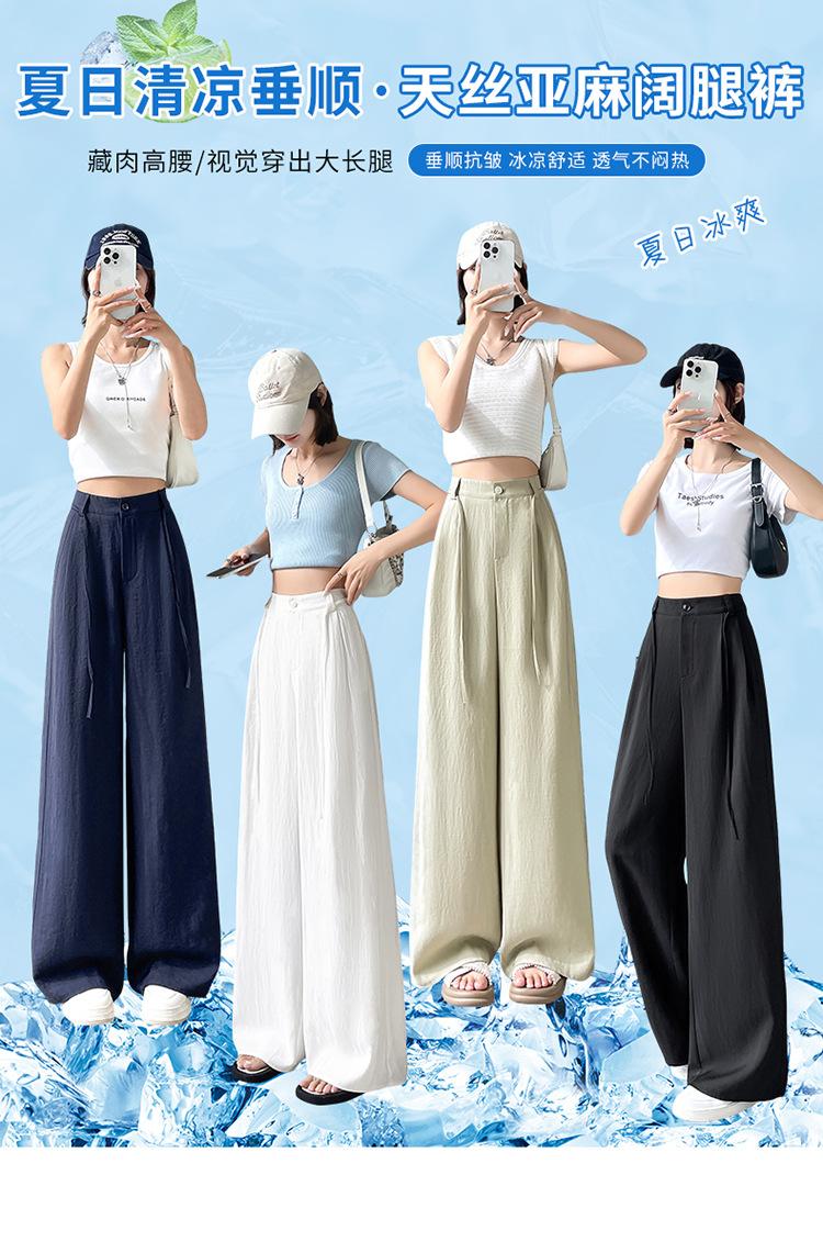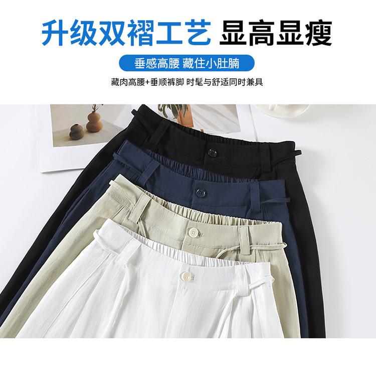 Pantalones de Pierna Ancha de Lino Tencel Verano 2025 Cintura Alta Casual Pantalones de Seda Helada Rectos Pantalones para Barrer el Piso Mujer
