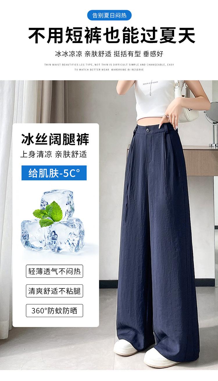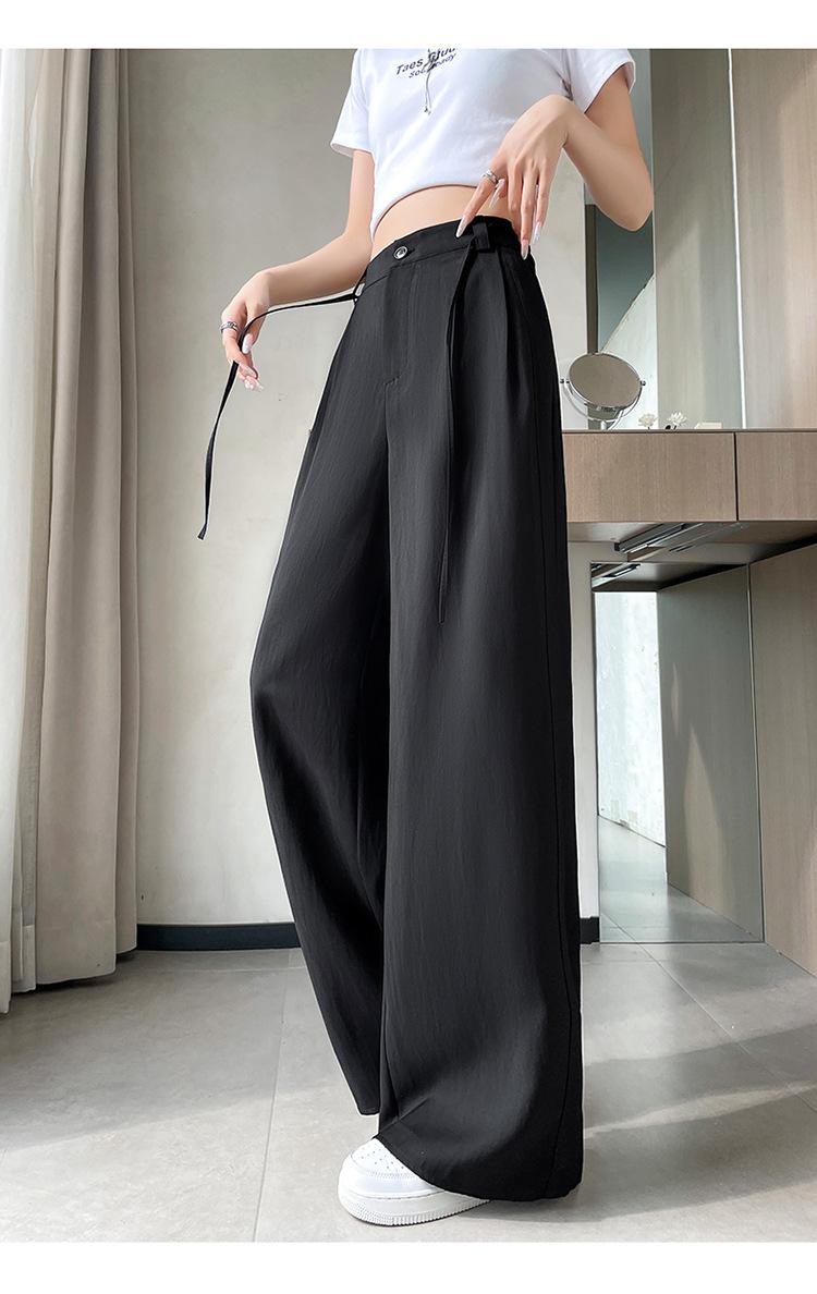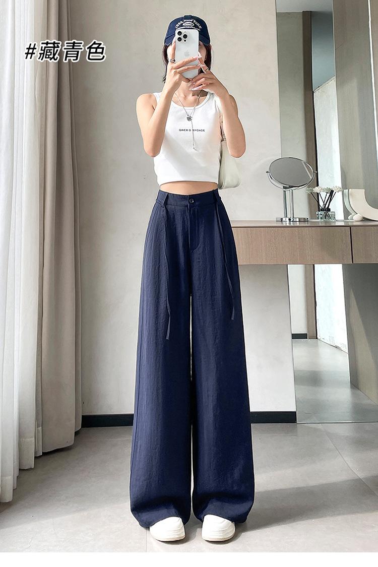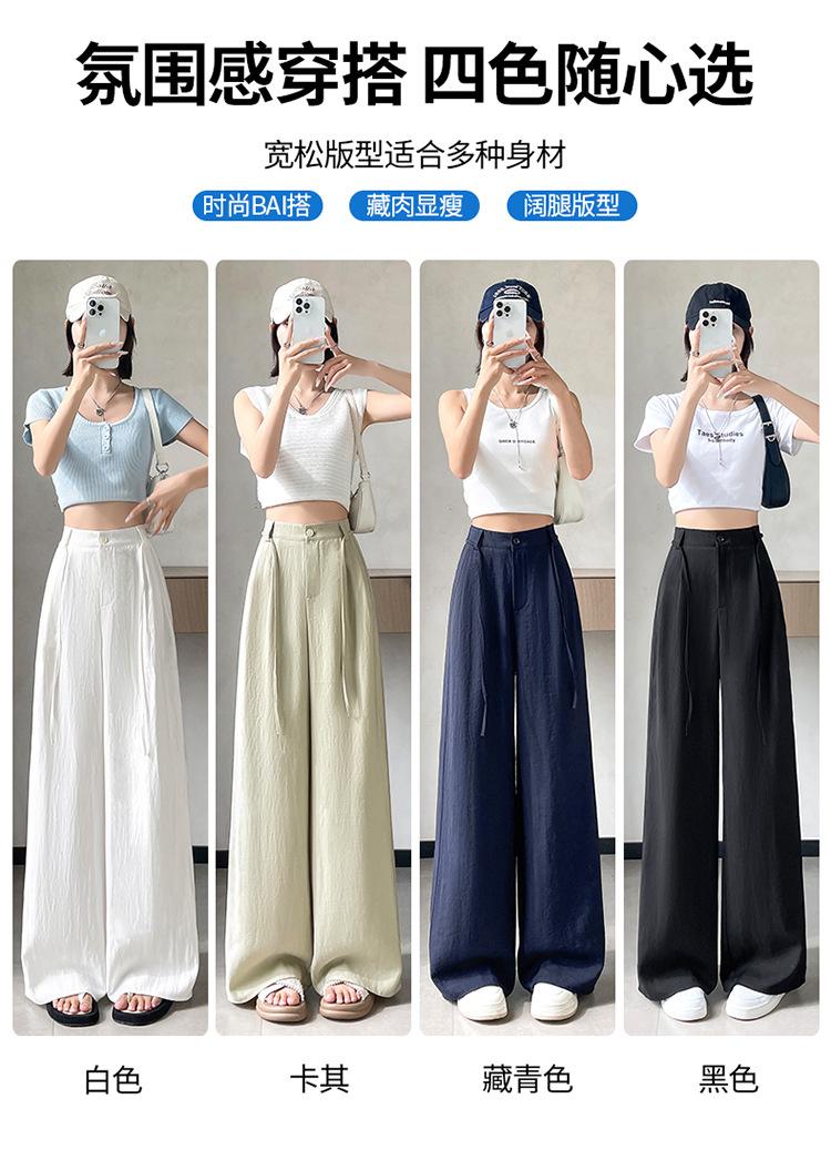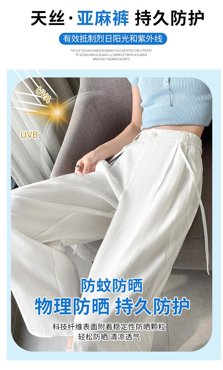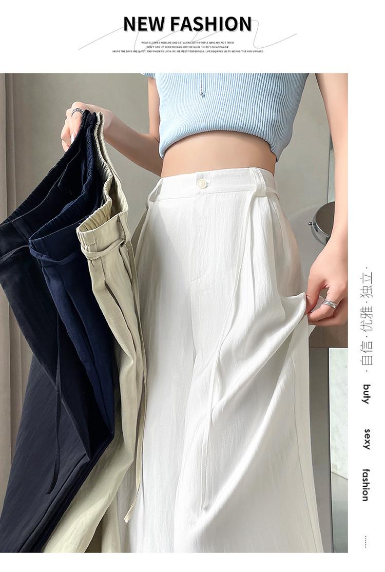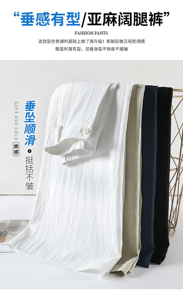 Pantalones de Pierna Ancha de Lino Tencel Verano 2025 Cintura Alta Casual Pantalones de Seda Helada Rectos Pantalones para Barrer el Piso Mujer