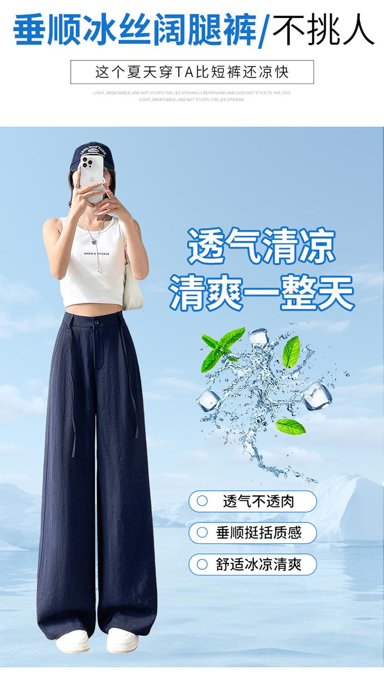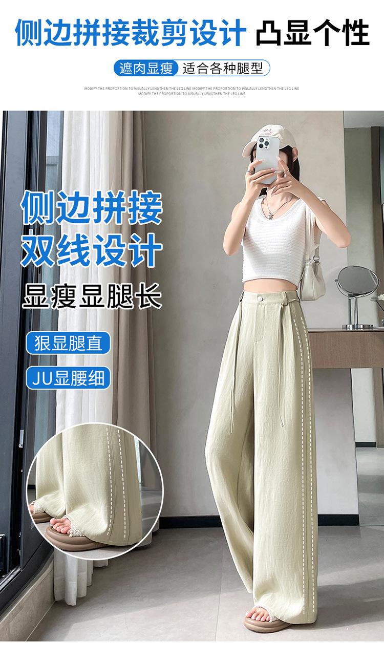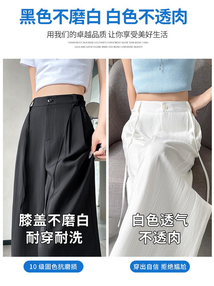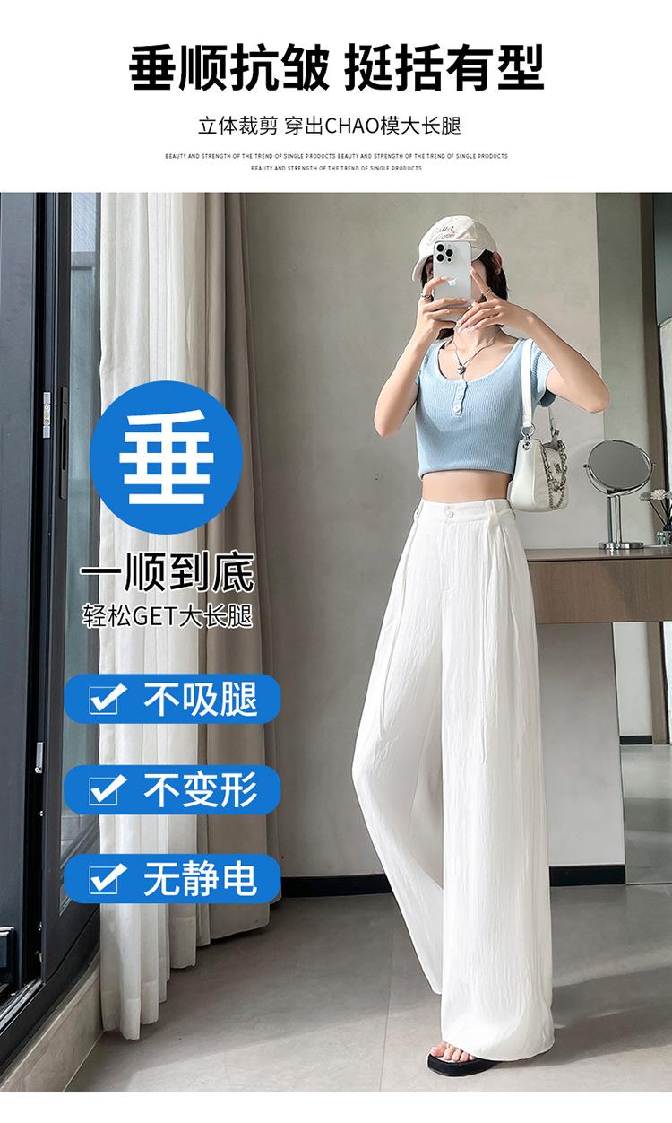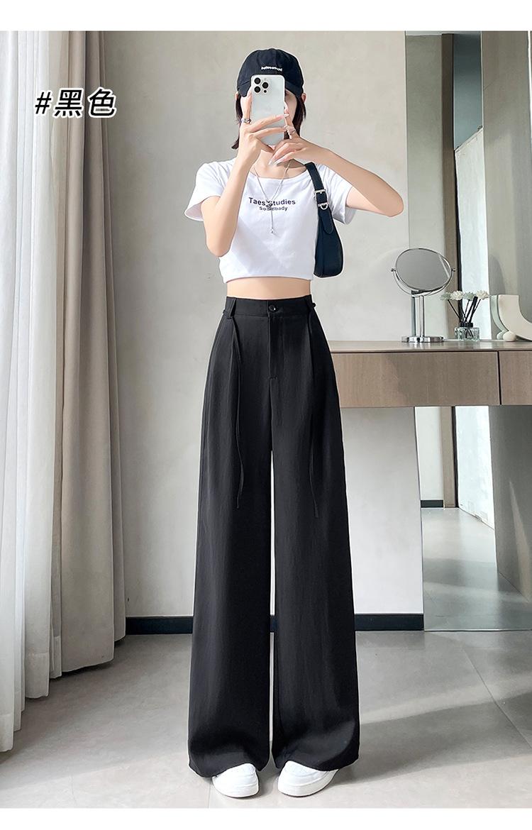Pantalones de Pierna Ancha de Lino Tencel Verano 2025 Cintura Alta Casual Pantalones de Seda Helada Rectos Pantalones para Barrer el Piso Mujer