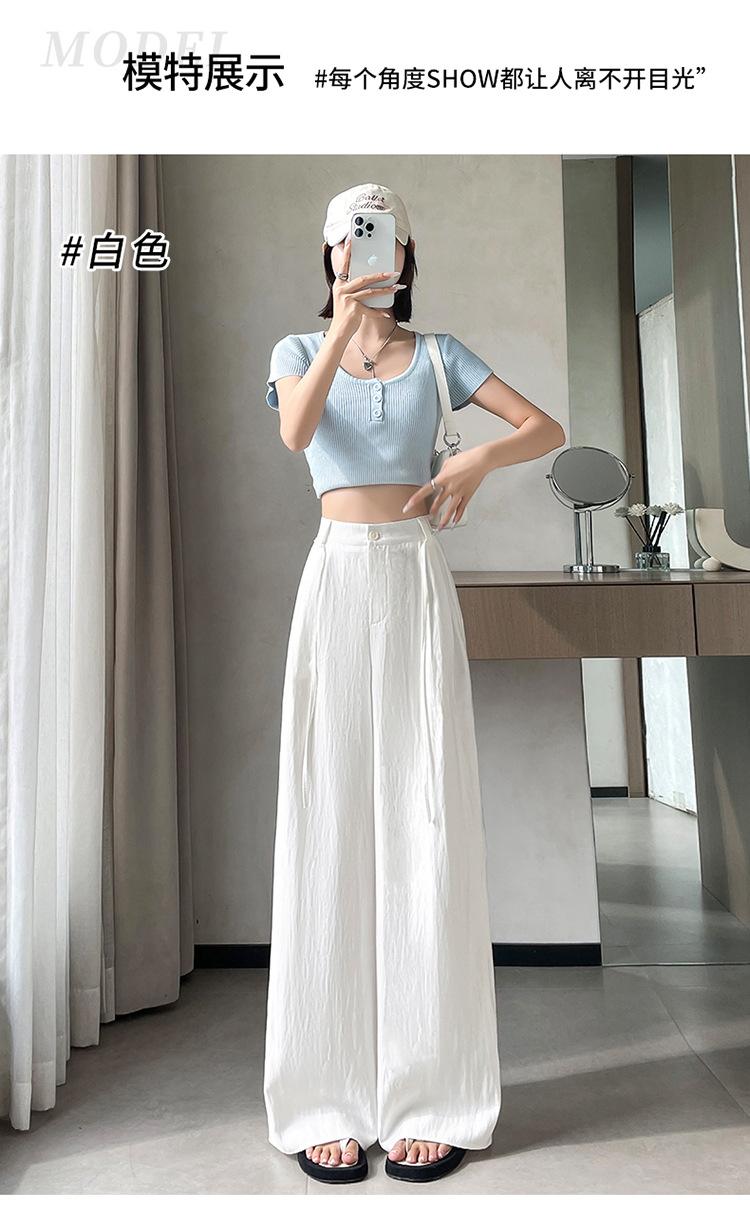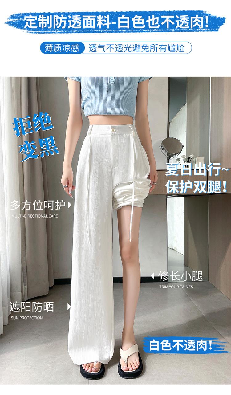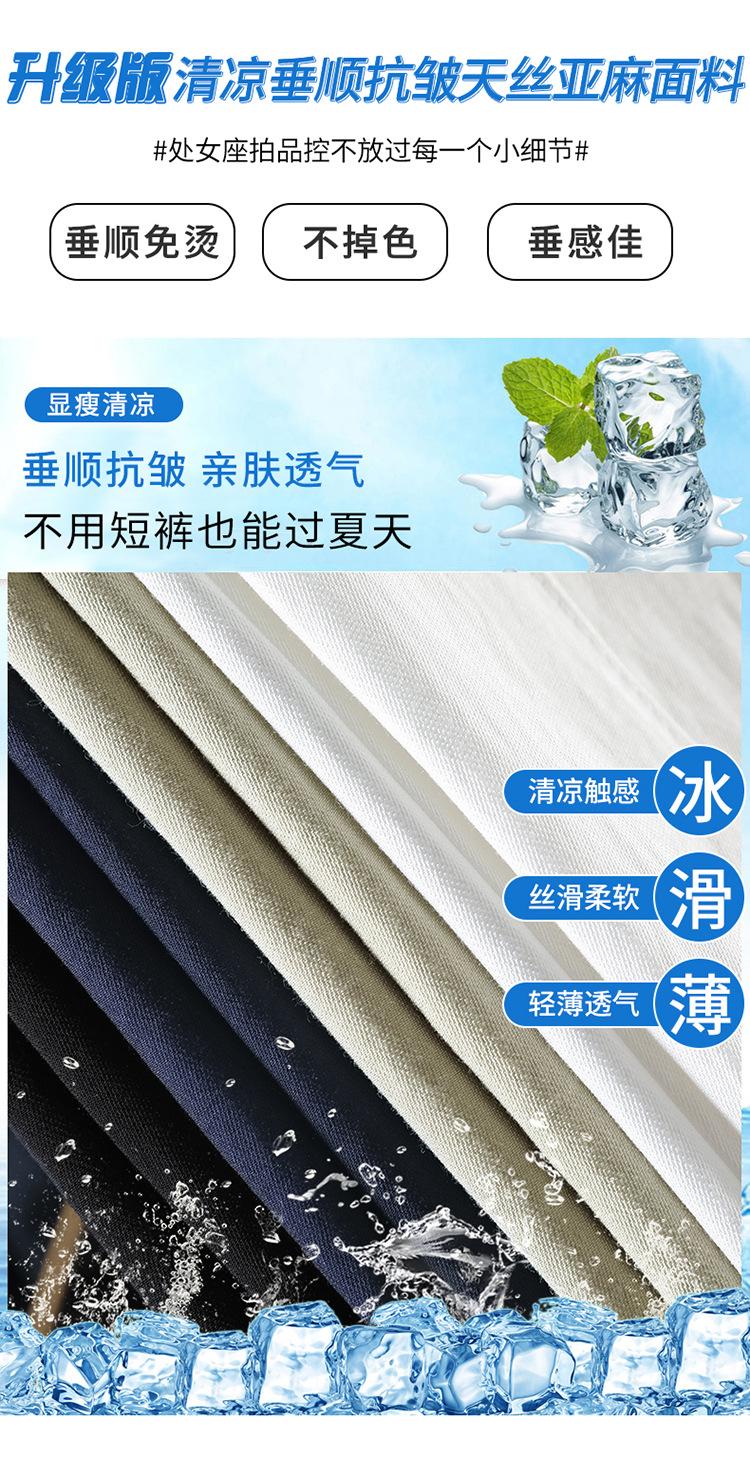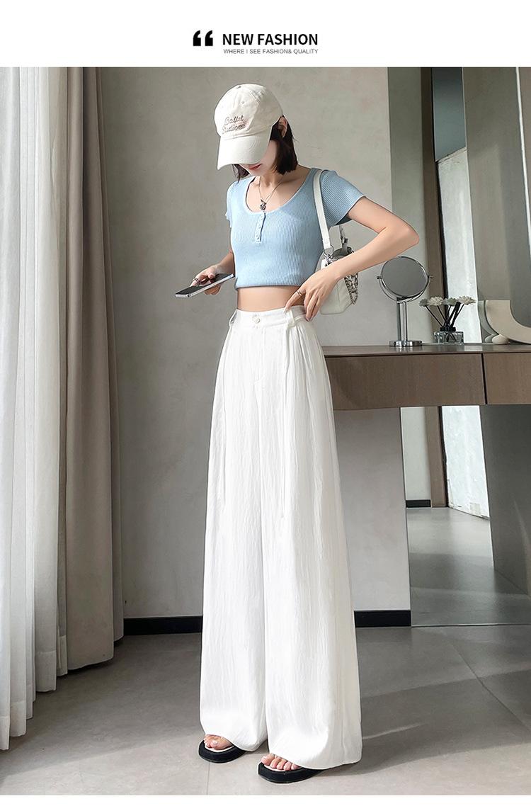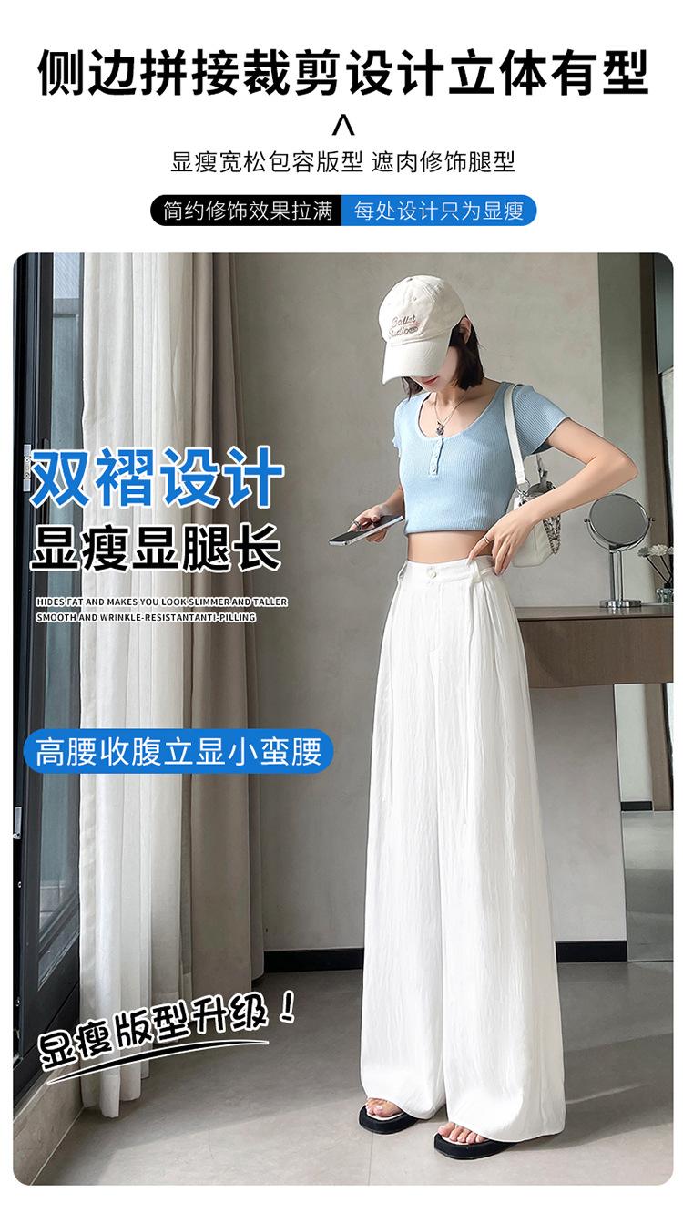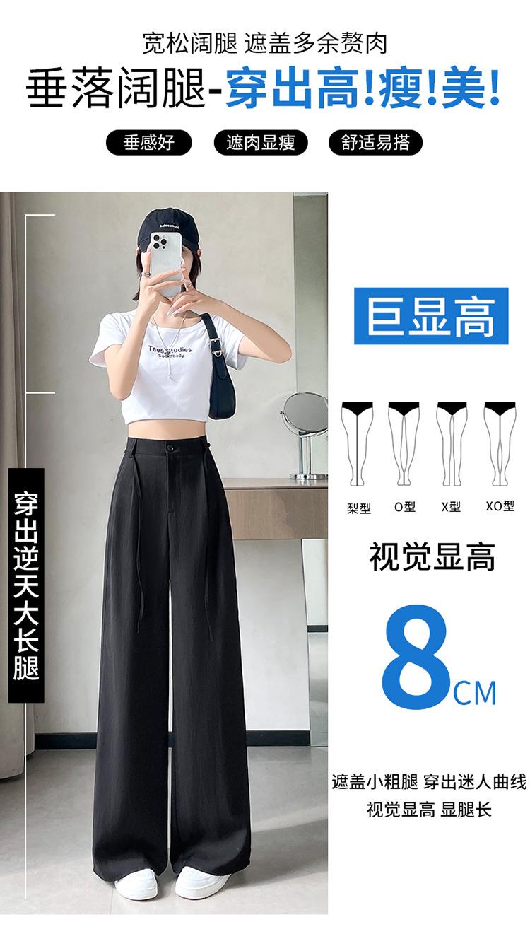 Pantalones de Pierna Ancha de Lino Tencel Verano 2025 Cintura Alta Casual Pantalones de Seda Helada Rectos Pantalones para Barrer el Piso Mujer