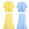 Exclusivo Transfronterizo Moda Europea y Americana Aliexpress Ins Popular Chaqueta para Mujer Estilo Globo Cuello Redondo + Falda Casual Versátil