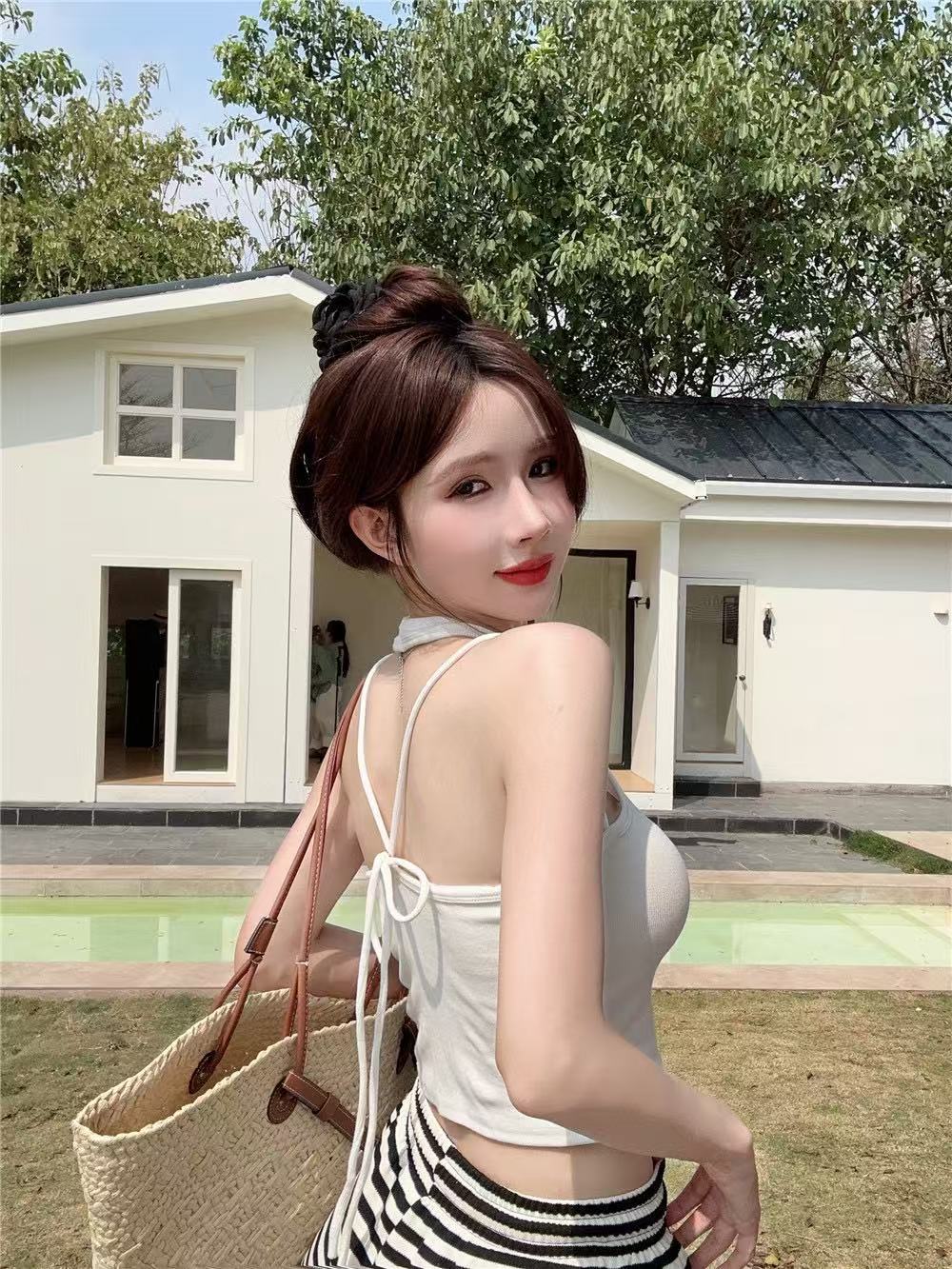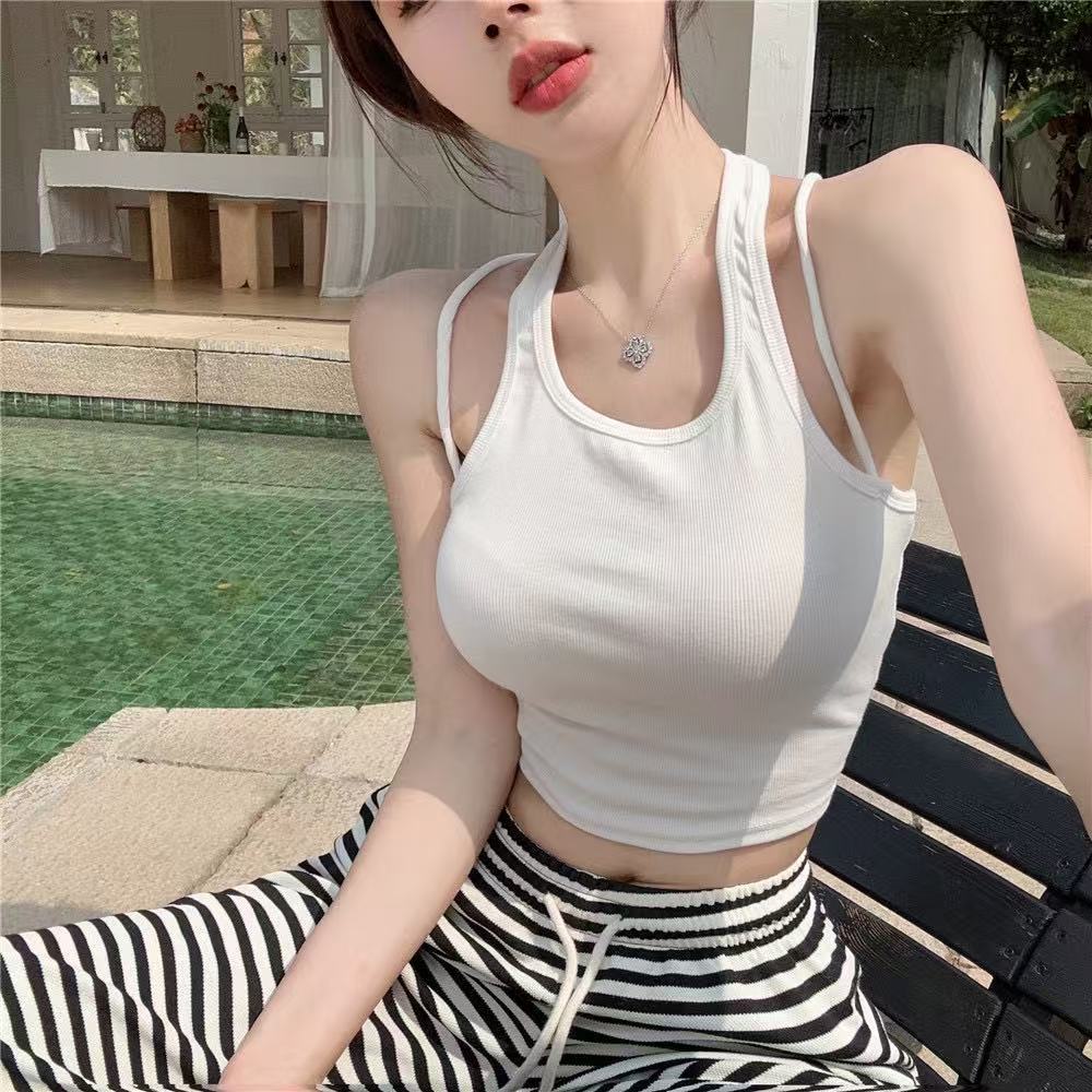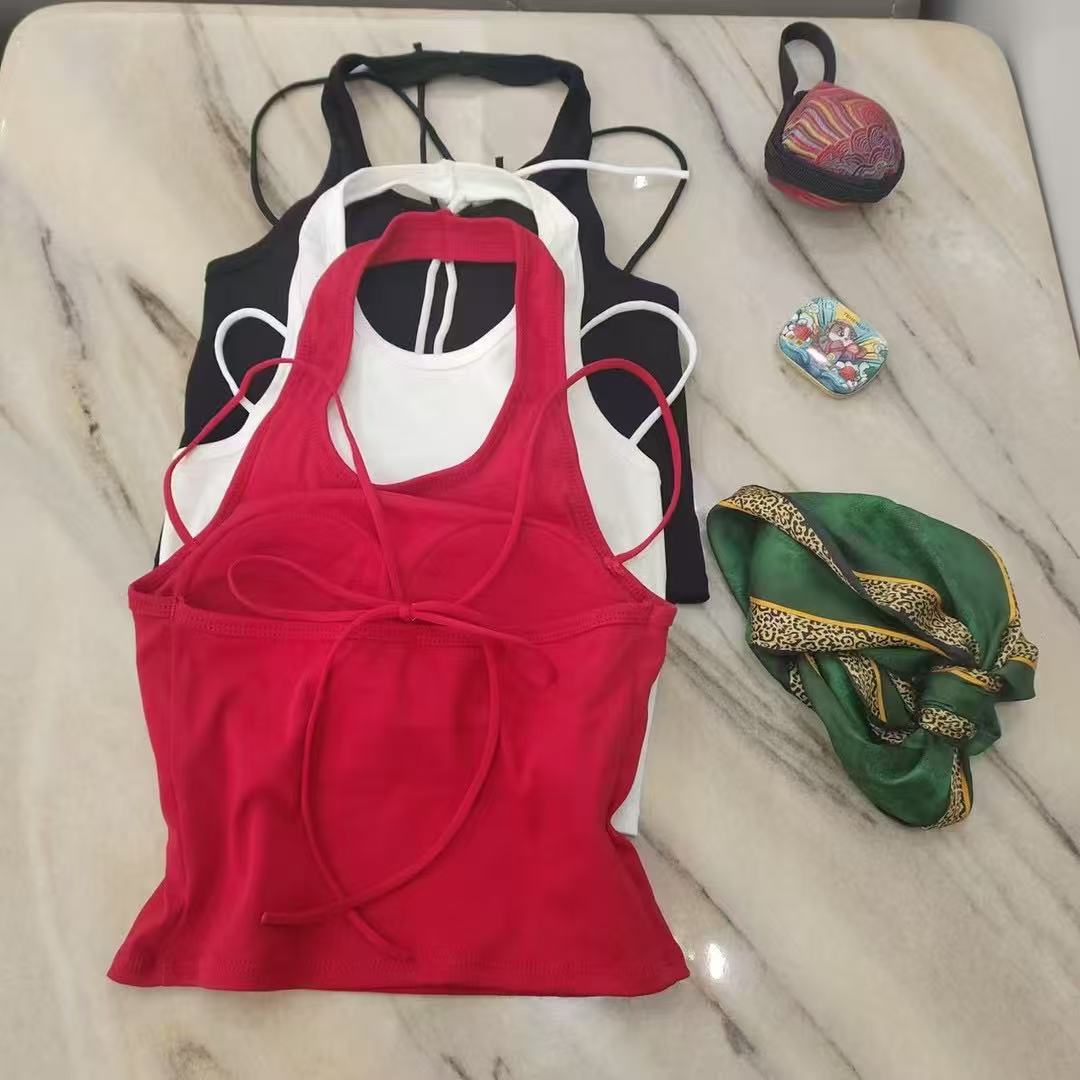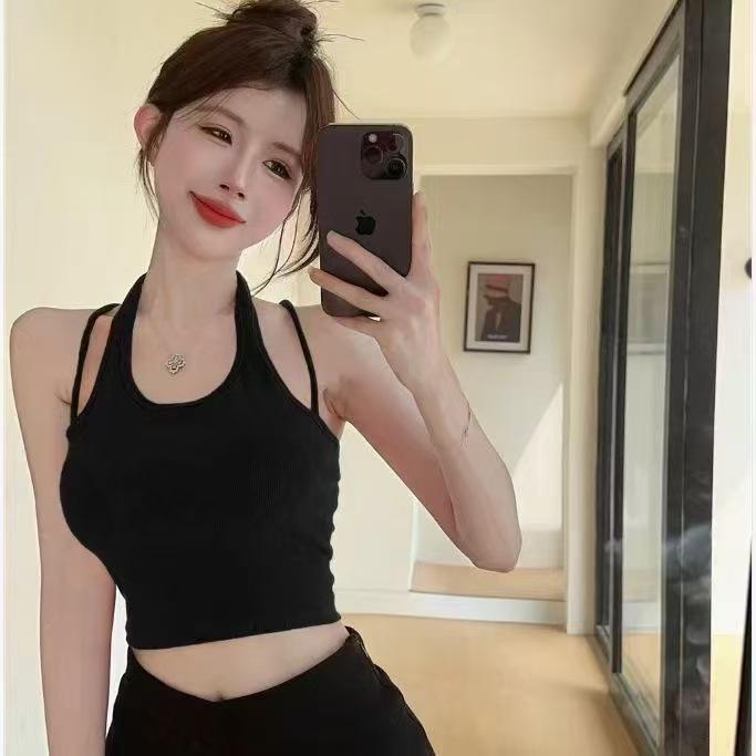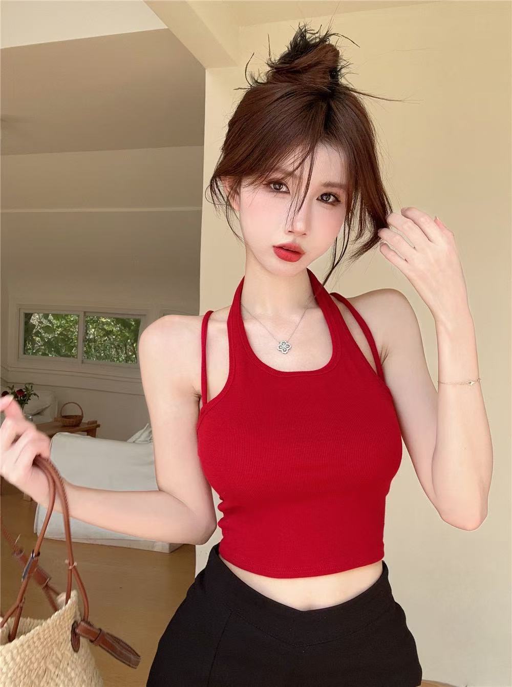 Camisola de cuello halter Spice Girl sexy de primavera y verano para mujer, base interior corta sin mangas, diseño Sense Niche, prenda exterior superior