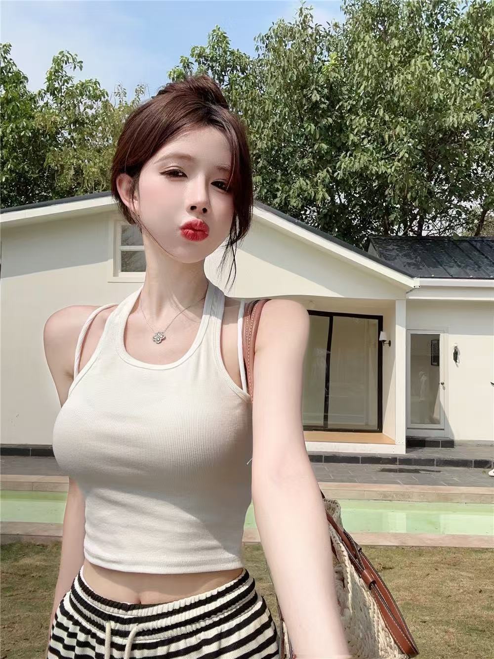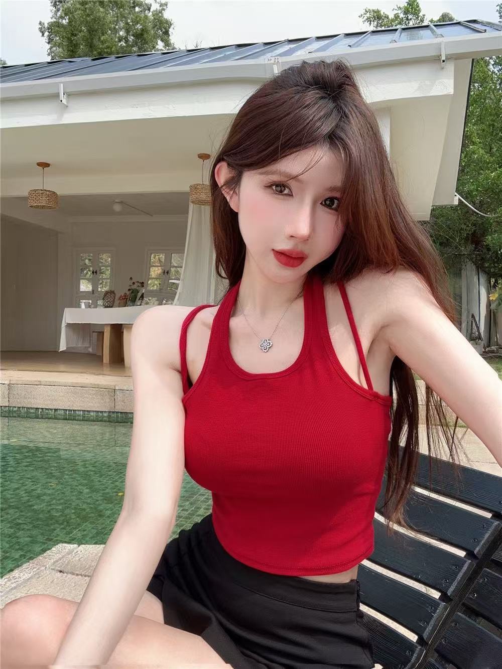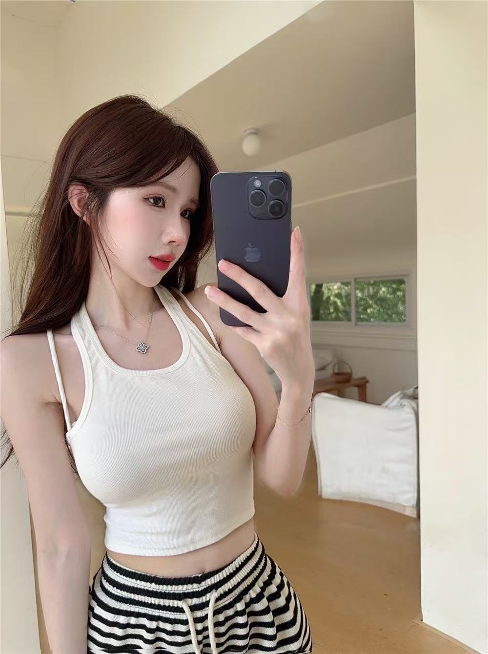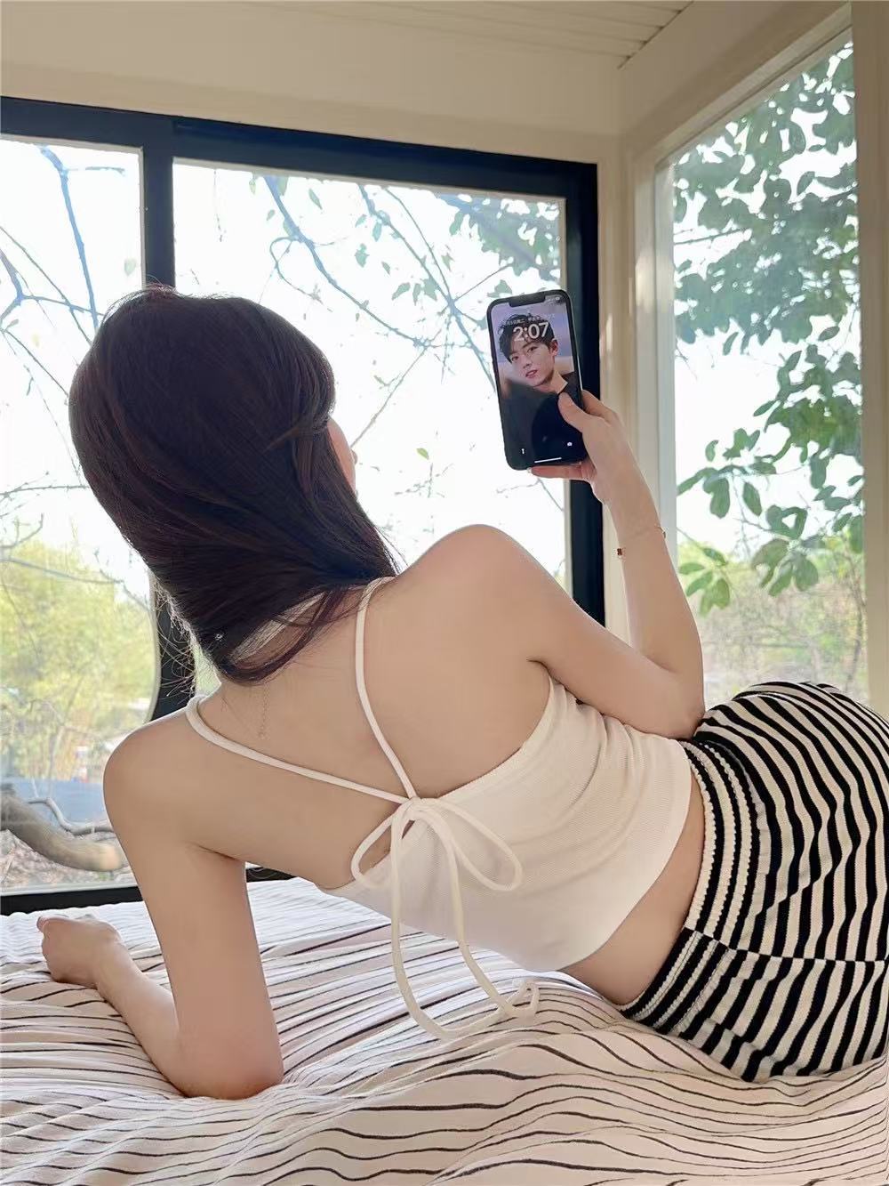 Camisola de cuello halter Spice Girl sexy de primavera y verano para mujer, base interior corta sin mangas, diseño Sense Niche, prenda exterior superior