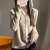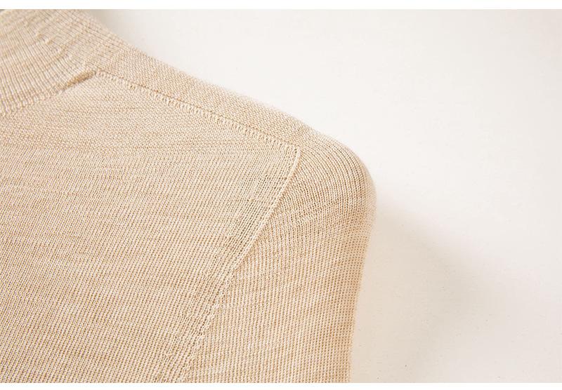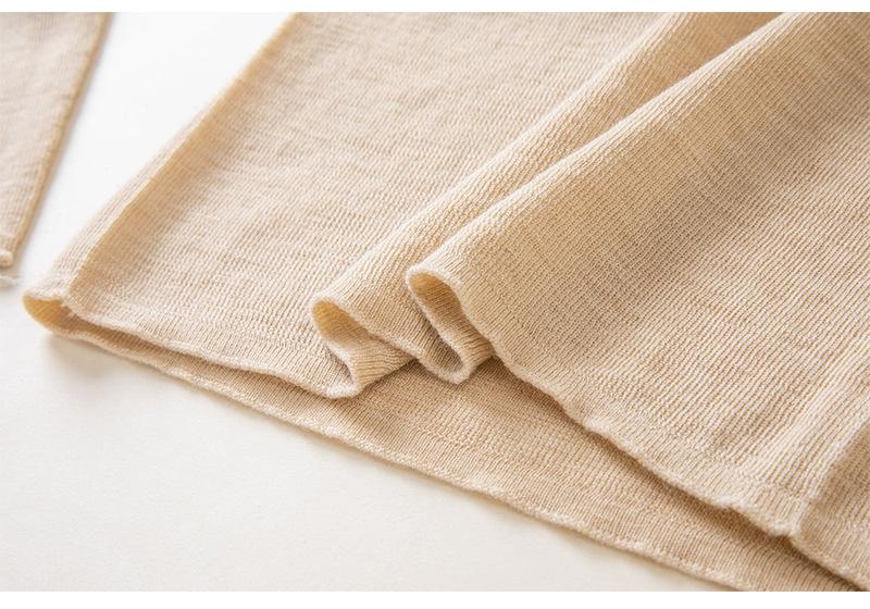 Hilado de lana extrafino hipoalergénico personalizado, lavable a máquina, combinado con moldeado de una pieza sin costuras Shima Seiki, presenta a la piel una lujosa sensación de cero contacto.