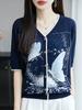 Cardigan de Punto de Verano Nuevo Estilo 26th con Cuello en V de Tencel Lyocell, Mangas de Tres Cuartos y Diseño de Estampado de Mariposas para Mujer