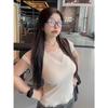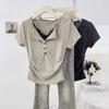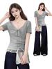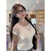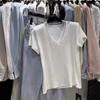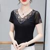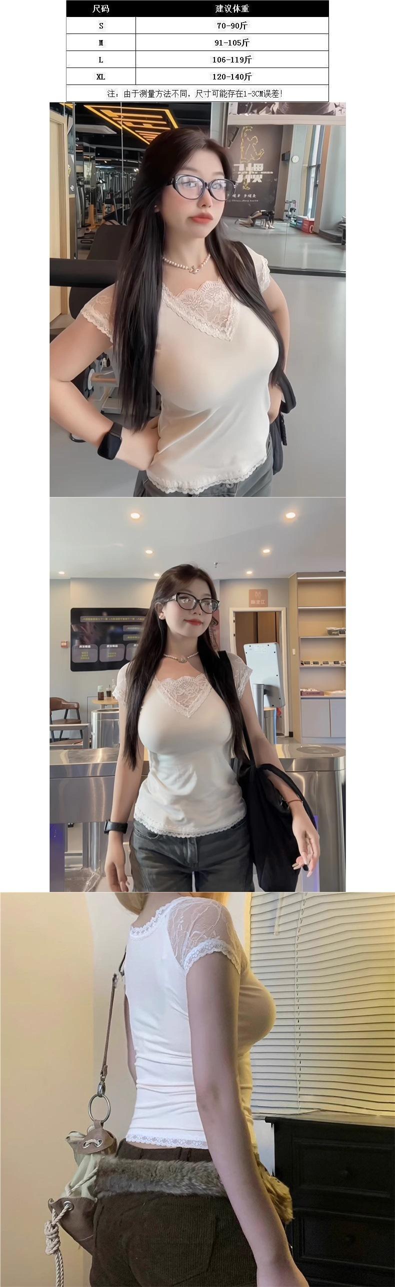 Camiseta de Manga Corta con Encaje y Estilo Puro y Sexy a la Moda para Mujer, Verano, Temperamento, Chica Hot, Sexy, Cuello en V, Top Impresionante