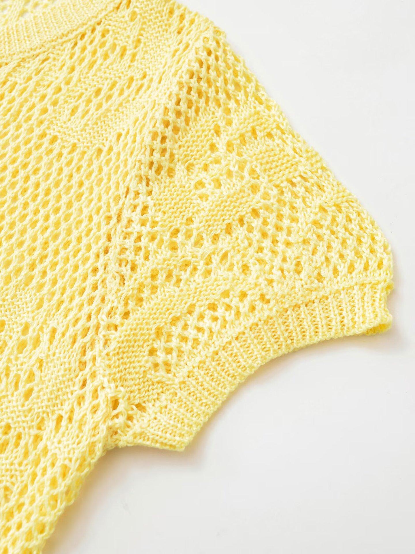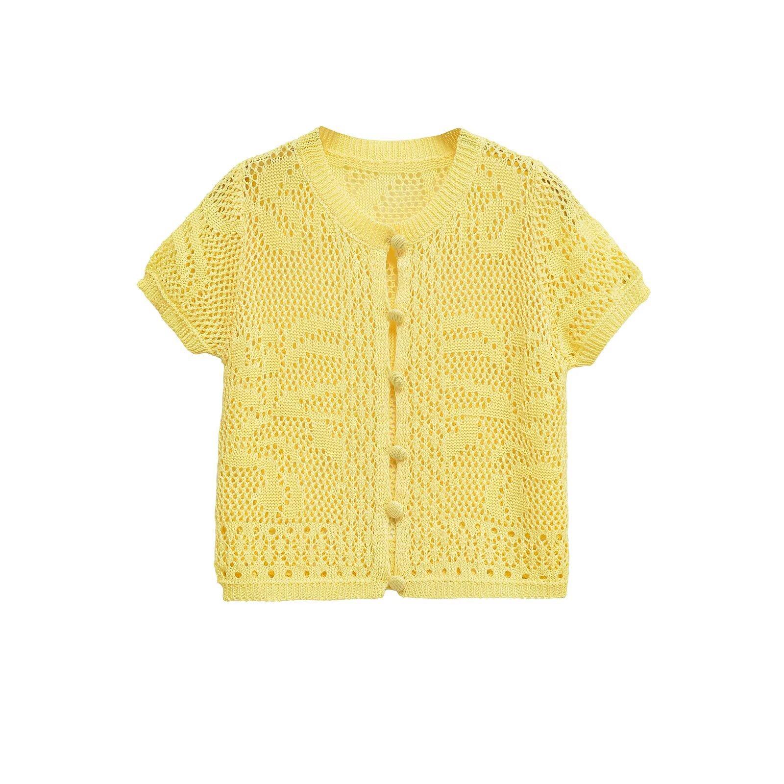 Comercio Exterior Transfronterizo 2025 Verano Nueva Moda Diseño Versátil Cárdigan de Punto Calado de Crochet Tops de Manga Corta para Mujer