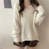 2025 Principios de Otoño Nuevo Estilo Holgado Perezoso Color Puro Top de Punto Versátil Jersey Ropa Exterior Punto Cuello en V para Mujer
