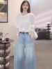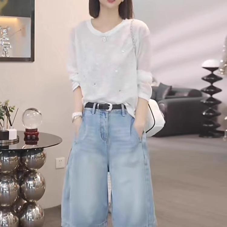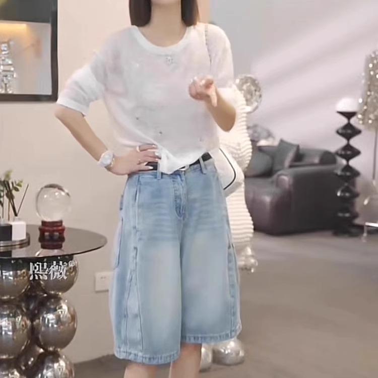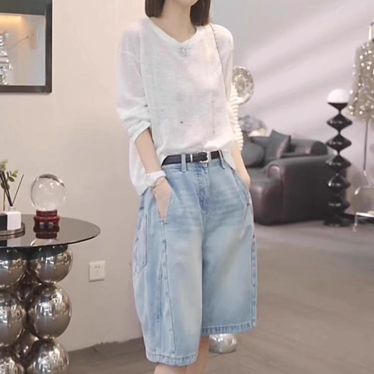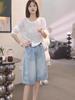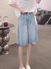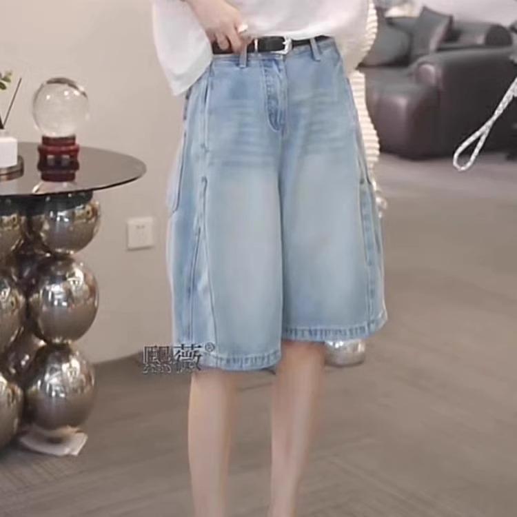 Jeans Sueltos de Talla Grande de Cinco Puntos para Mujer 2025 Nuevo Verano mm Ligeramente Gorda Cintura Alta Slim Casual Rectos Pierna Ancha