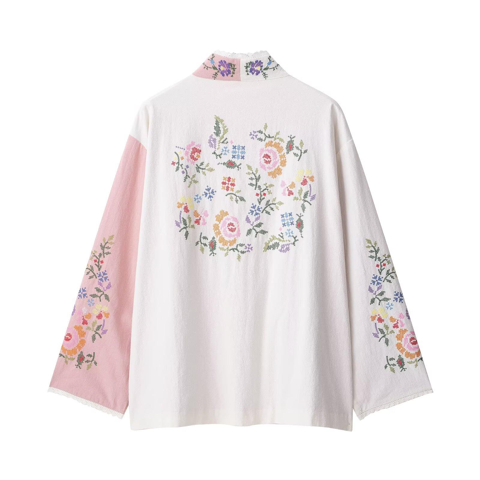 Ropa de mujer de comercio exterior transfronterizo de Amazon 2025 nuevo estilo étnico retro bordado versátil abrigo largo tipo camisa top