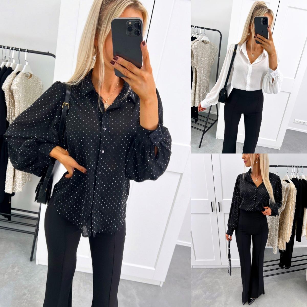 Europeo y Americano Transfronterizo 2025 Amazon Primavera y Otoño Manga Larga Lunares Diseño Suelto Camisas Tops para Mujer