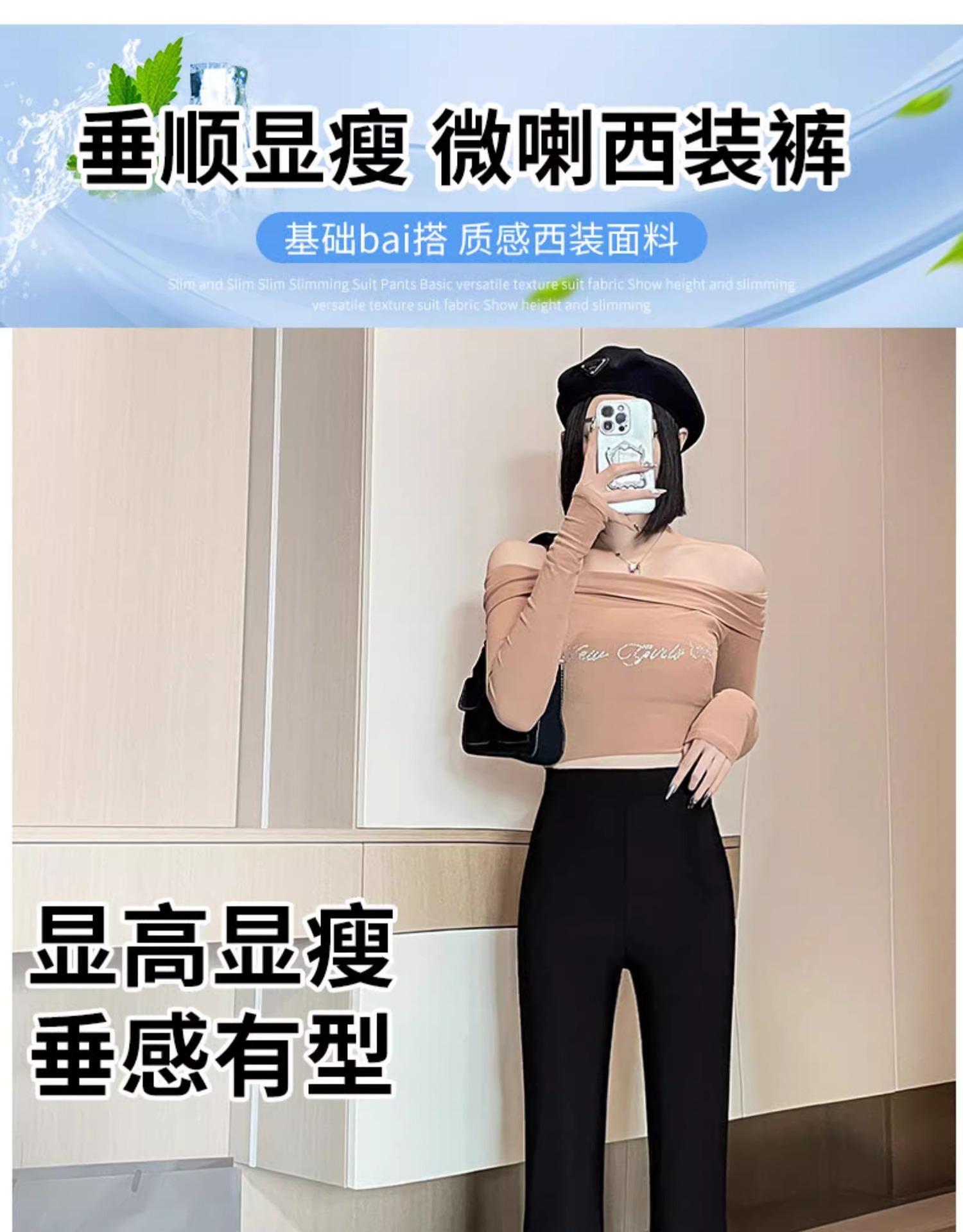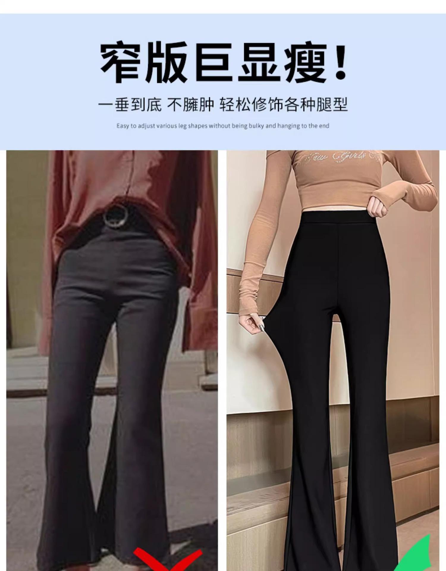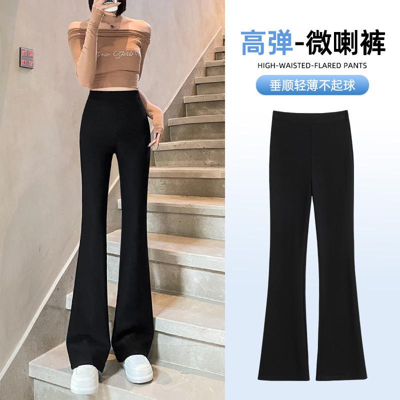 Pantalones Acampanados de Cintura Alta para Mujer, Nuevo Estilo Primavera y Otoño 2024, Elásticos, Adelgazantes, Pantalones Casuales con Caída, Pantalones Microacampanados de Traje Negros