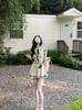 Vestido de Encaje Tejido de Manga Corta con Estilo Universitario 2025 Verano Nuevo Estilo Cintura Adelgazante Look Deseo Puro Falda Corta Línea A para Mujer
