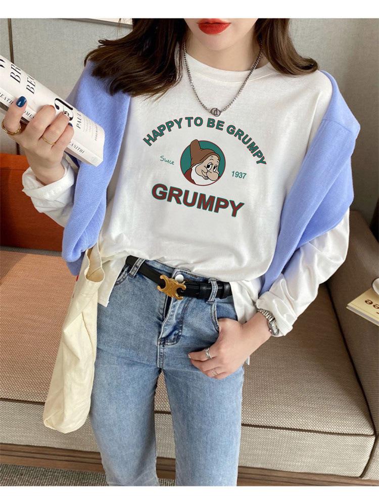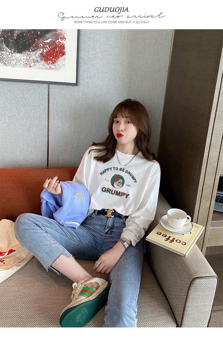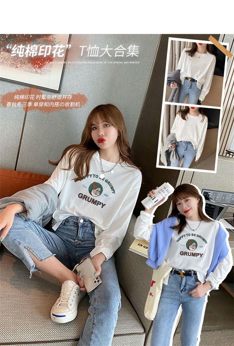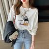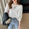 Playera Blanca de Algodón Puro de Manga Larga para Mujer Otoño y Primavera Ropa Exterior 2025 Estilo Caliente Nueva Blusa Talla Grande Suelta Camisa Pequeña