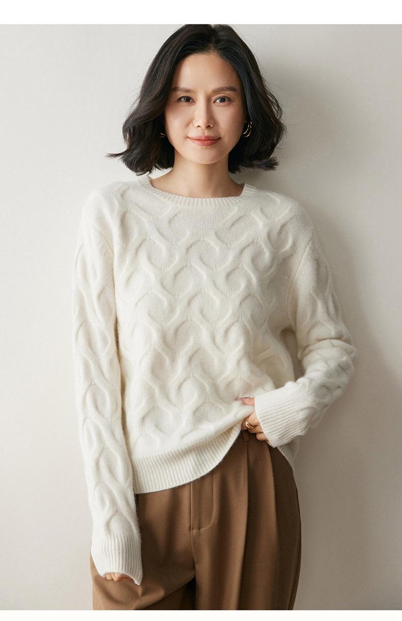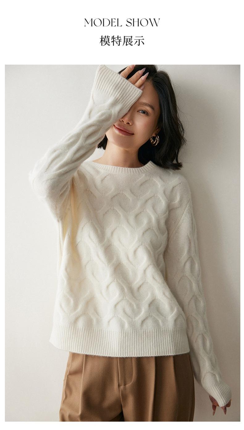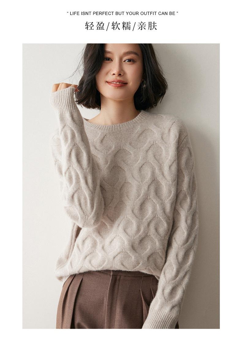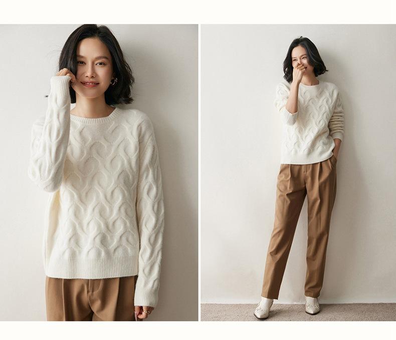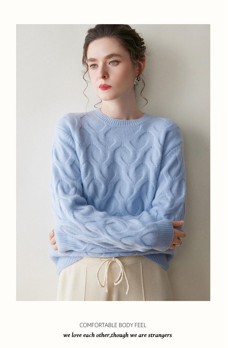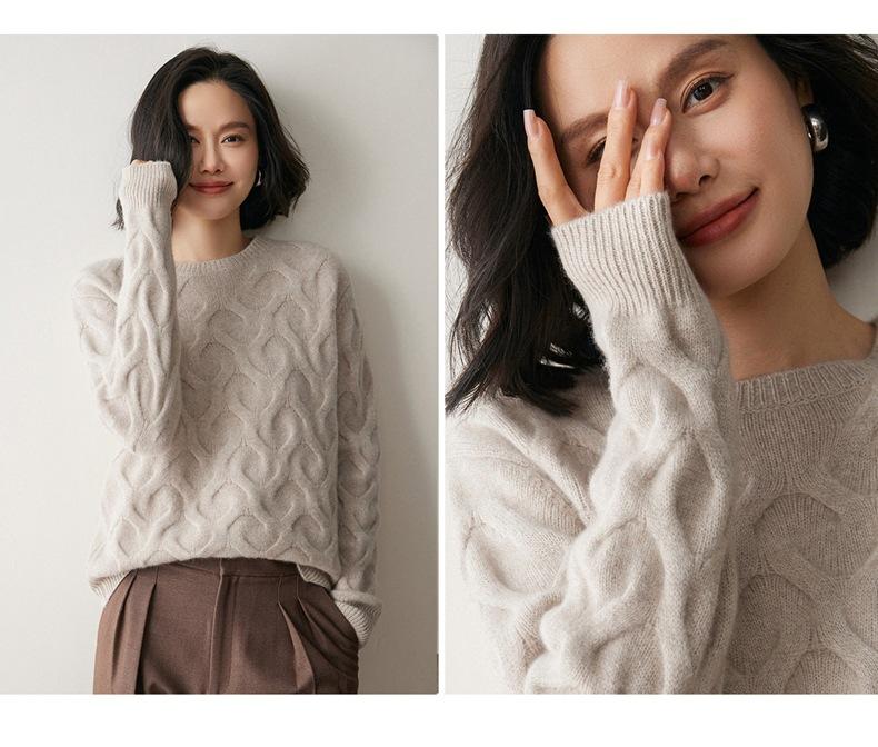 Suéter de Cachemira de Punto Trenzado con Temperamento Suave Nueva Ropa de Otoño e Invierno para Mujer Aran Color Puro Cachemira Top Suéter