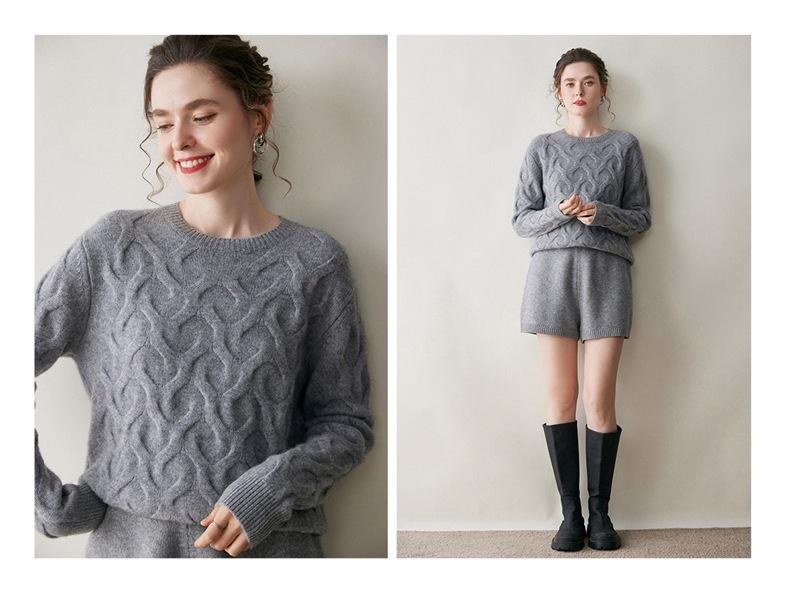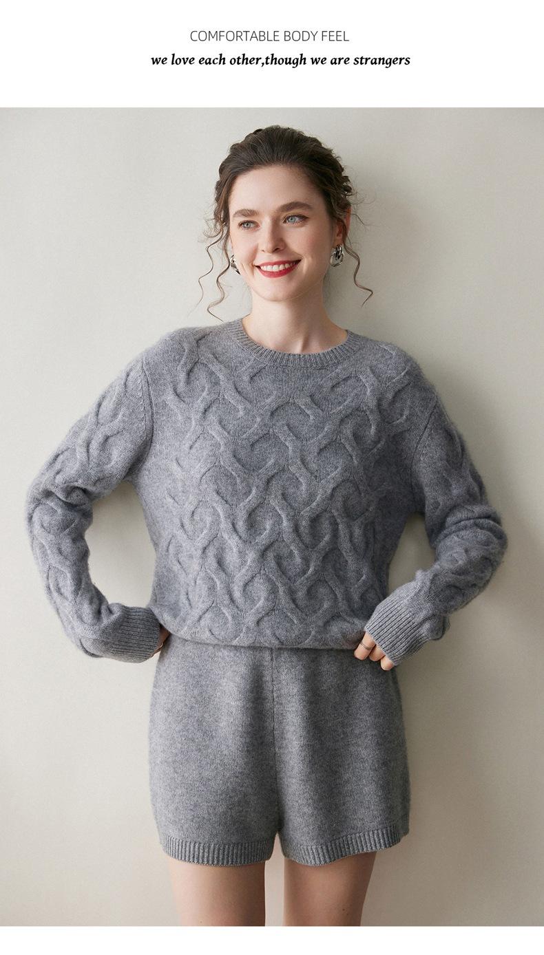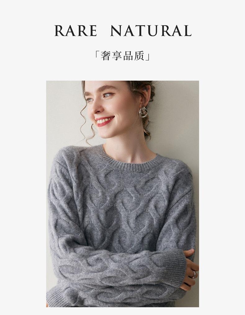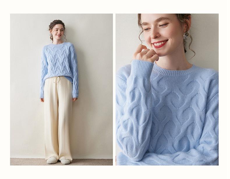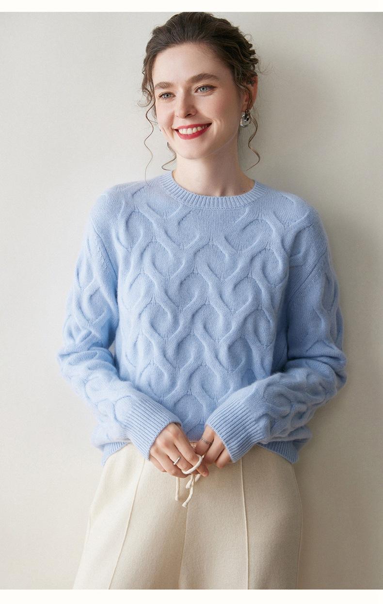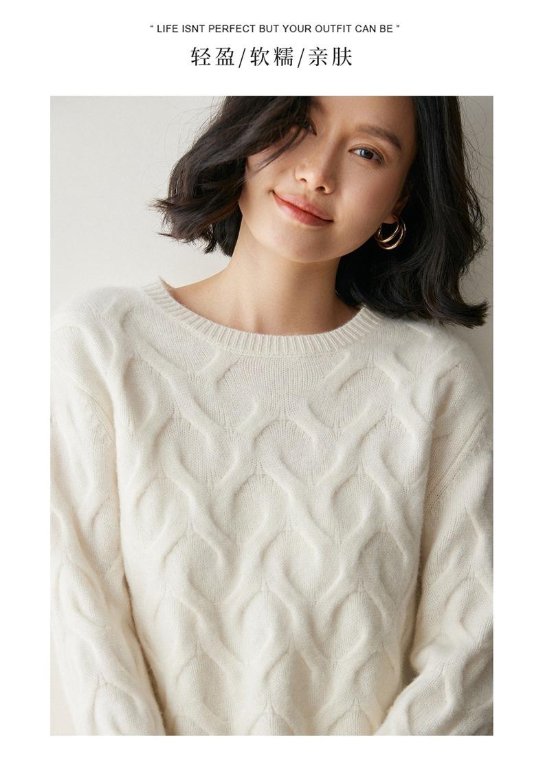 Suéter de Cachemira de Punto Trenzado con Temperamento Suave Nueva Ropa de Otoño e Invierno para Mujer Aran Color Puro Cachemira Top Suéter