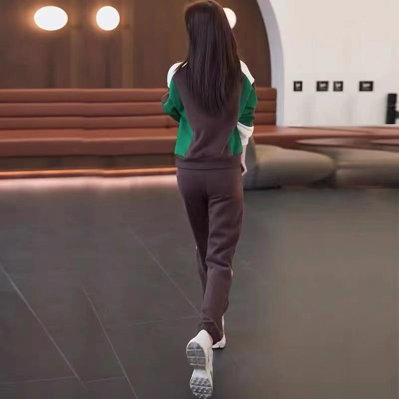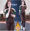 (De dos piezas) Traje Deportivo Casual de Moda para Mujer, Otoño/Invierno 2025, Forrado de Felpa, Grueso, Sudadera Elegante de Cuello Alto para Mujer