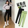 Pantalones de tiburón forrados de felpa para mujer 2025 nuevos primavera y otoño cintura alta adelgazantes control de abdomen levanta glúteos pantalones de algodón cálidos gruesos leggings
