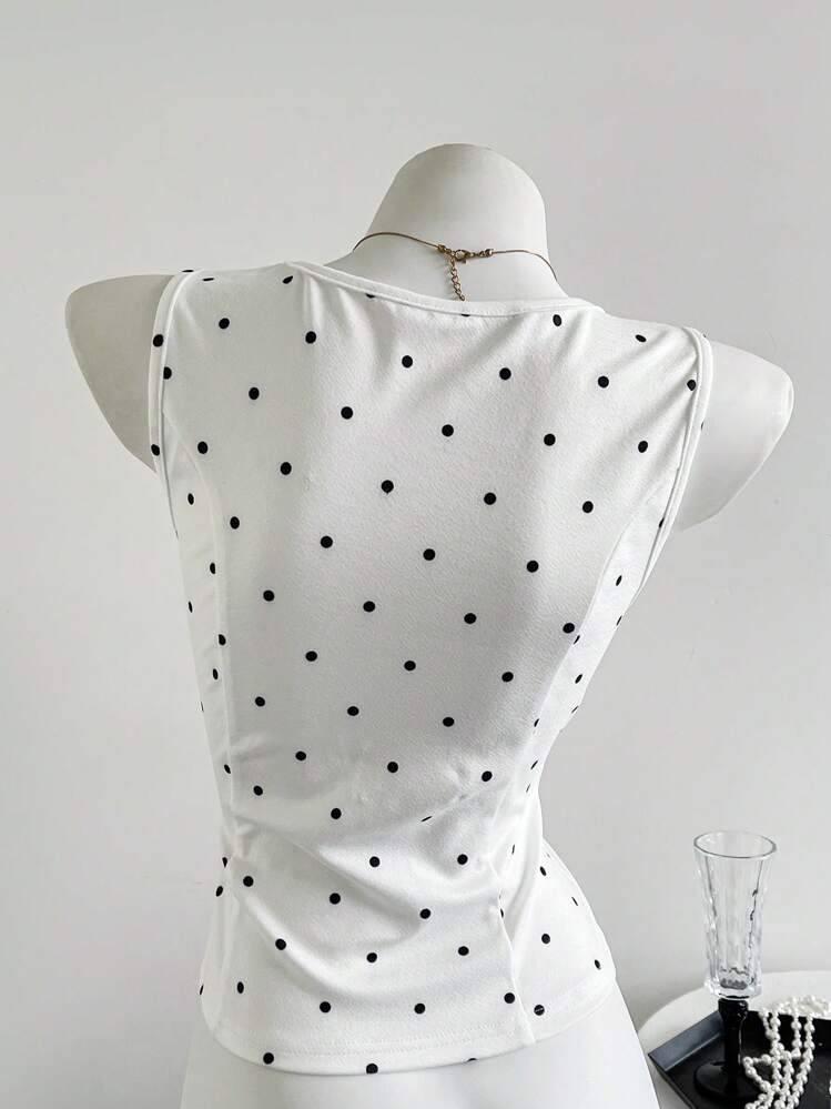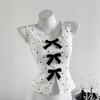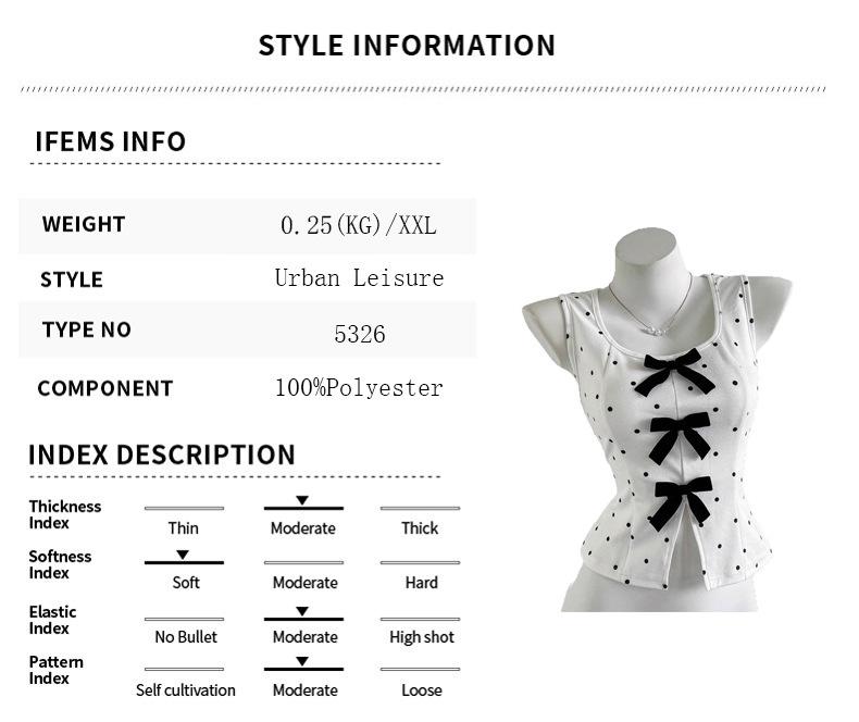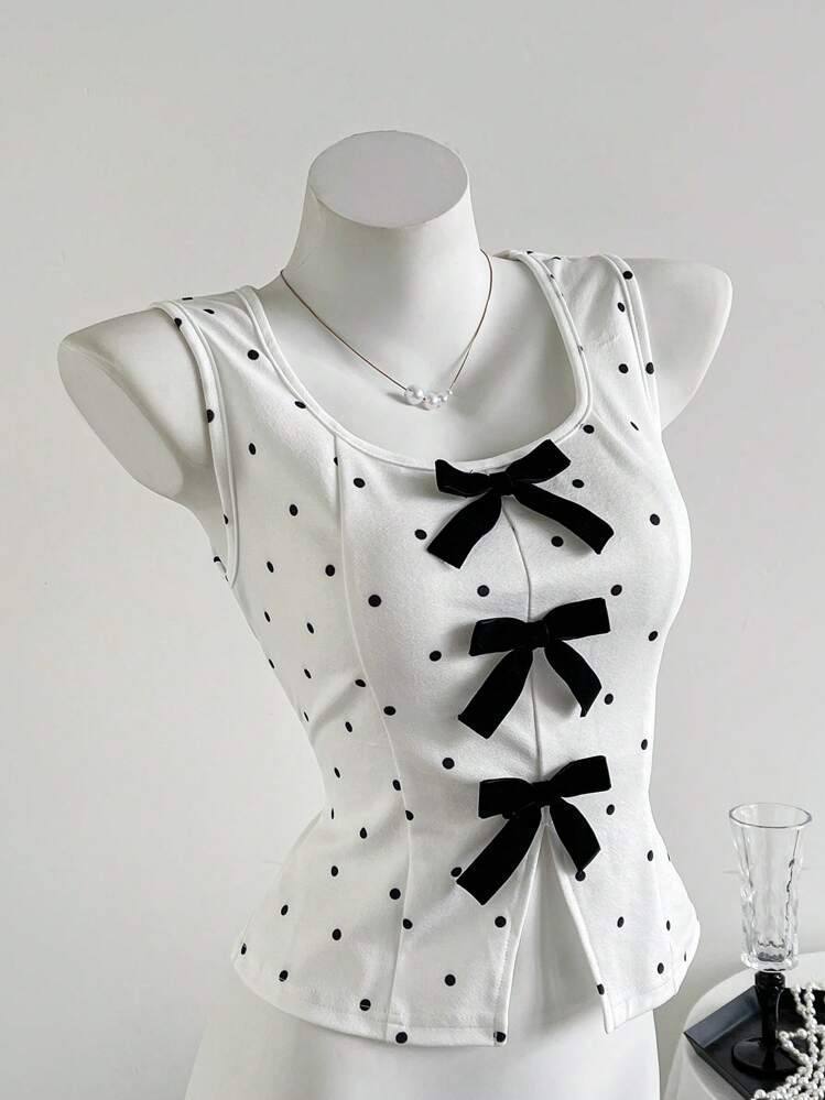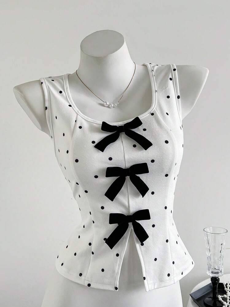 Chaleco sin mangas decorativo con lazo de lunares retro francés de diseño de moda nuevo de verano para mujer de exportación europea y americana