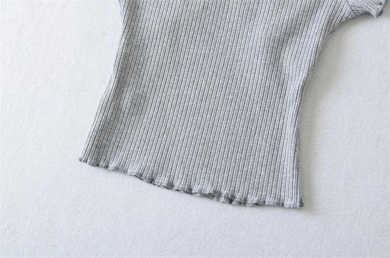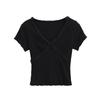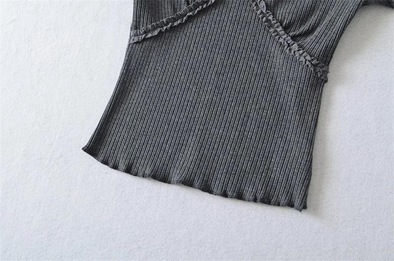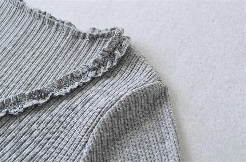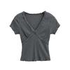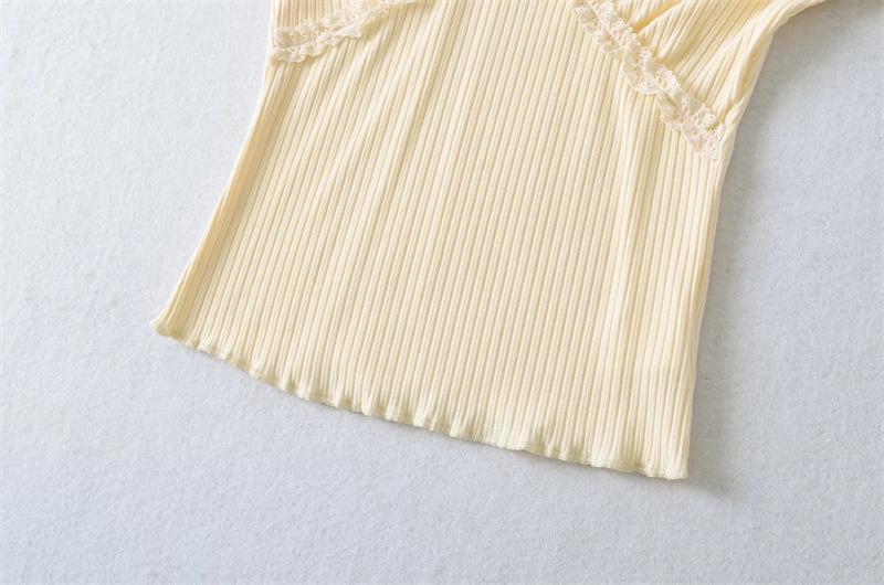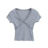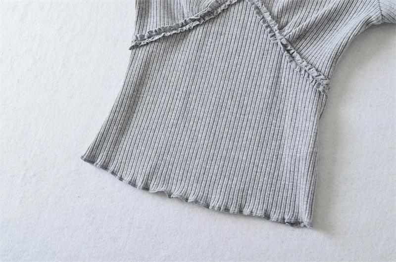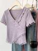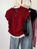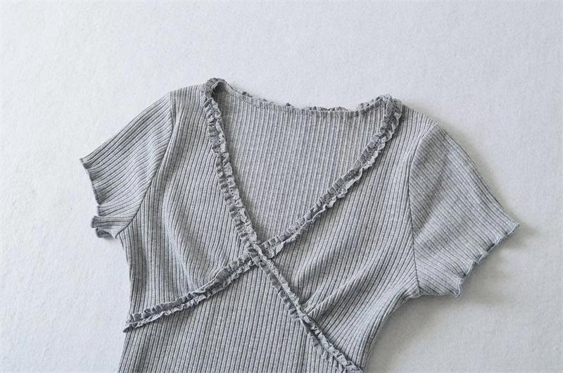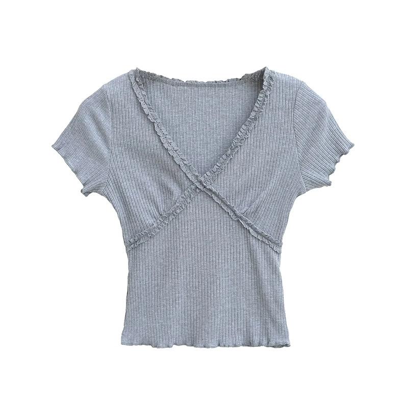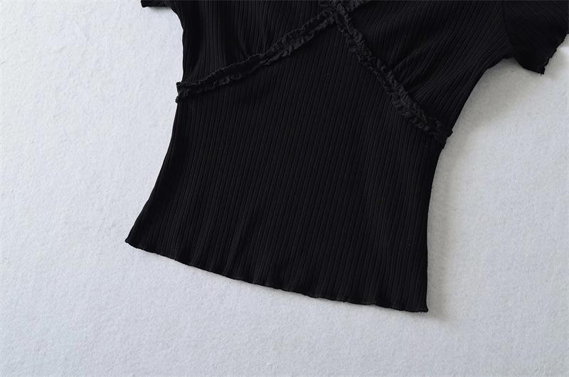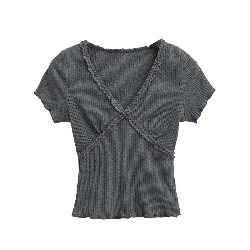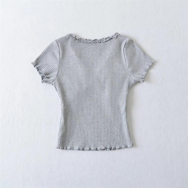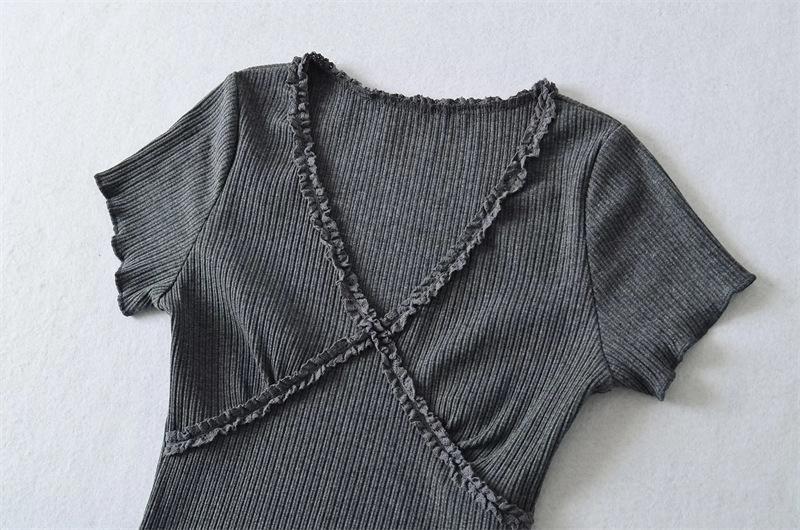 Deseo Puro Dulce Picante Volantes Cuello en V Manga Corta Camiseta para Mujer 2025 Verano Nuevo Encaje Ajustado Corto Top Versátil para Mujer