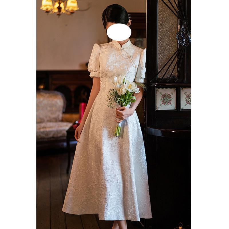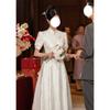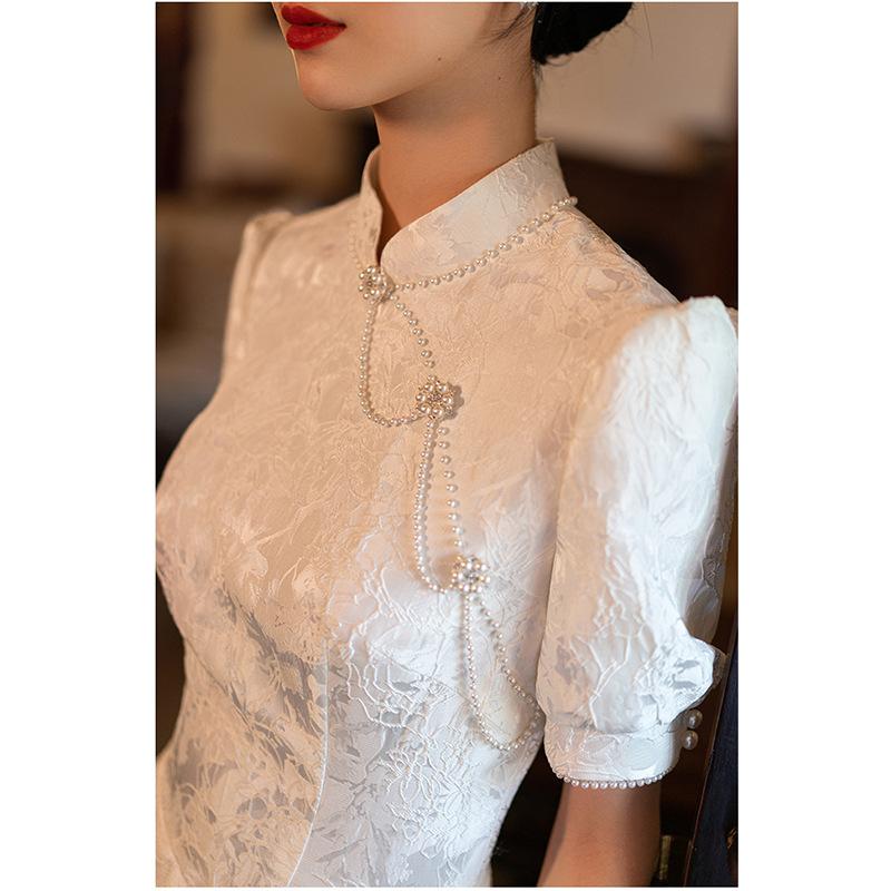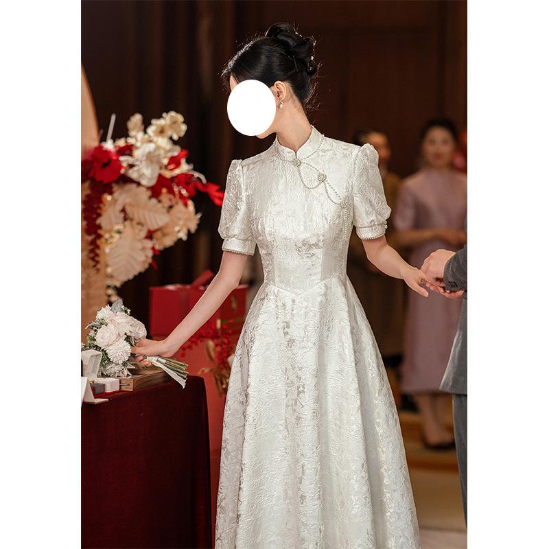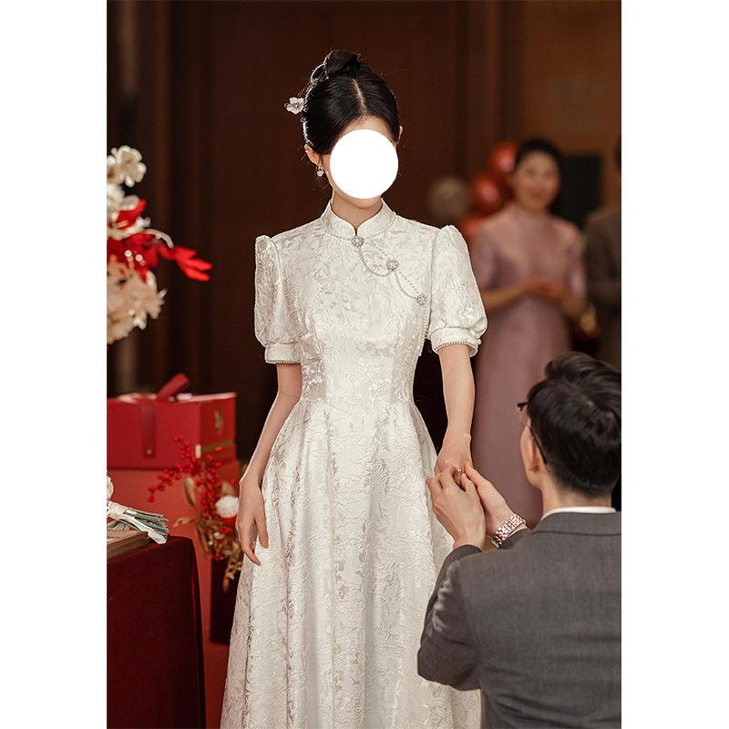 Cheongsam de Compromiso Nuevo, Certificado de Estilo Chino Nuevo Mejorado, Vestido Blanco, Vestido de Brindis, Falda Larga Adelgazante