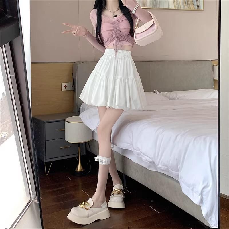 Falda corta blanca de capullo para mujer verano 2025 nueva cintura alta línea A burbuja abullonada media falda petite falda de pastel