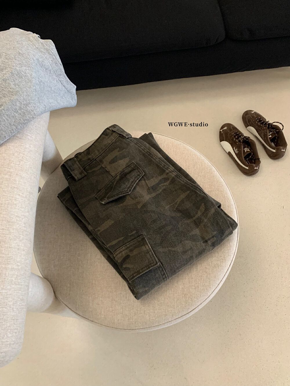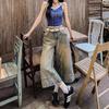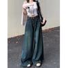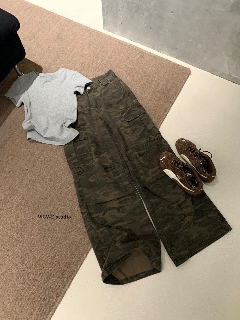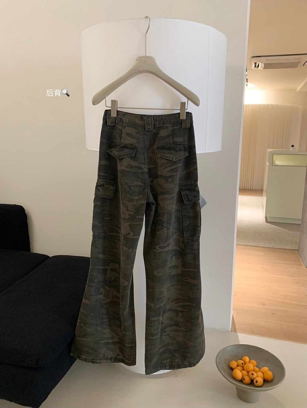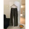 Jeans anchos de camuflaje retro americano para mujer 2025 verano nuevo holgados adelgazantes drapeados perezosos hasta el suelo
