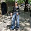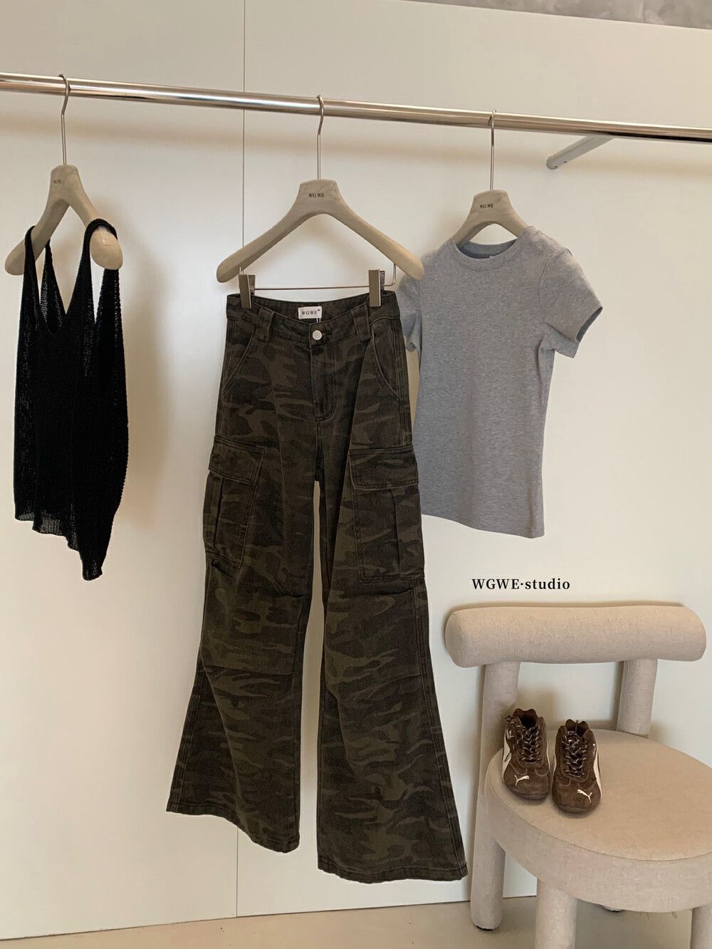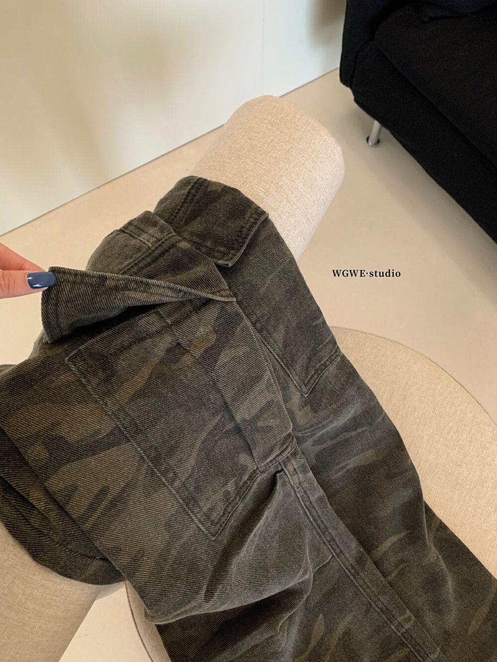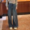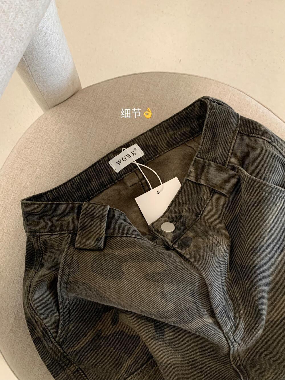 Jeans anchos de camuflaje retro americano para mujer 2025 verano nuevo holgados adelgazantes drapeados perezosos hasta el suelo