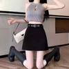 Falda Midi de Traje Negro Mujer Primavera Verano Falda Línea A 2024 Nueva Falda Corta de Cintura Alta Falda Ajustada Falda Lápiz Falda Verano