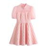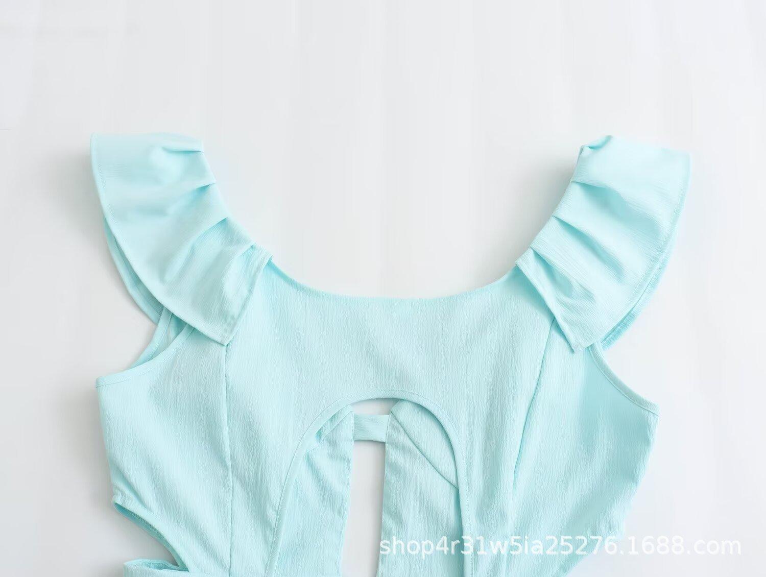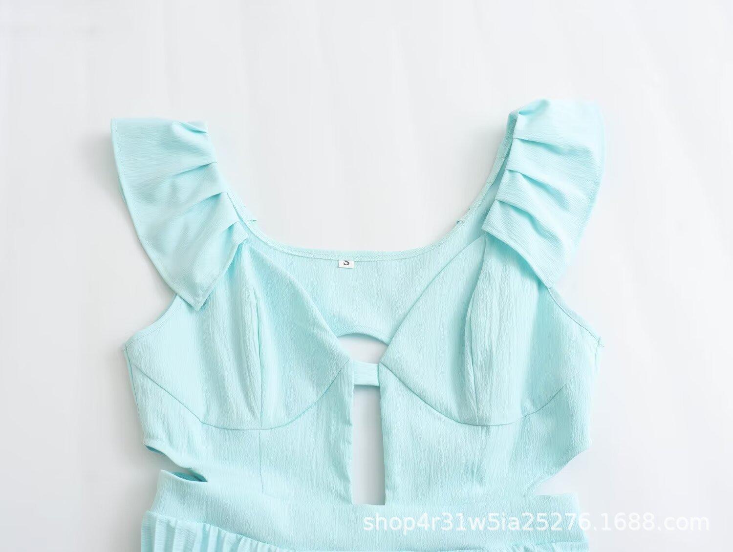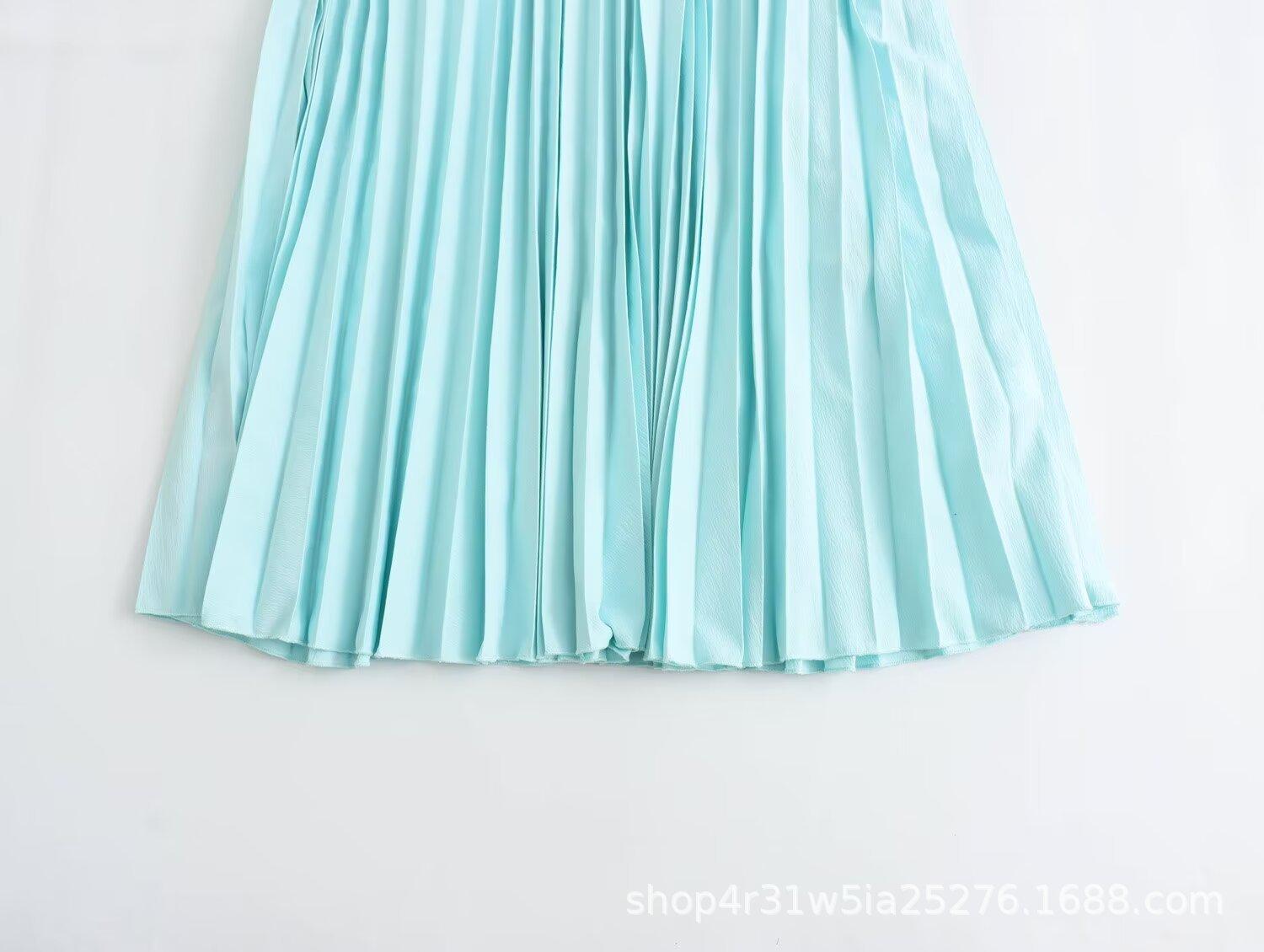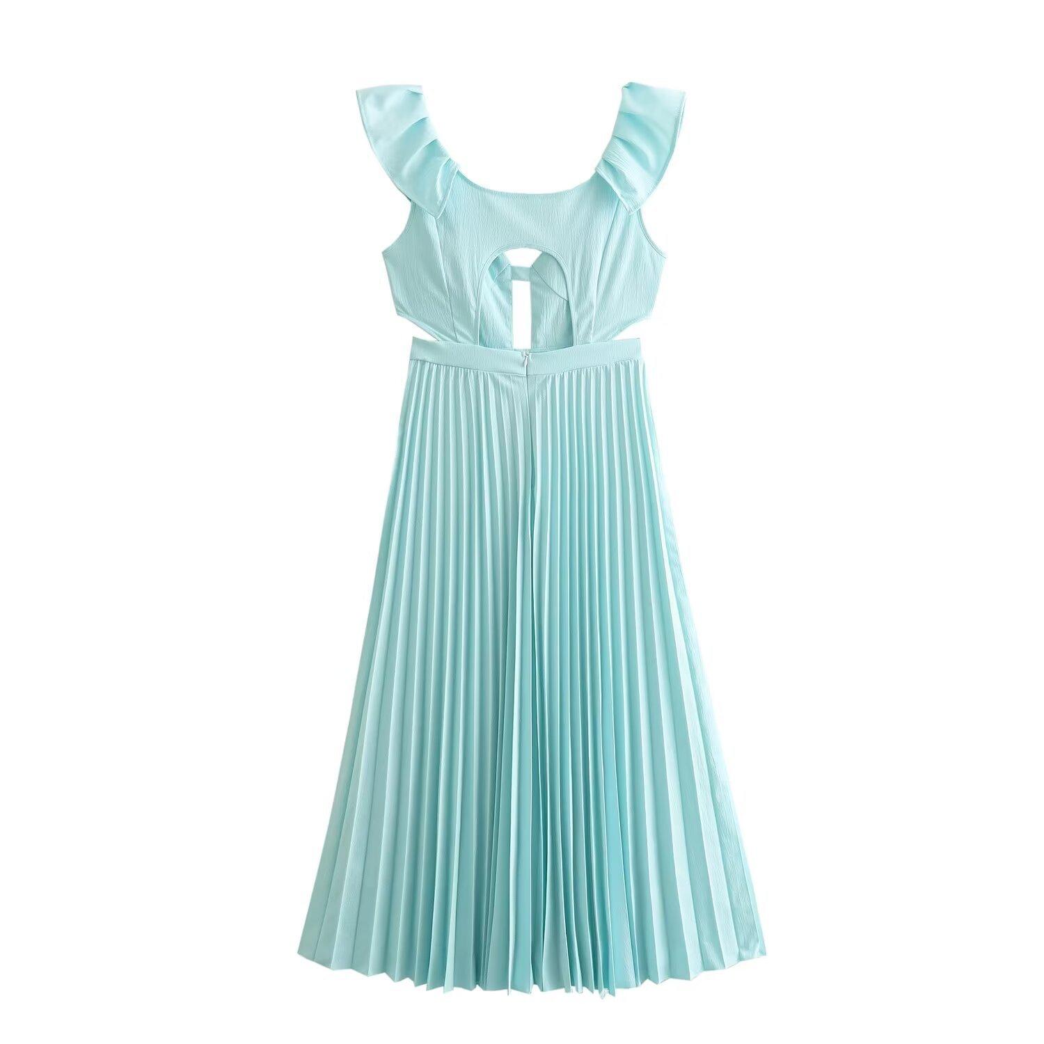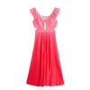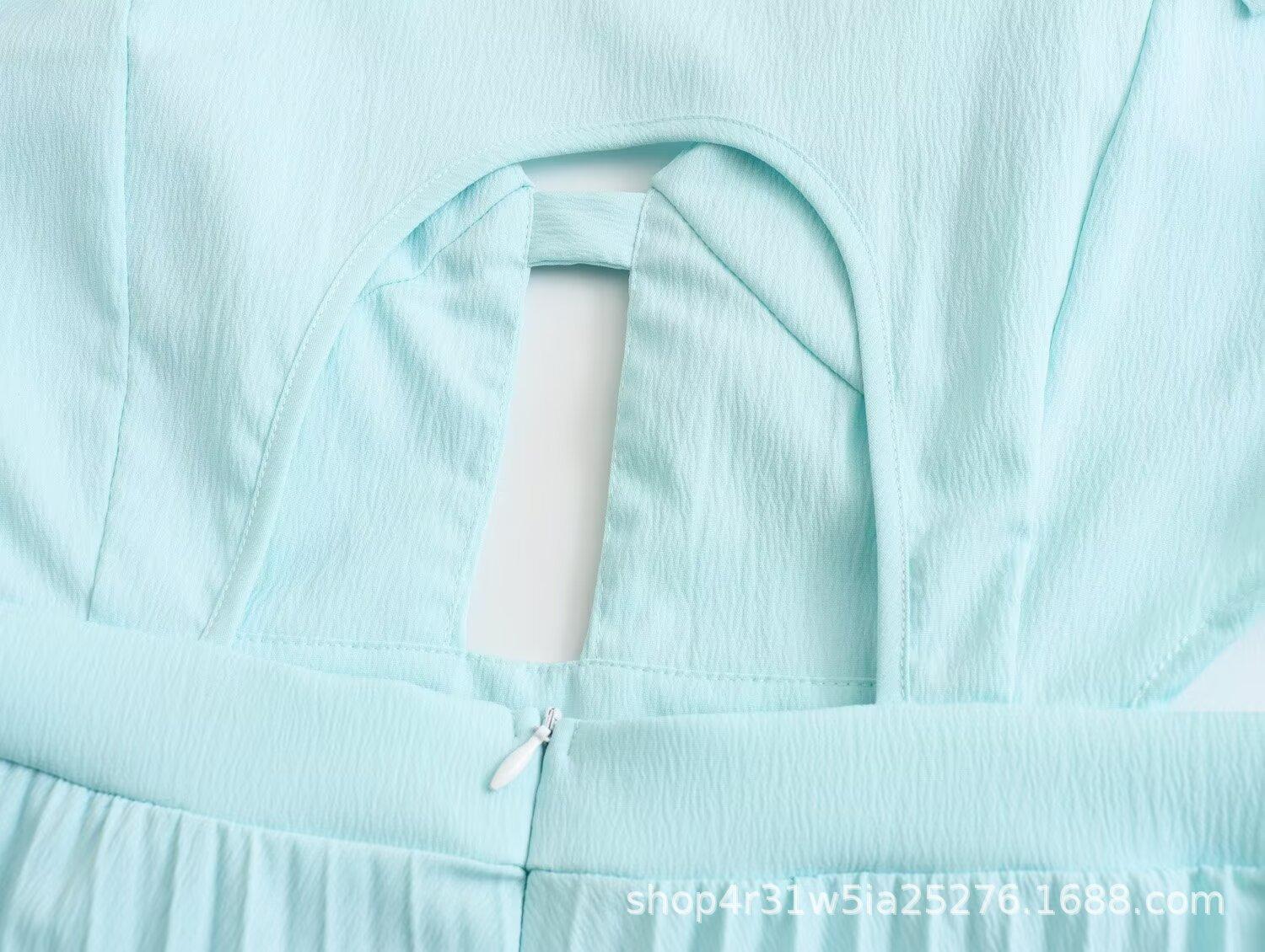 Ropa de Mujer Europea y Americana 2024 Nuevo Verano Francés Retro Color Puro Delgada Sexy Sin Cintura Plisada Empalmada Vestido