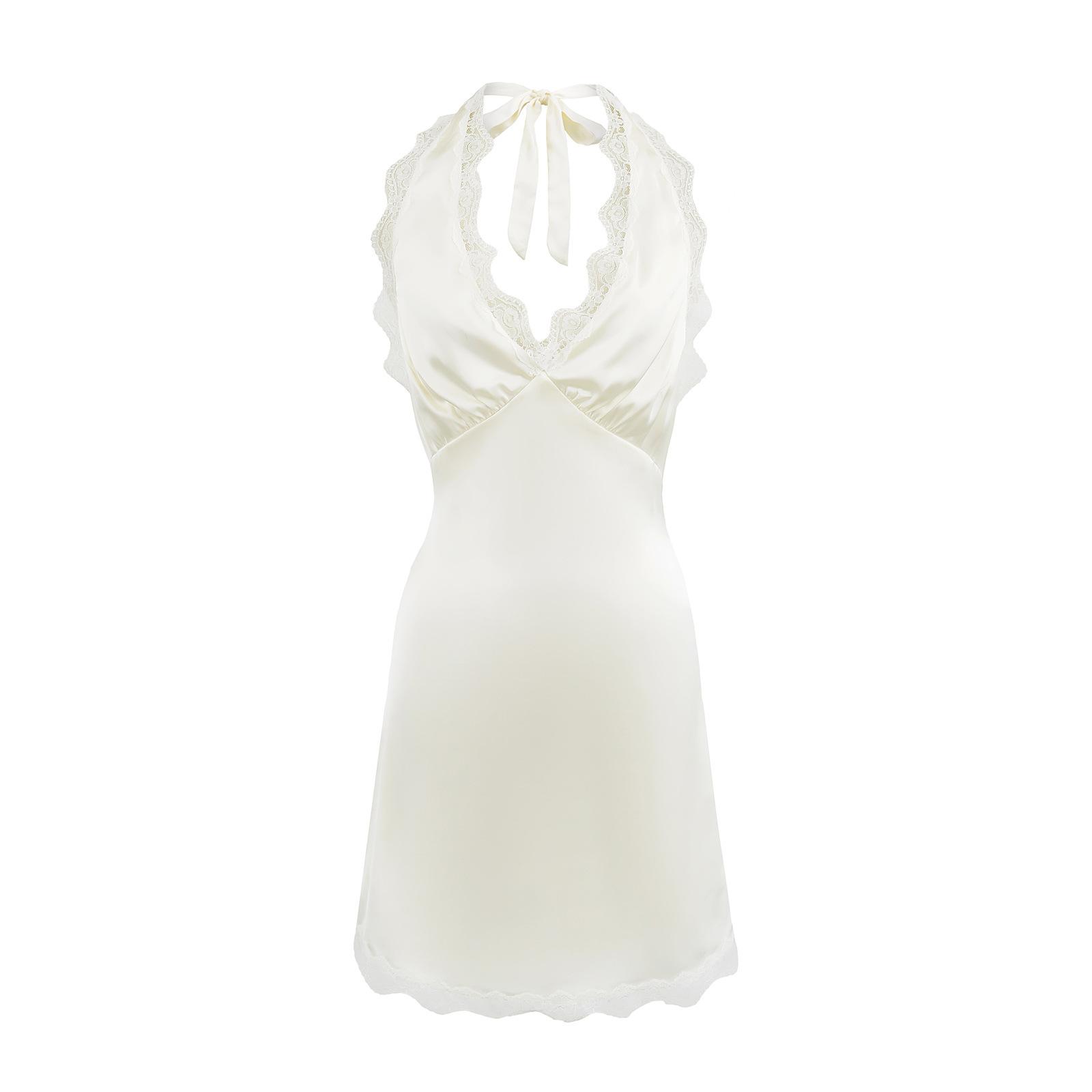25054-Estilo Europeo y Americano Sexy Sexy Encaje Espalda Descubierta Falda de Cadera para Mujer 2025 Nuevo Vestido Slim Halter