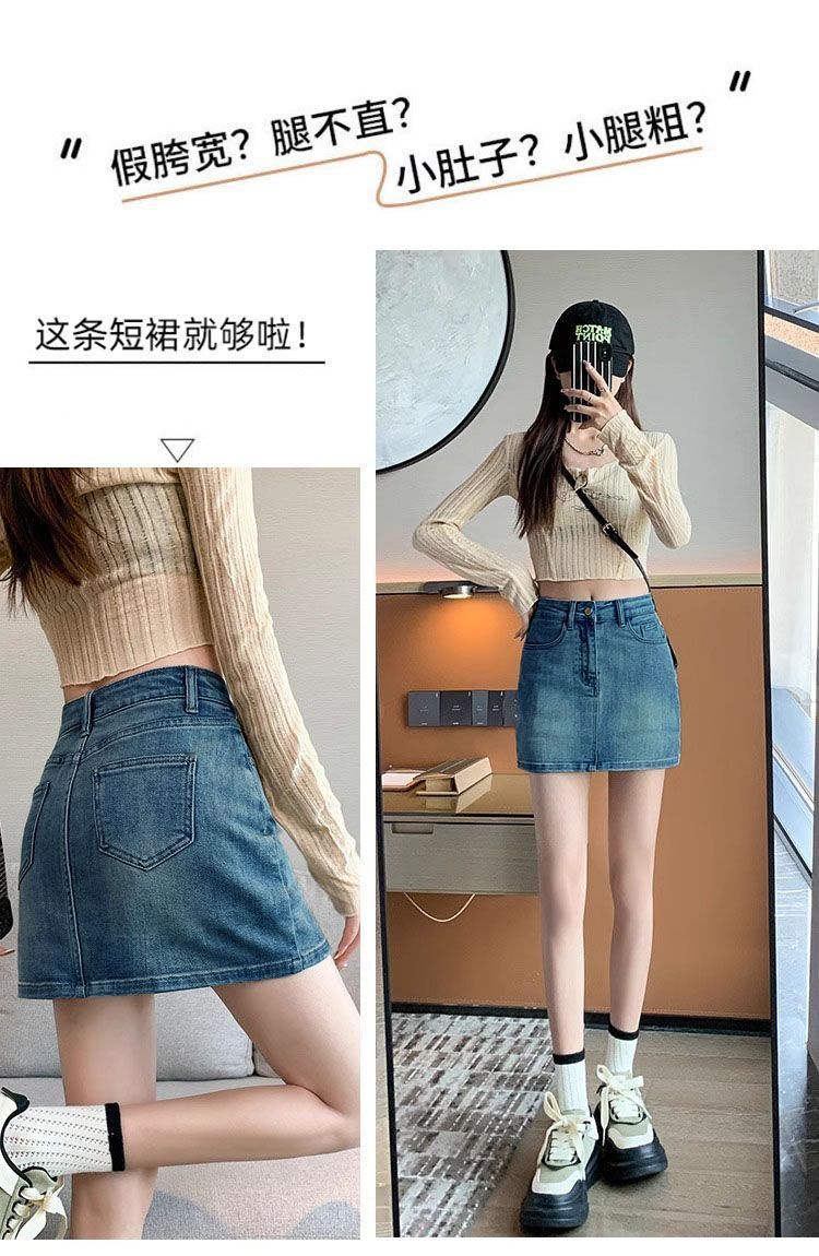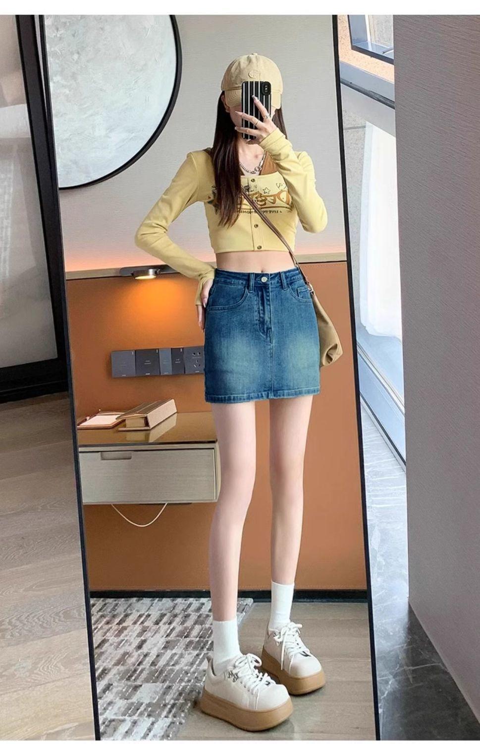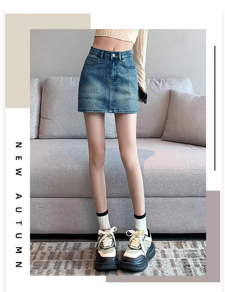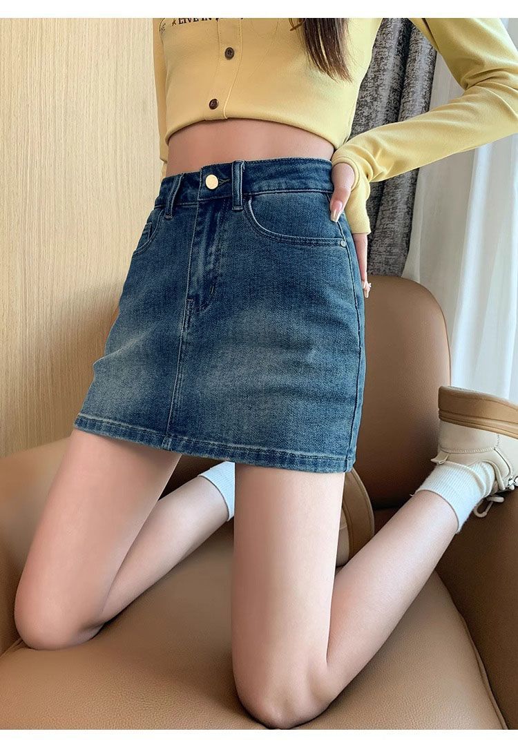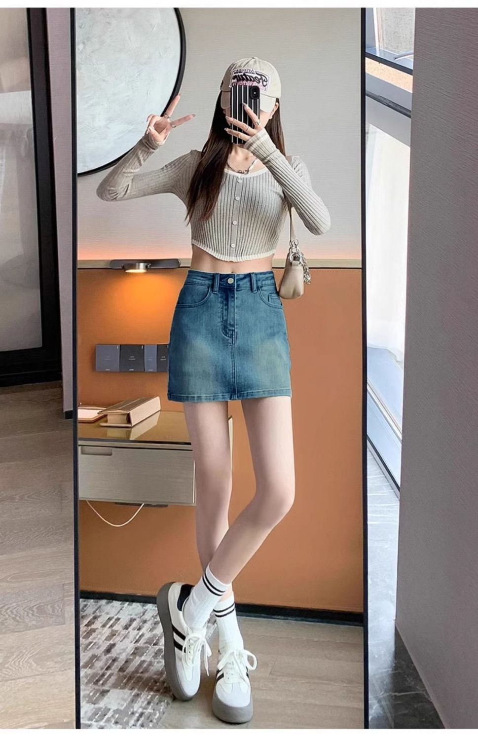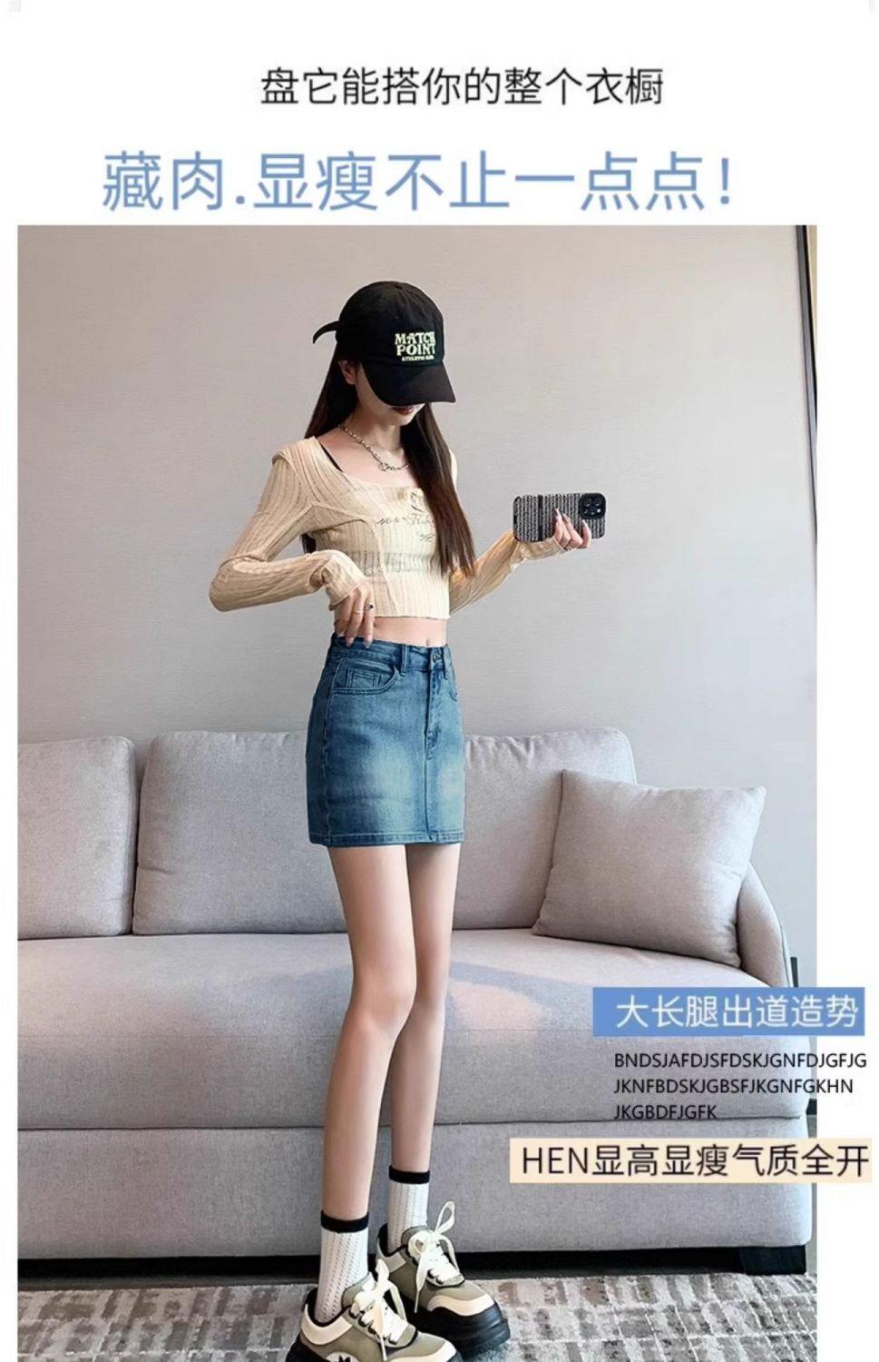 Falda Corta de Mezclilla de Cintura Alta Petite de Alta Gama 2025 Ropa Exterior Elástica Vintage Retro Falda Envolvente Mujeres a la Moda