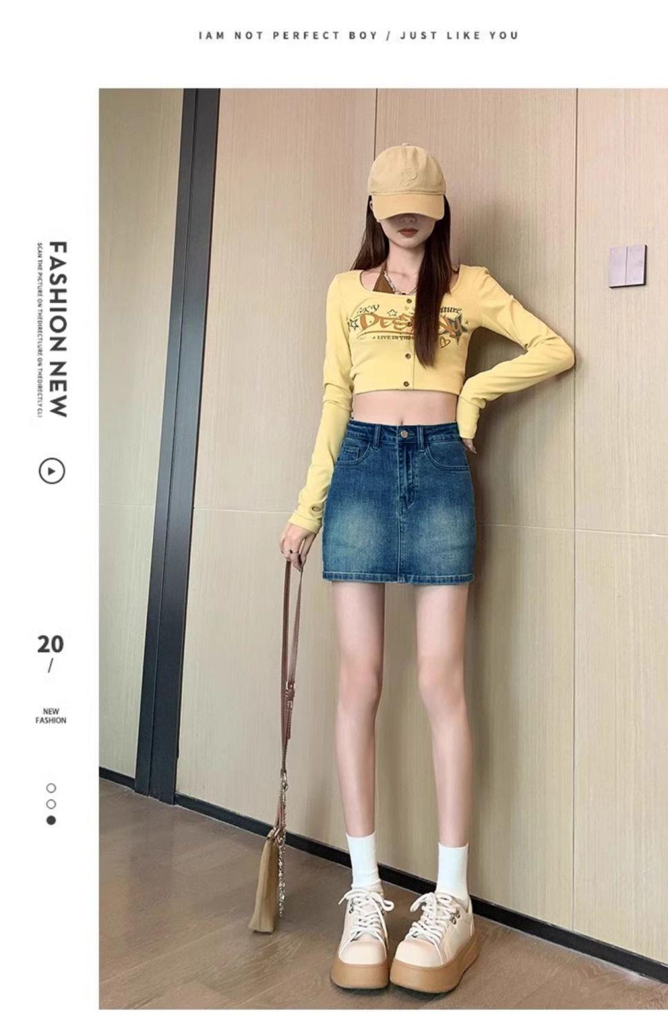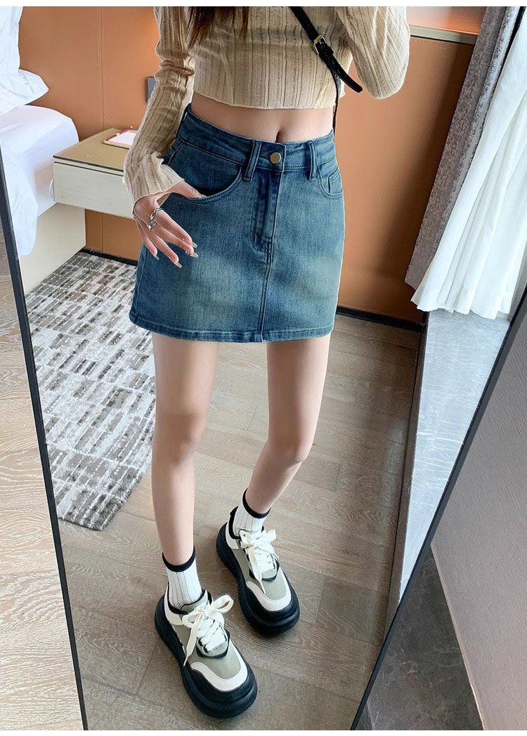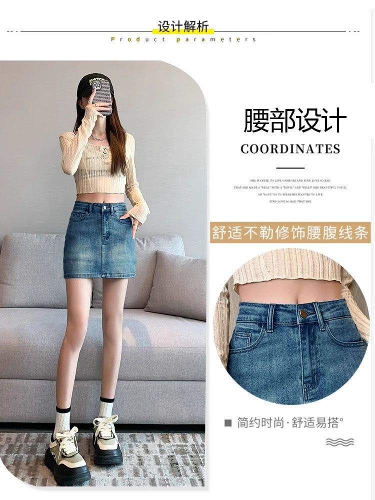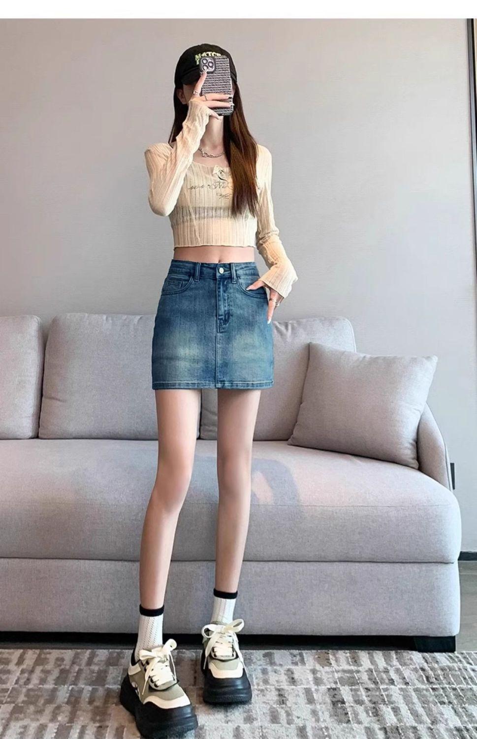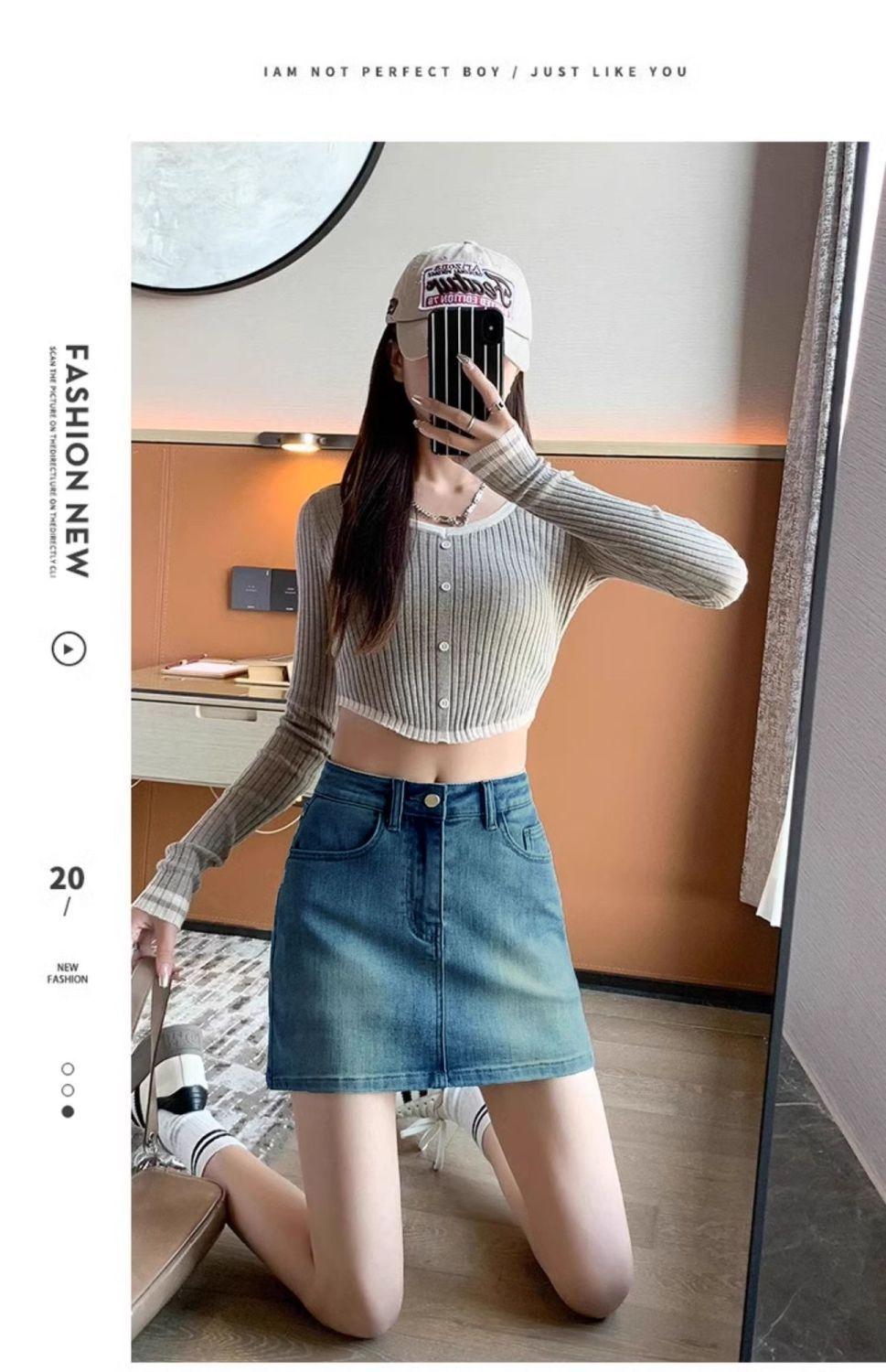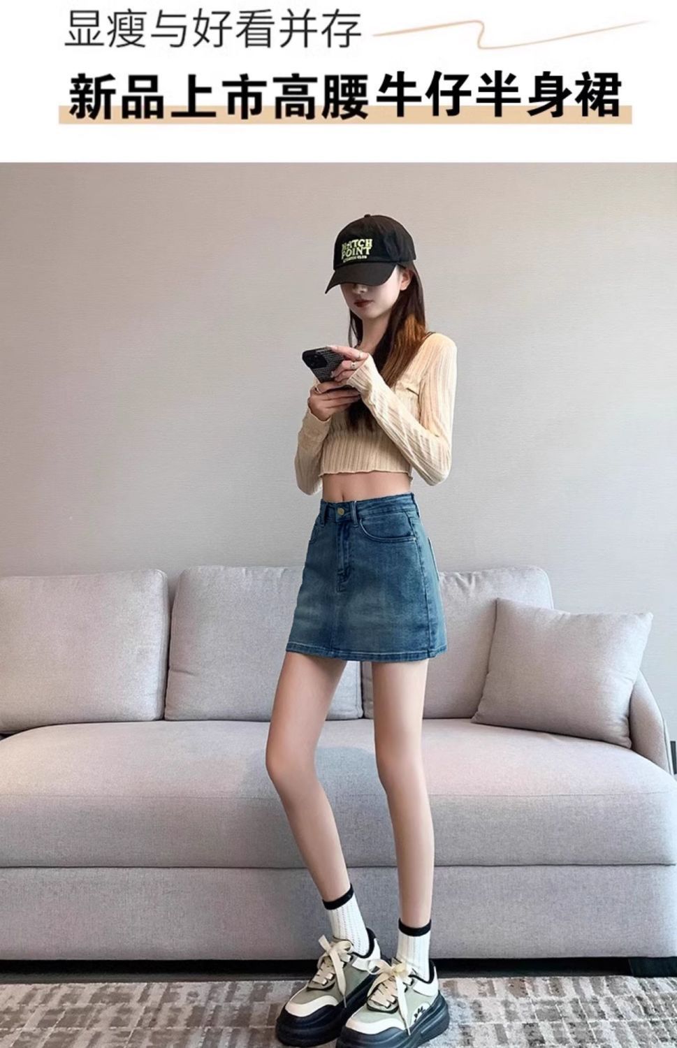 Falda Corta de Mezclilla de Cintura Alta Petite de Alta Gama 2025 Ropa Exterior Elástica Vintage Retro Falda Envolvente Mujeres a la Moda