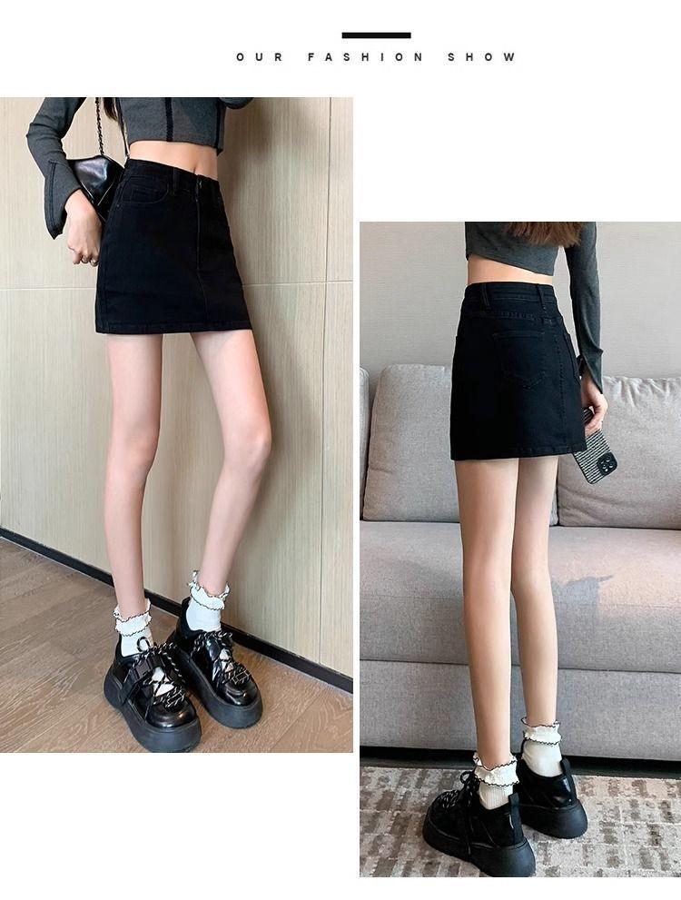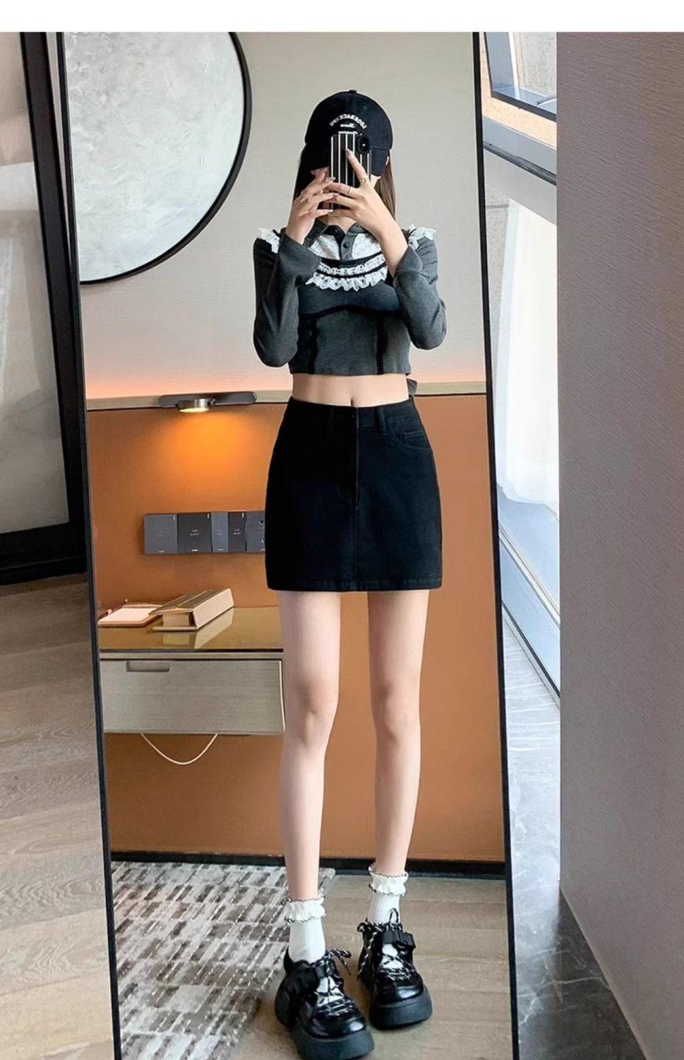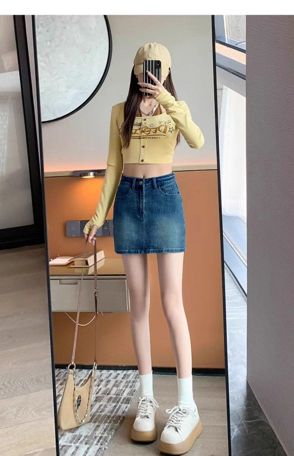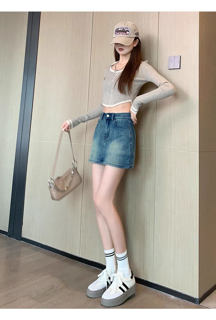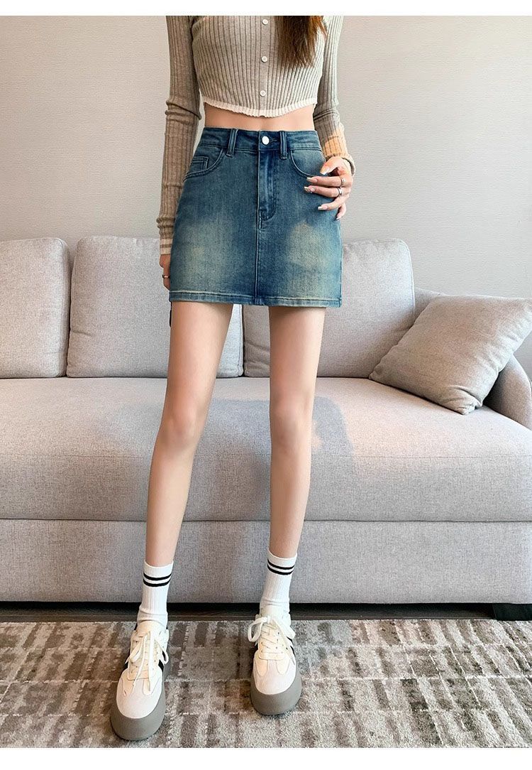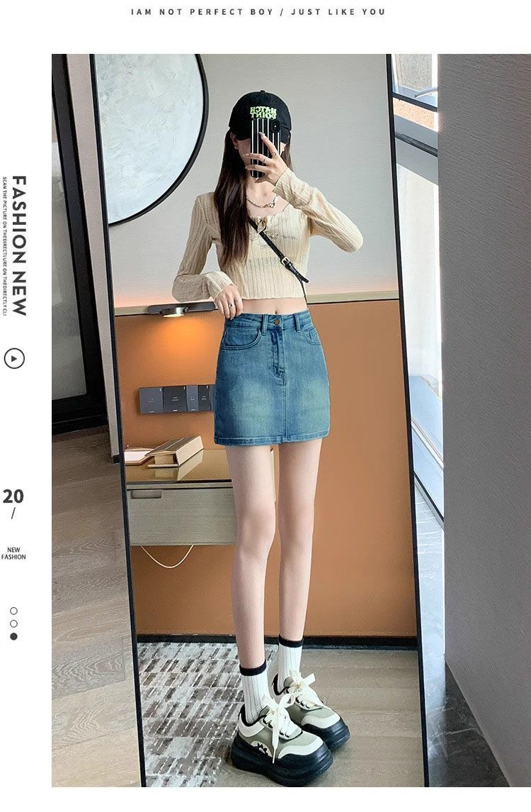 Falda Corta de Mezclilla de Cintura Alta Petite de Alta Gama 2025 Ropa Exterior Elástica Vintage Retro Falda Envolvente Mujeres a la Moda