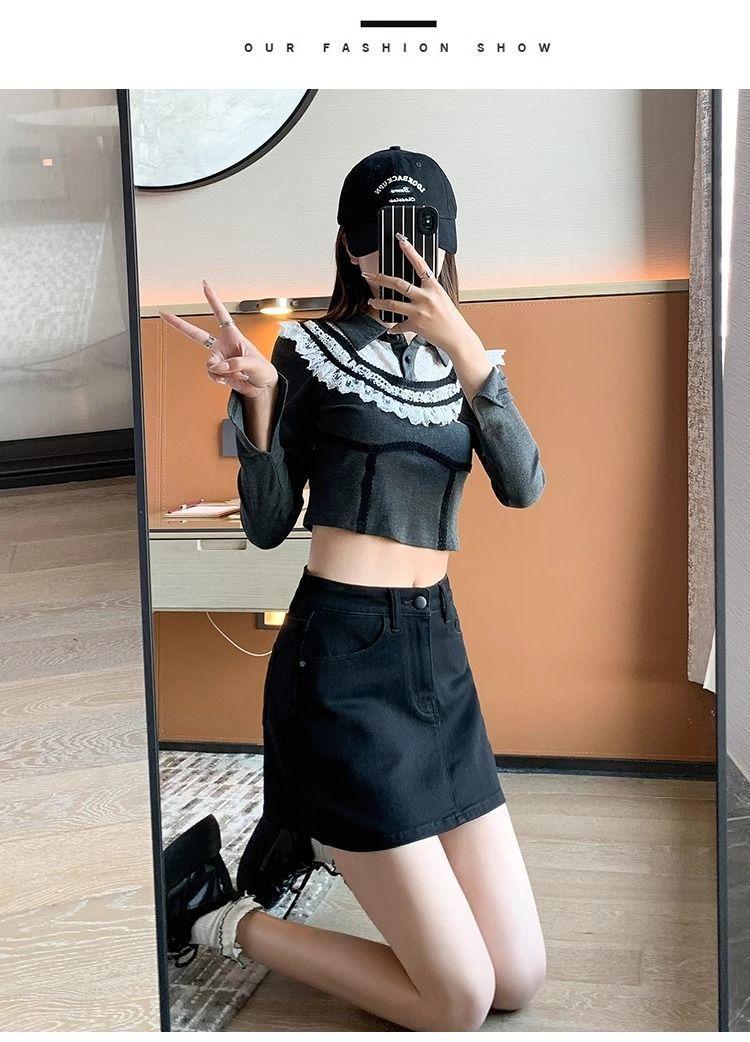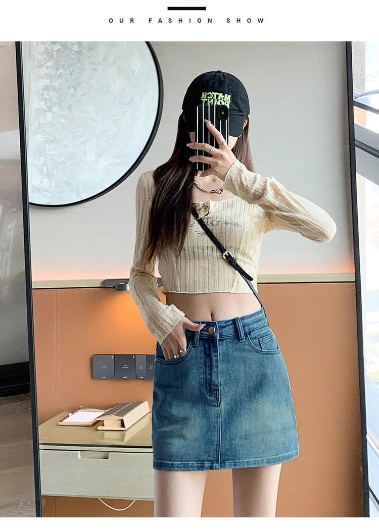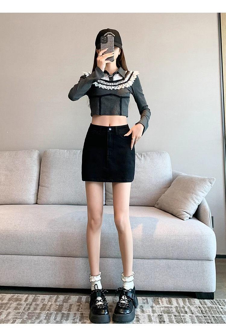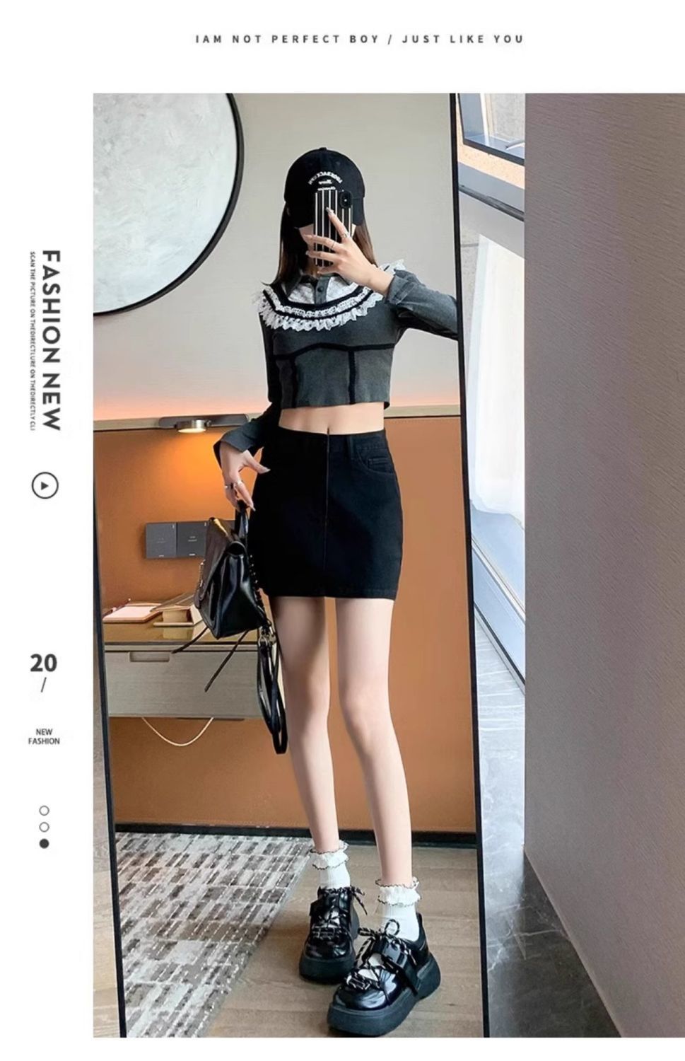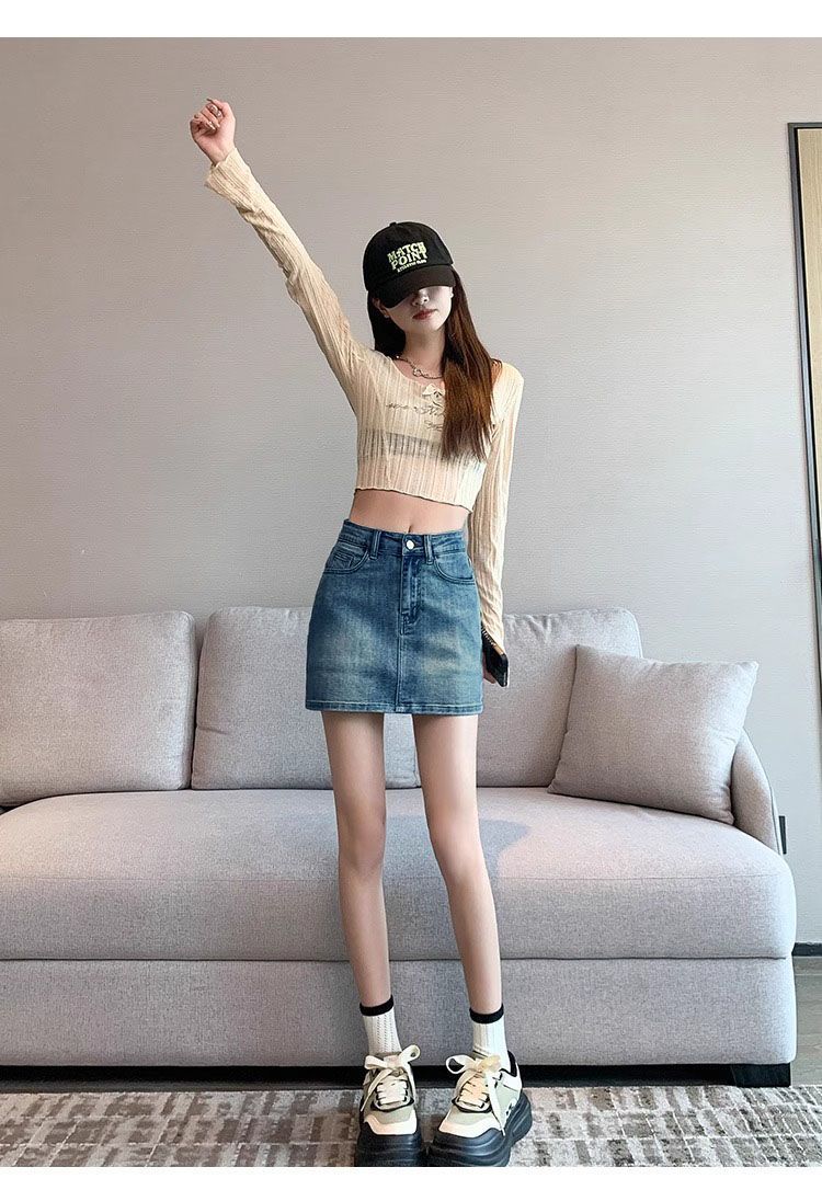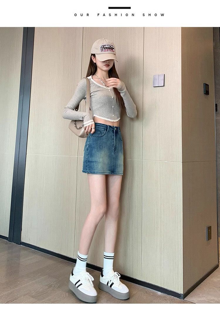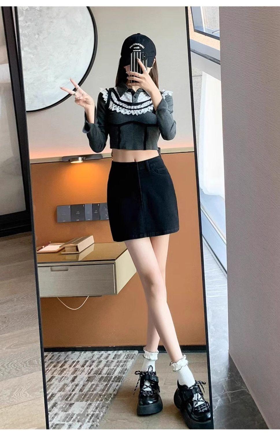 Falda Corta de Mezclilla de Cintura Alta Petite de Alta Gama 2025 Ropa Exterior Elástica Vintage Retro Falda Envolvente Mujeres a la Moda