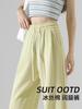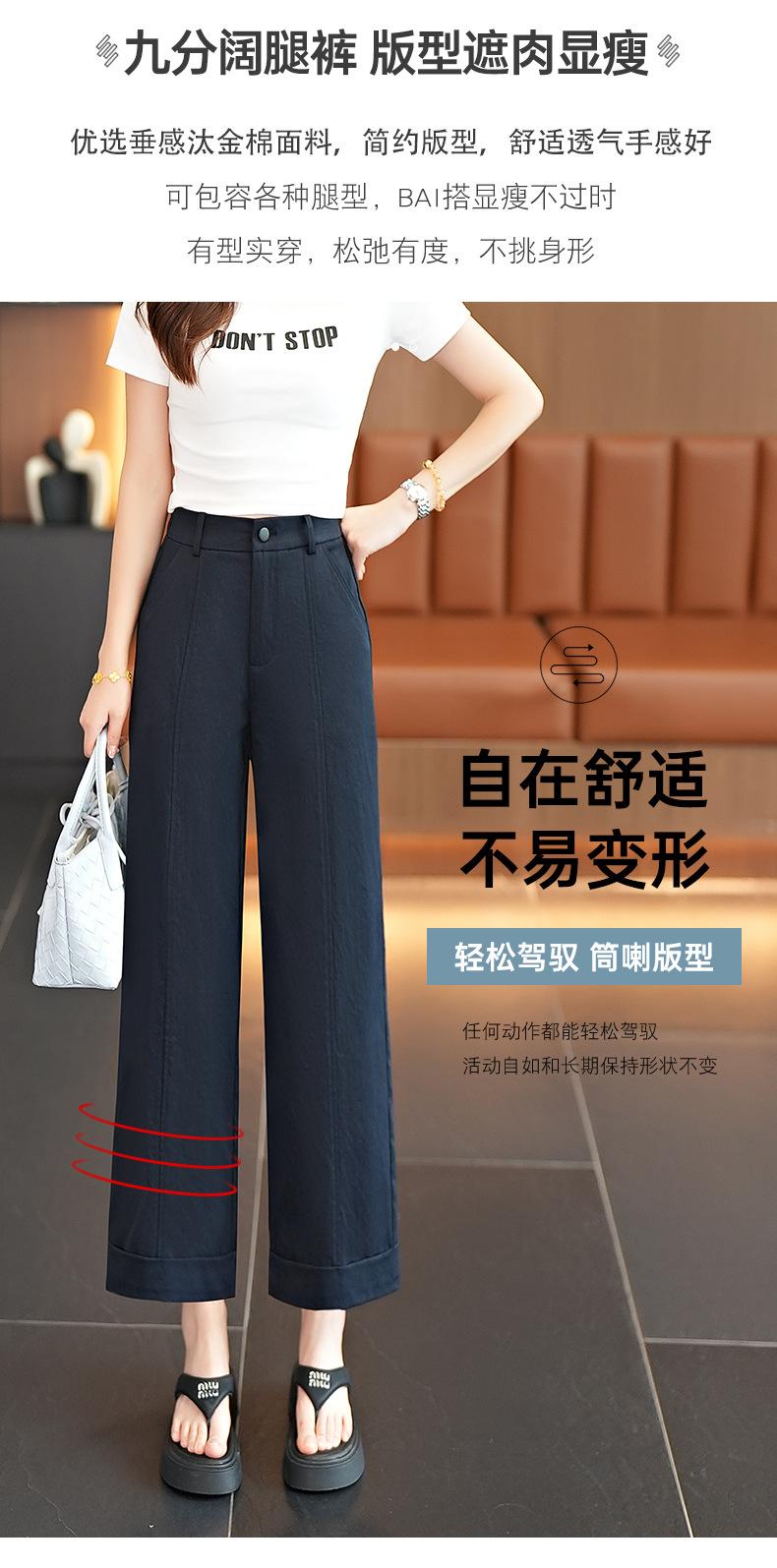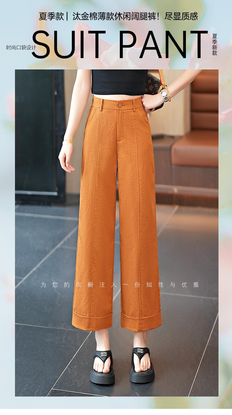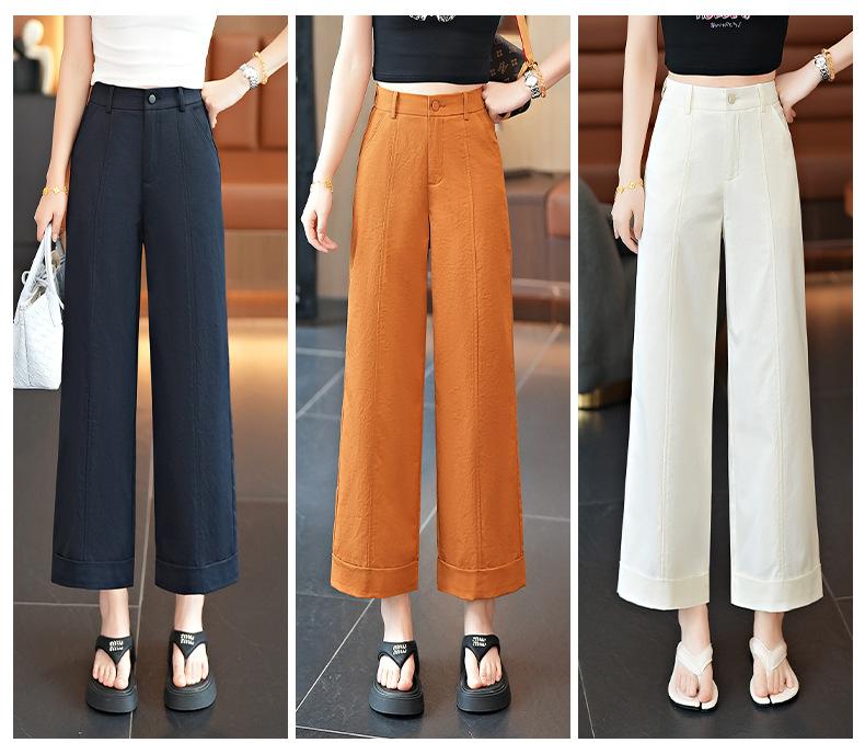 Pantalones Casuales de Pierna Ancha para Mujer, Verano Delgados de Cintura Alta Plisados Adelgazantes Casuales Recortados Rectos, Nuevo Modelo 2025
