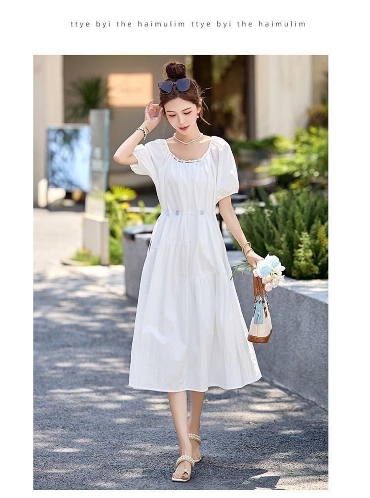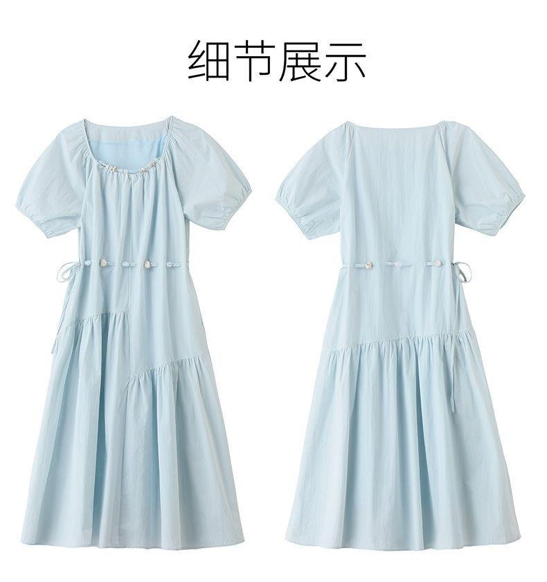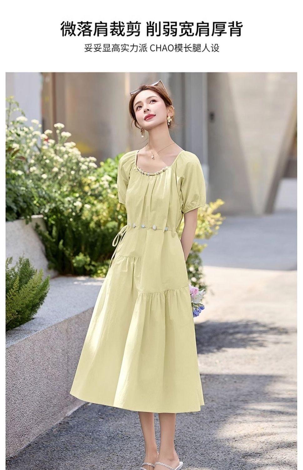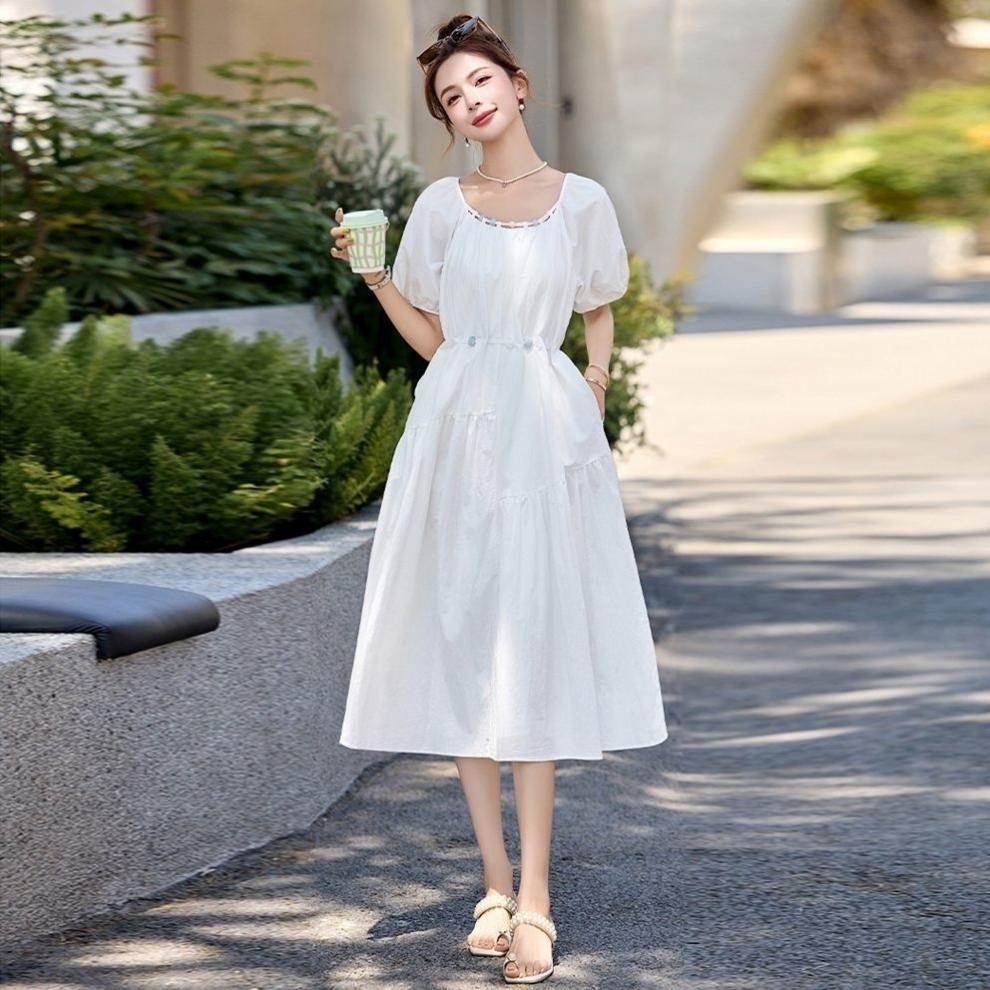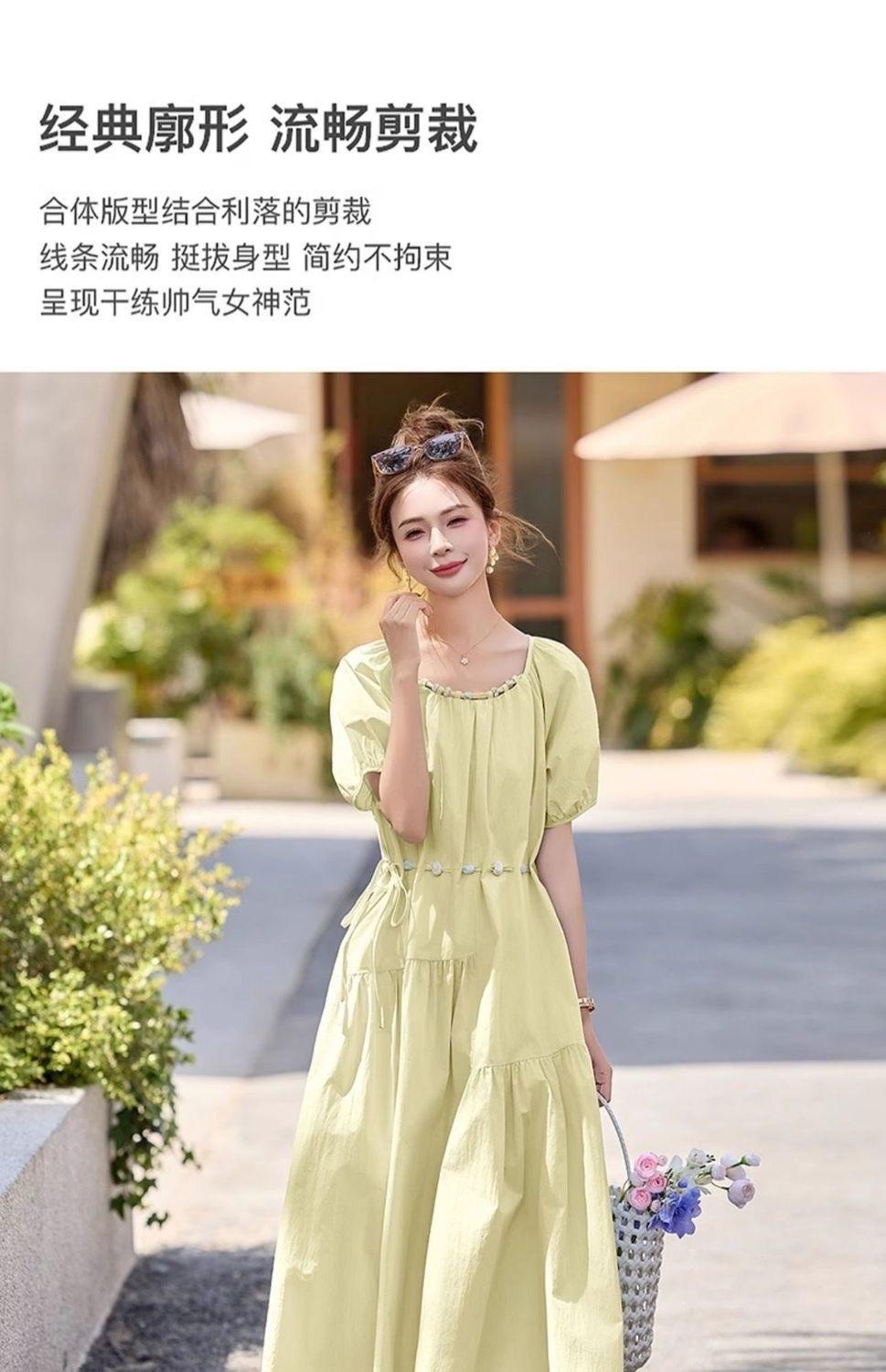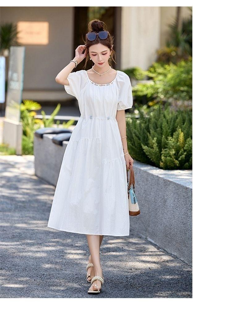 Vestido de Diseño Francés de Manga Abullonada para Mujer Productos Europeos 2025 Moda de Verano Casual Falda Midi