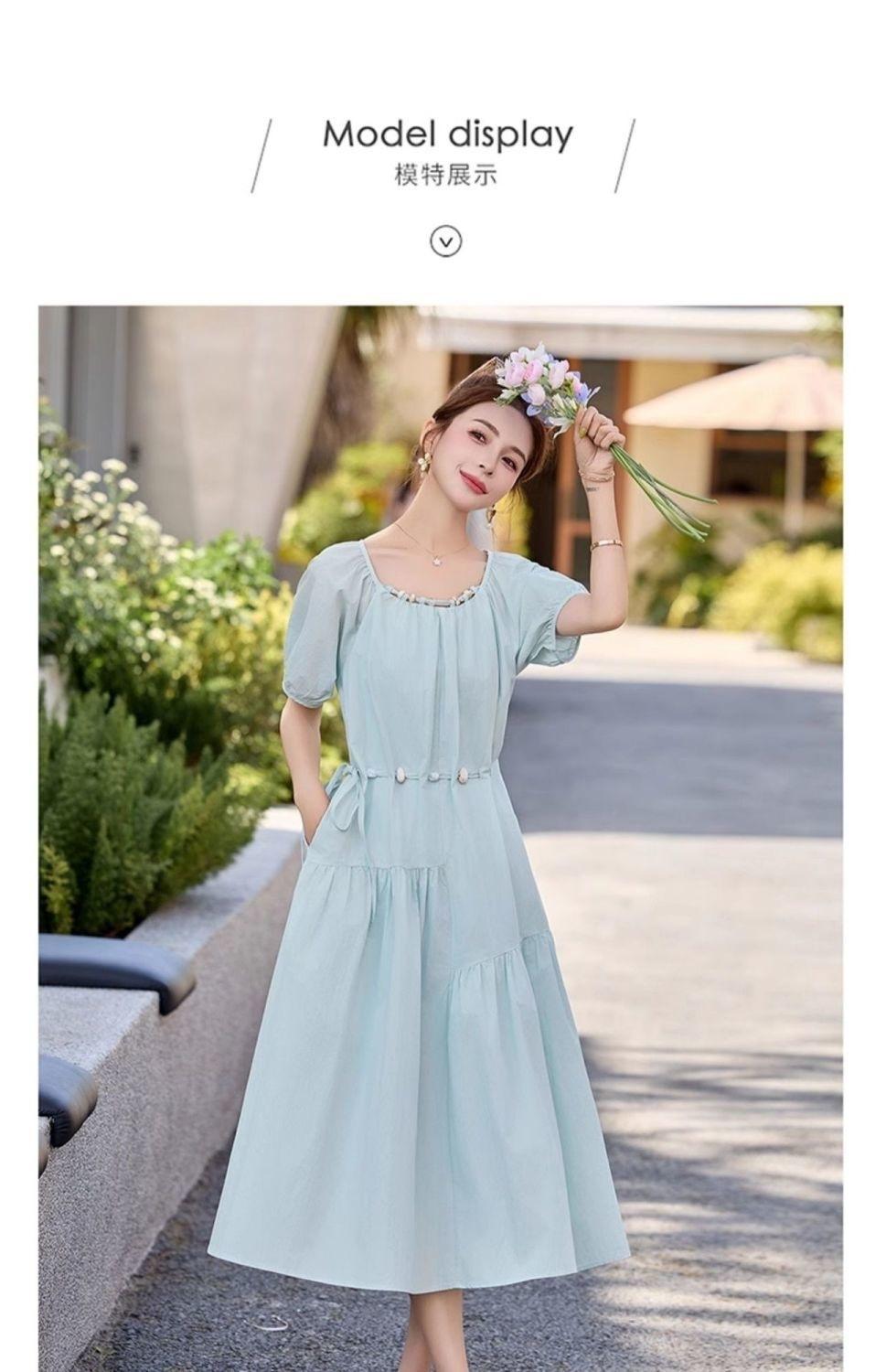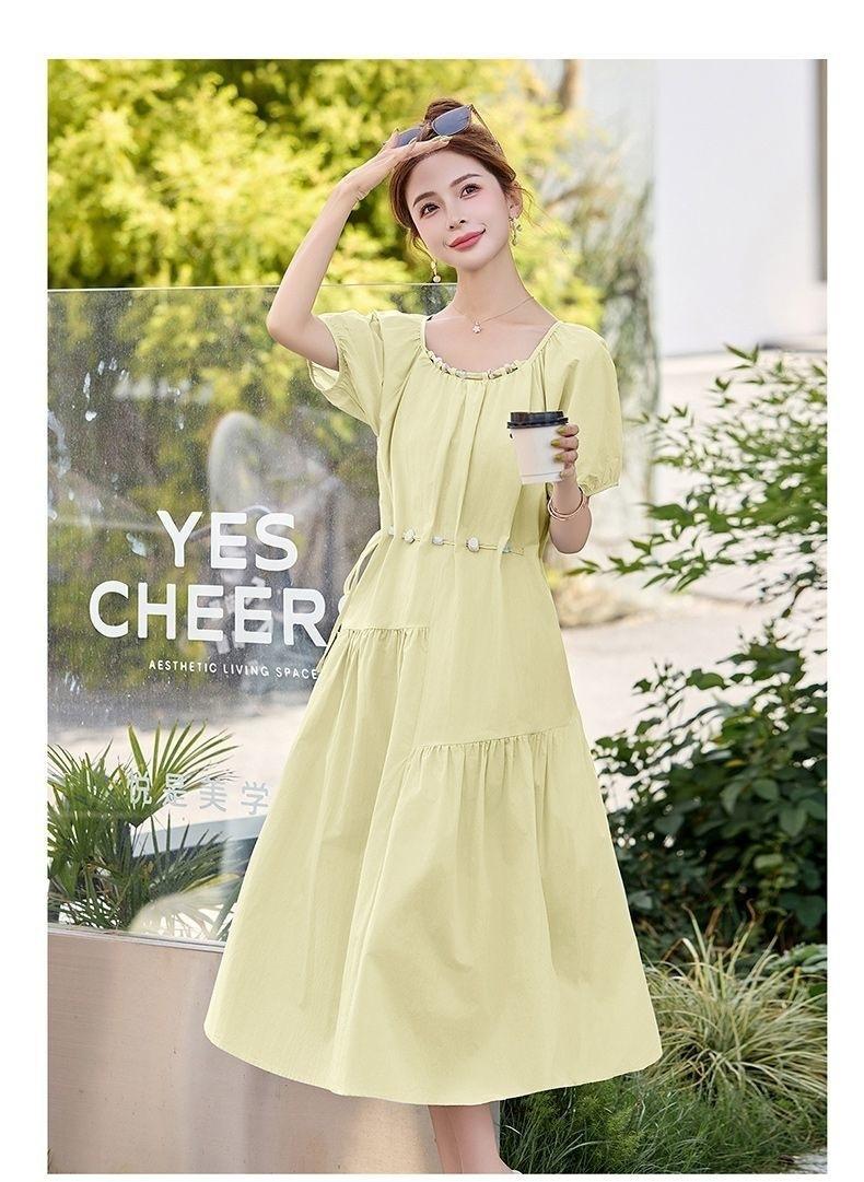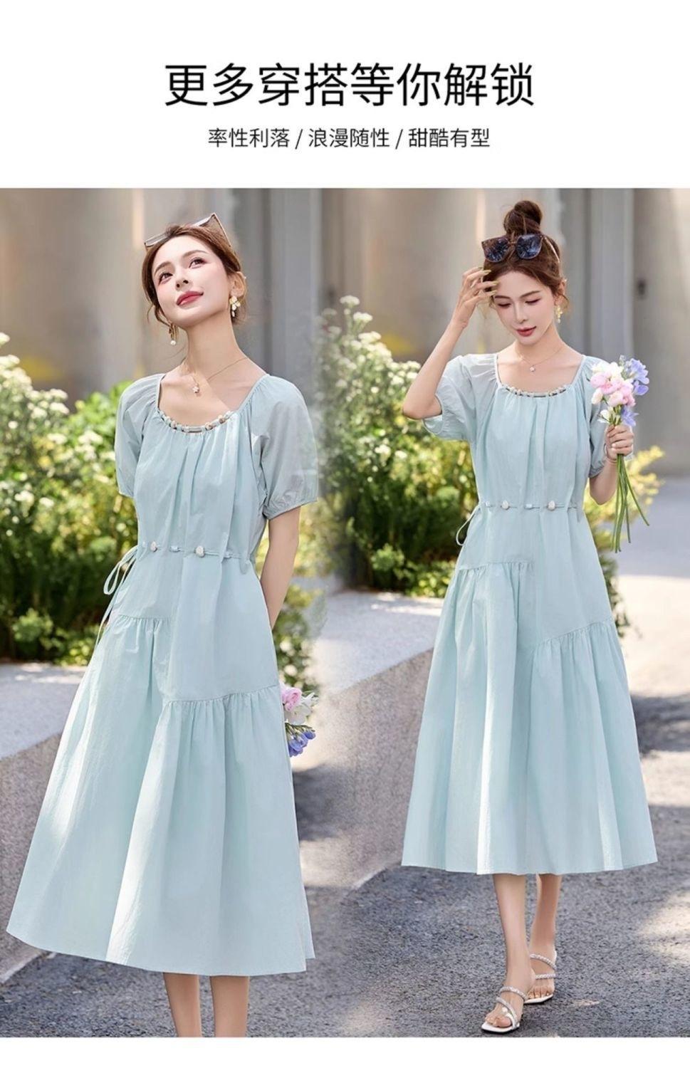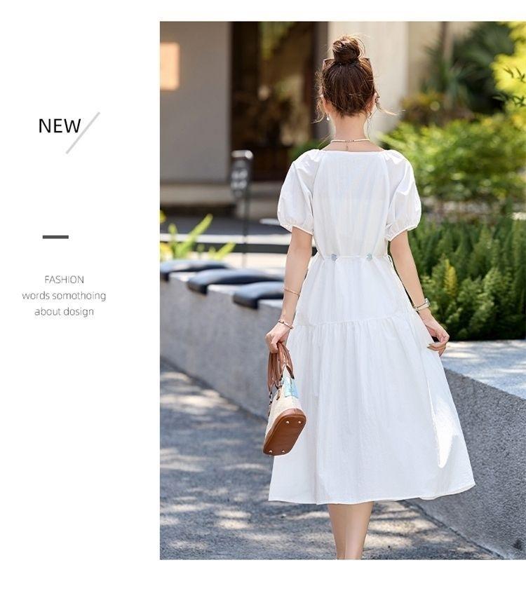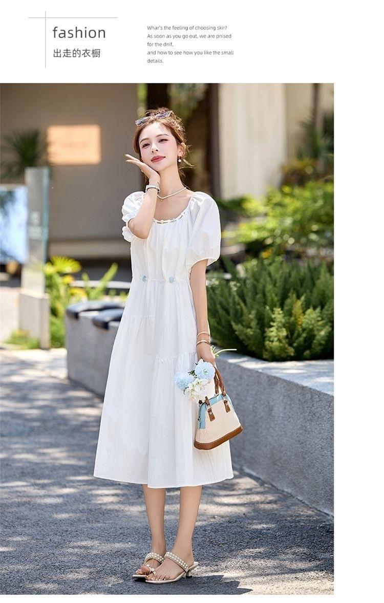 Vestido de Diseño Francés de Manga Abullonada para Mujer Productos Europeos 2025 Moda de Verano Casual Falda Midi