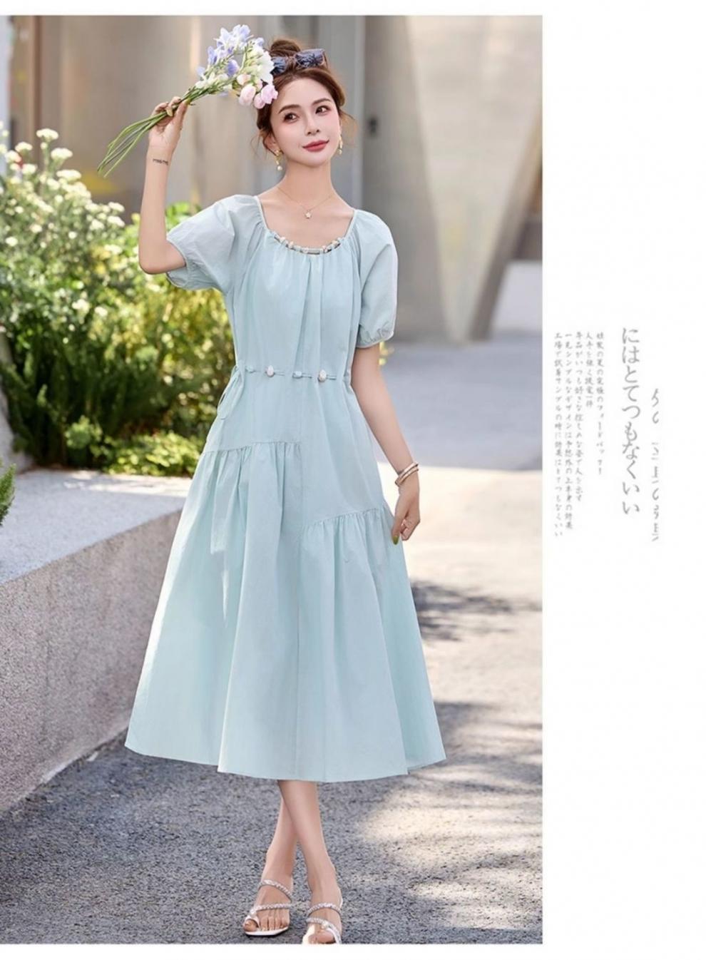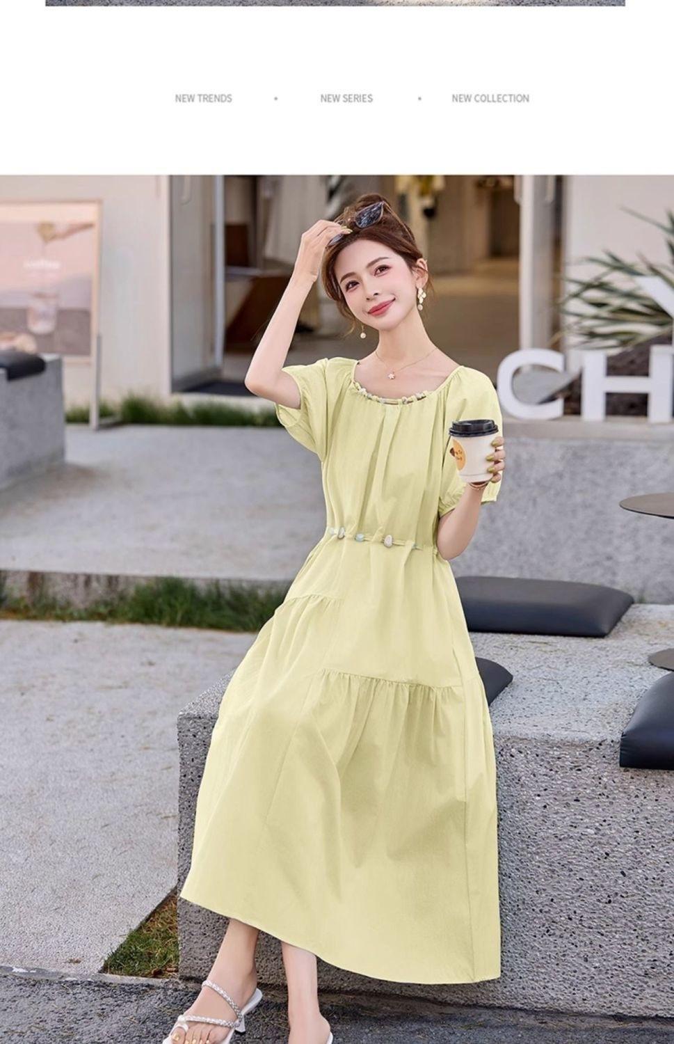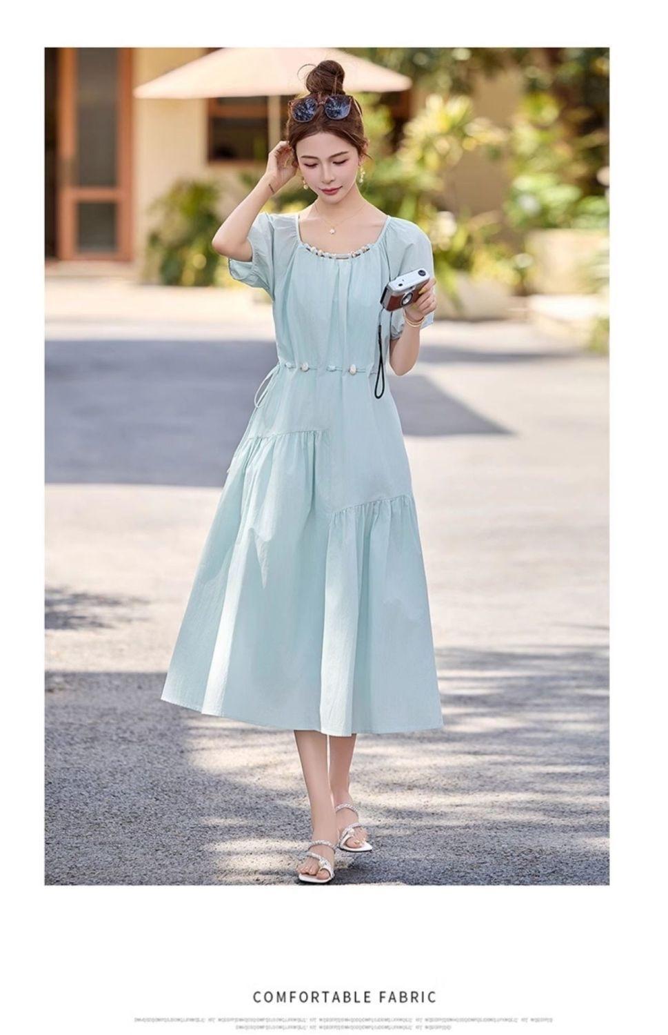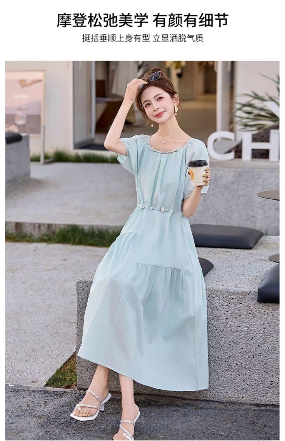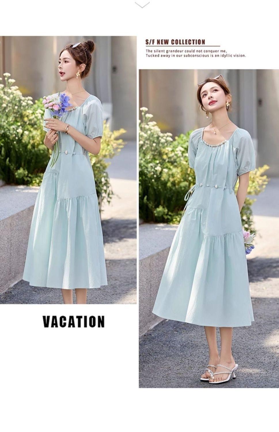 Vestido de Diseño Francés de Manga Abullonada para Mujer Productos Europeos 2025 Moda de Verano Casual Falda Midi