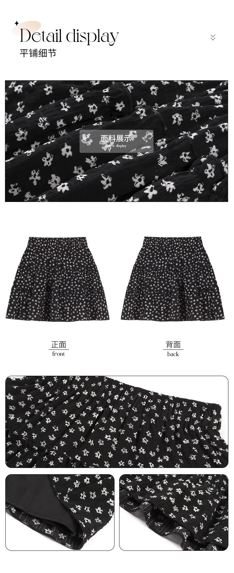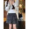 Falda floral negra estilo coreano para mujer verano 2024 nueva falda pastel falda pequeña acampanada falda corta