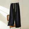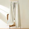 Pantalones de Algodón Capullo Blancos de Pierna Ancha para Mujer 2025 Nuevo Verano Delgados Cintura Alta Aspecto Adelgazante Sueltos Drapeados Rectos