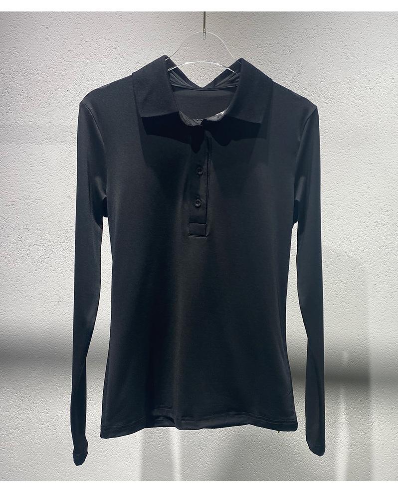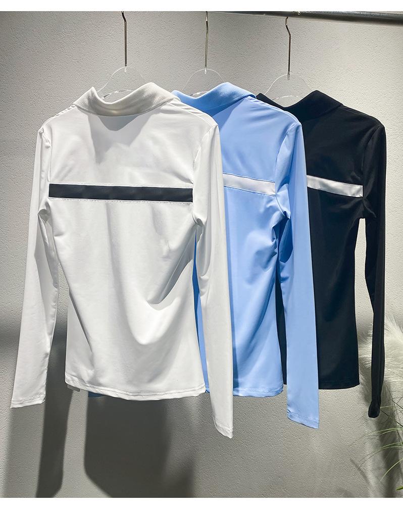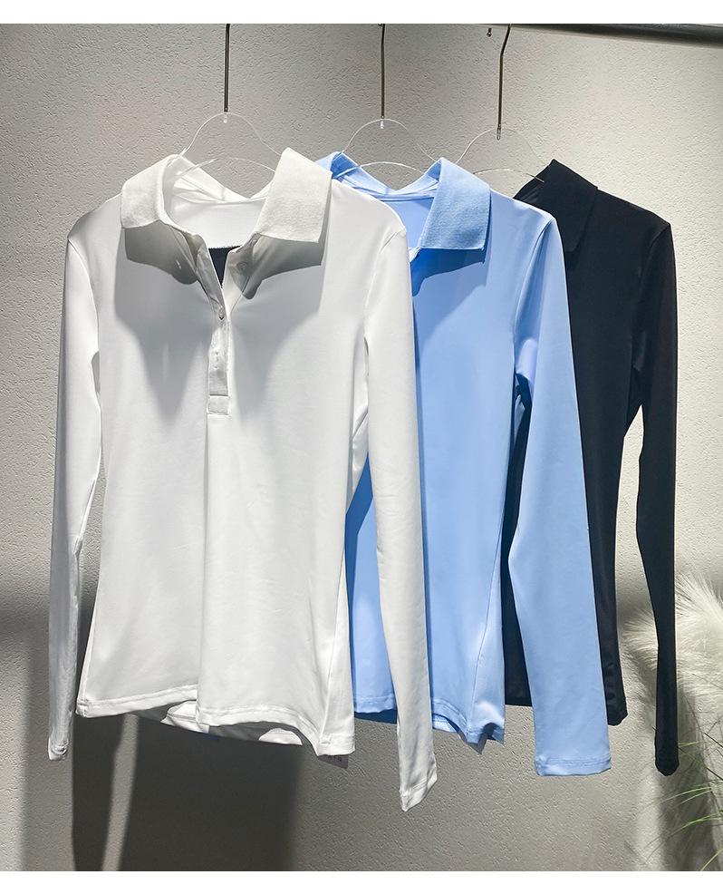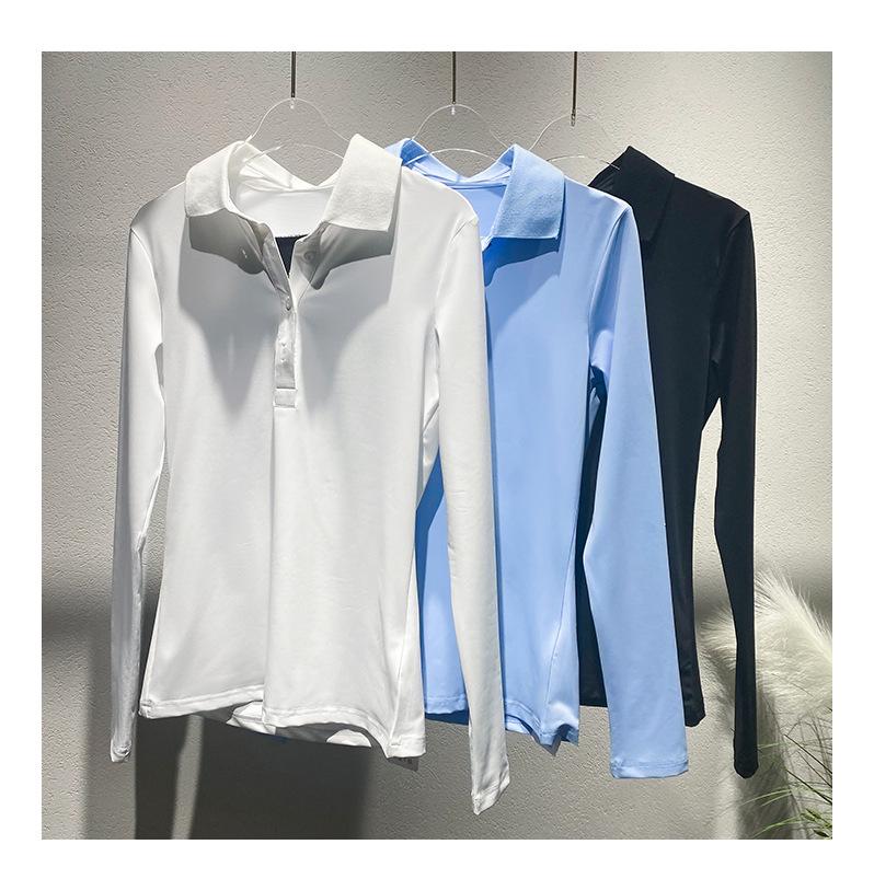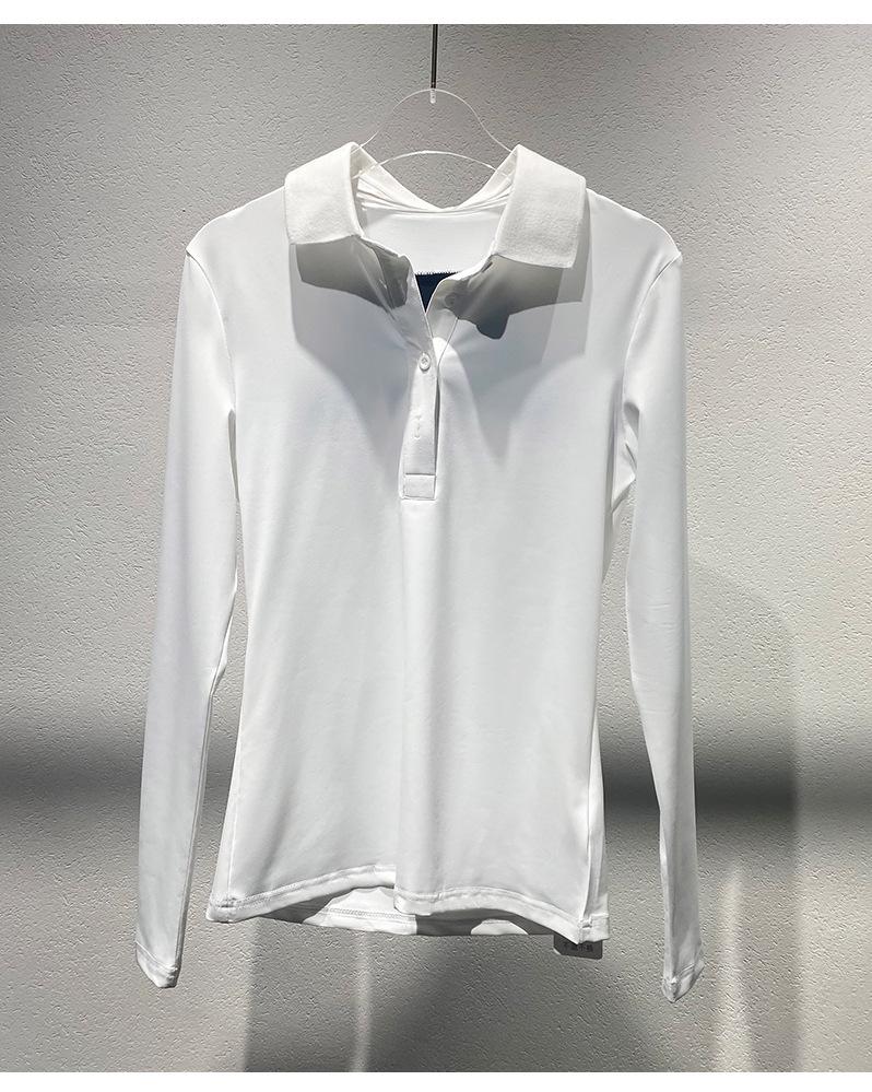 Camiseta Polo Deportiva de Ocio de Golf 2024 Primavera y Verano Nueva Solapa Ajustada Versátil Manga Larga Top para Mujer