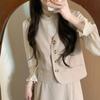 Nuevo Cárdigan Dulce Francés de Primavera Otoño para Mujer Chaleco Chaleco Ropa Exterior Ropa Interior Camisa Falda Midi Conjunto de Tres Piezas