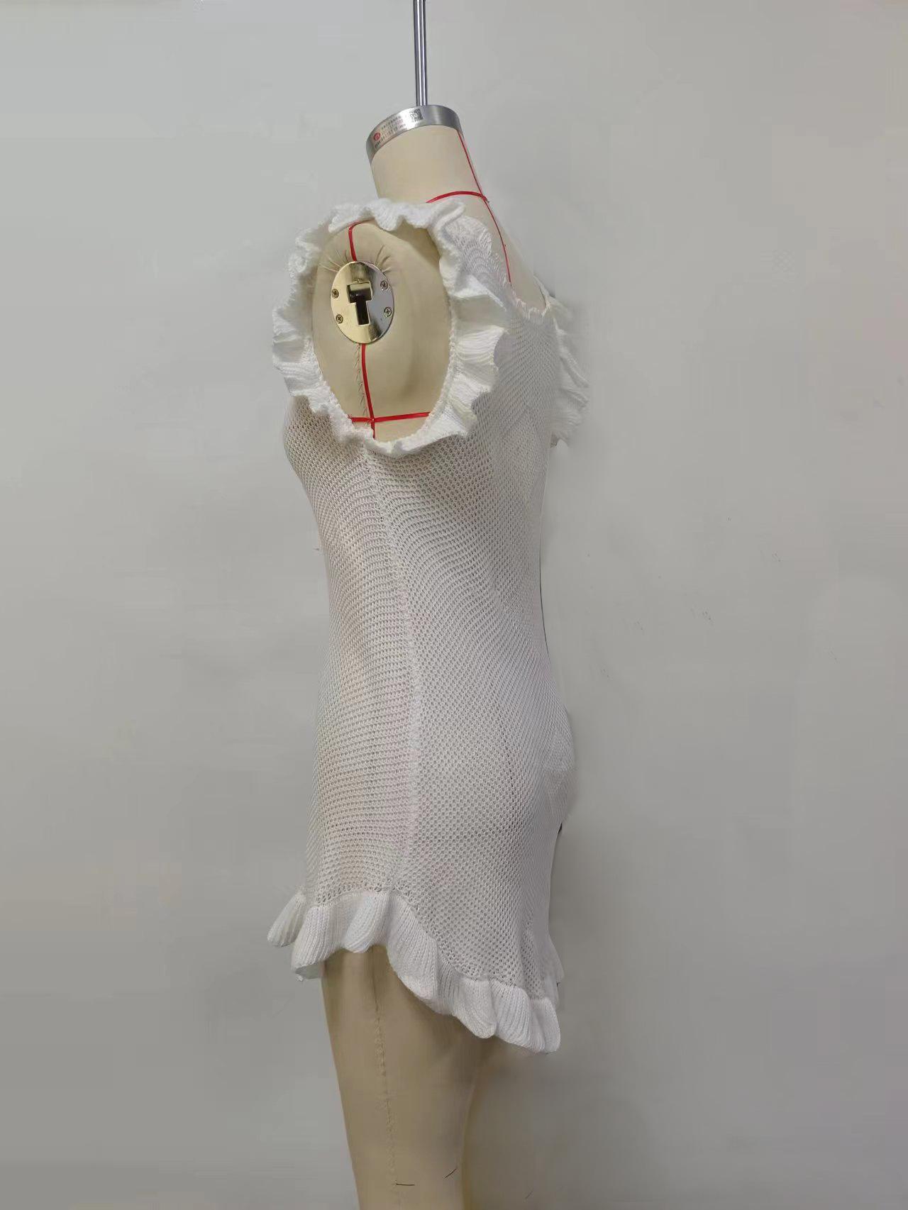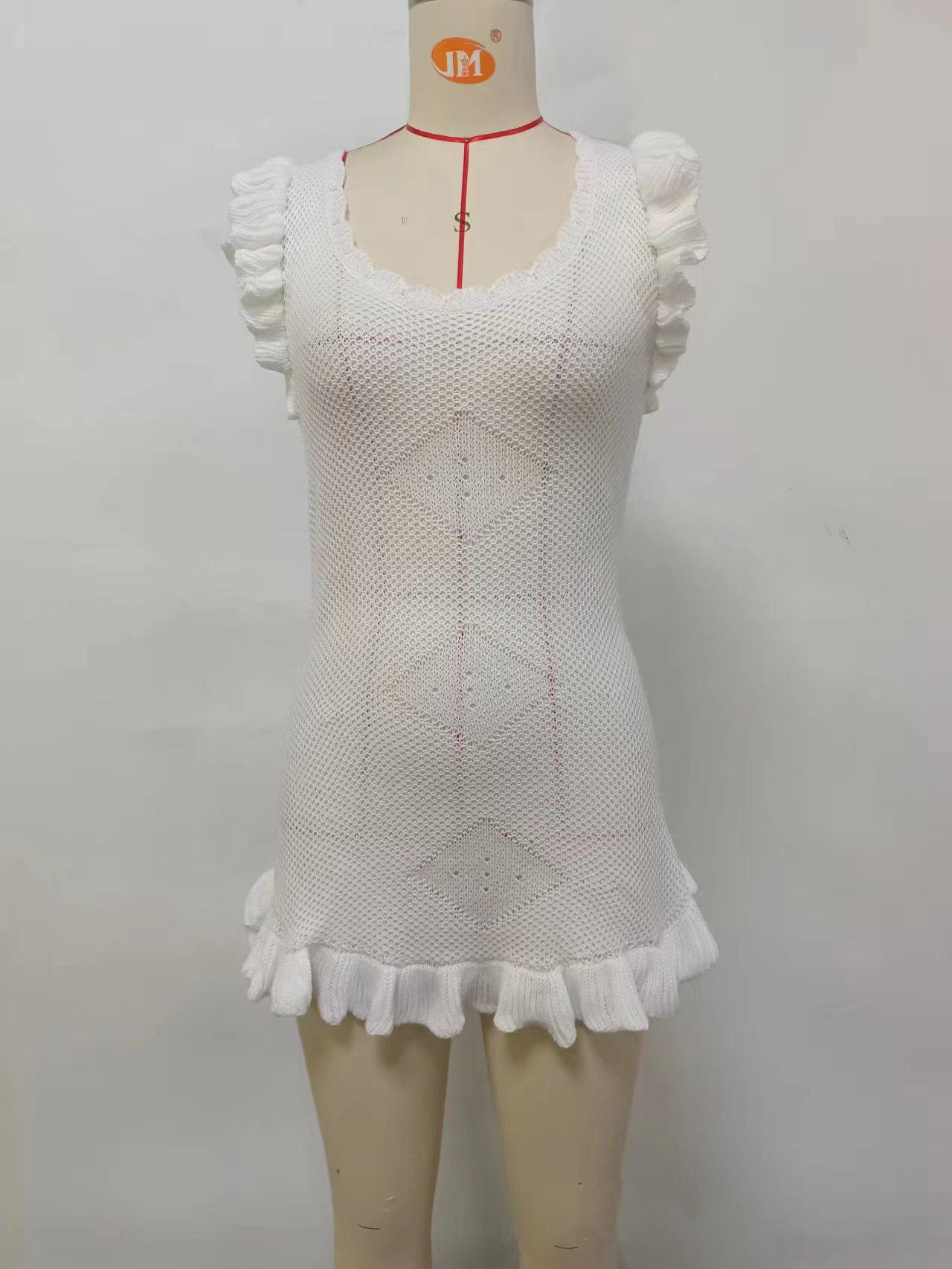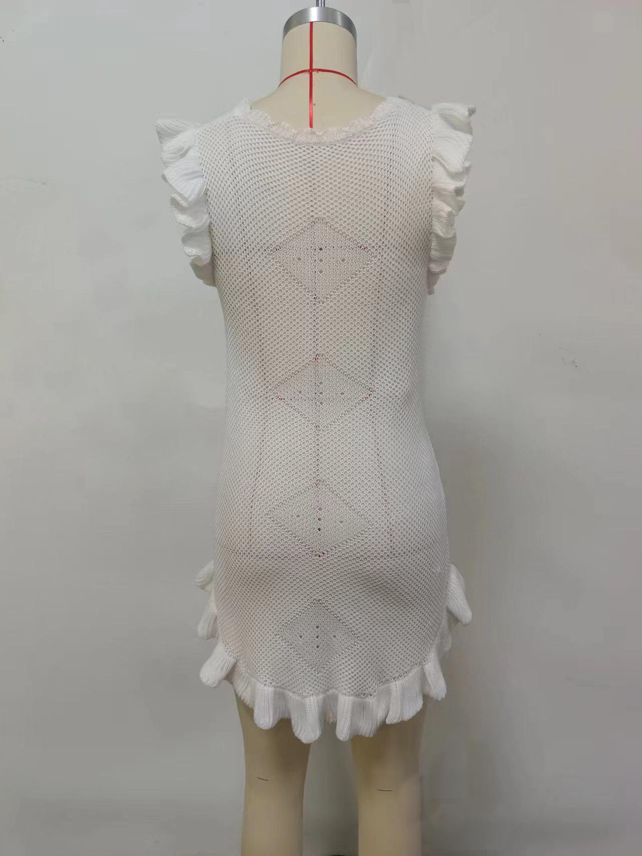Vestido de Playa Nuevo de Verano Europeo y Americano para Mujer Color Sólido Sexy Tejido Calado Bikini de Playa Traje de Baño Vestido de Mujer