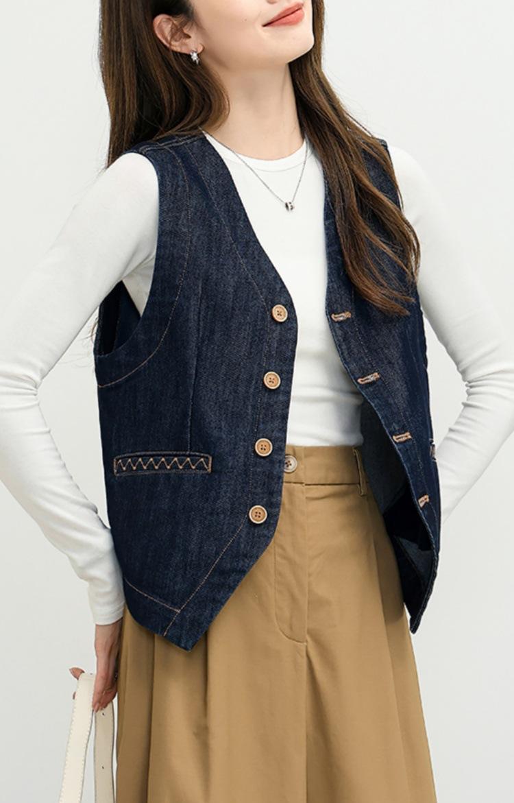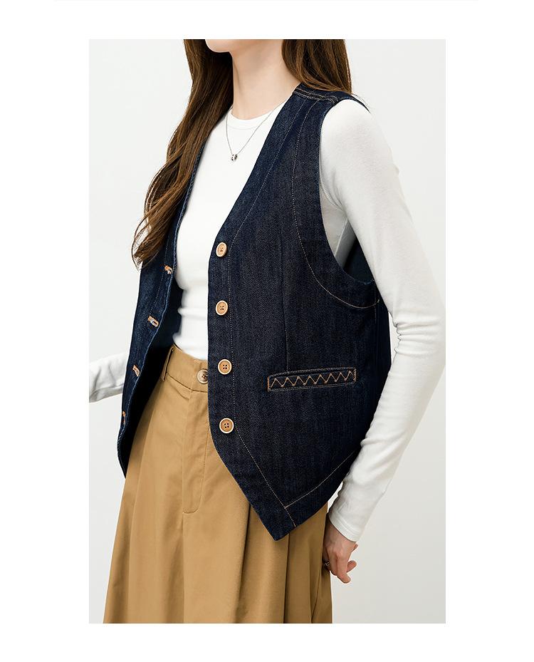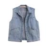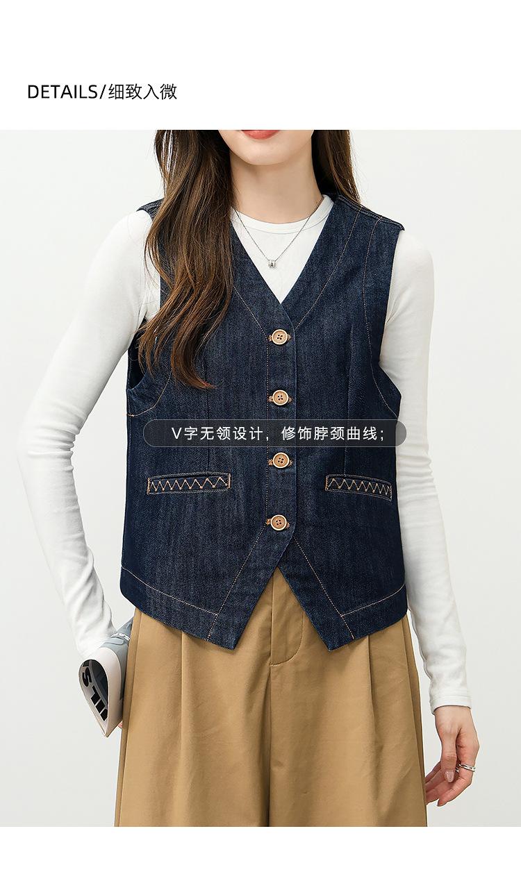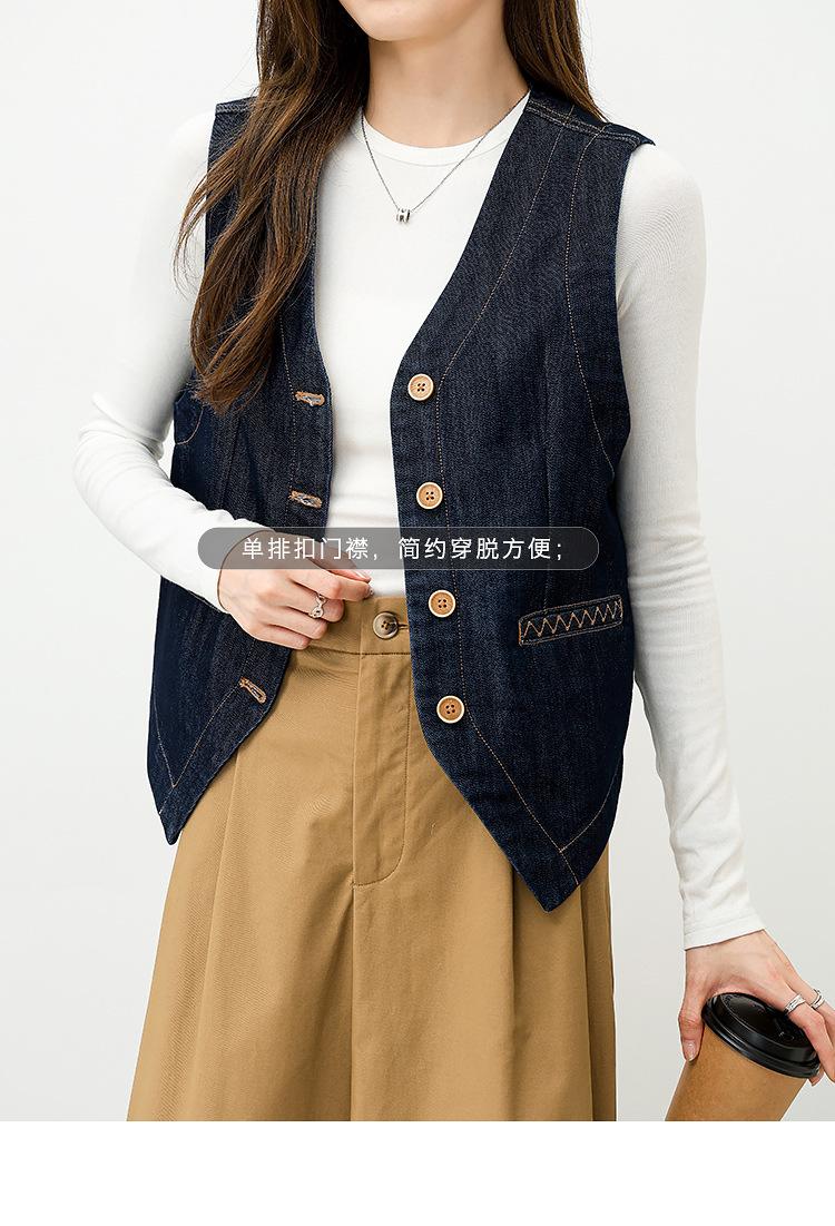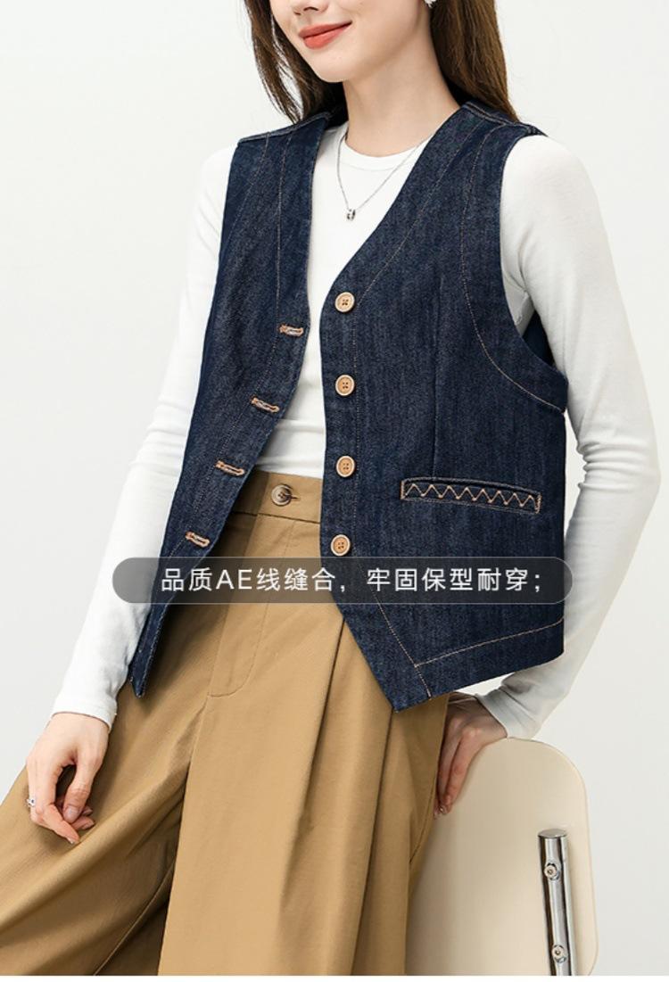 Chaleco de mezclilla cruda estilo otoño personalizado 25 Diseño de moda Cuello en V Sin mangas Adelgazante Chaleco de mezclilla
