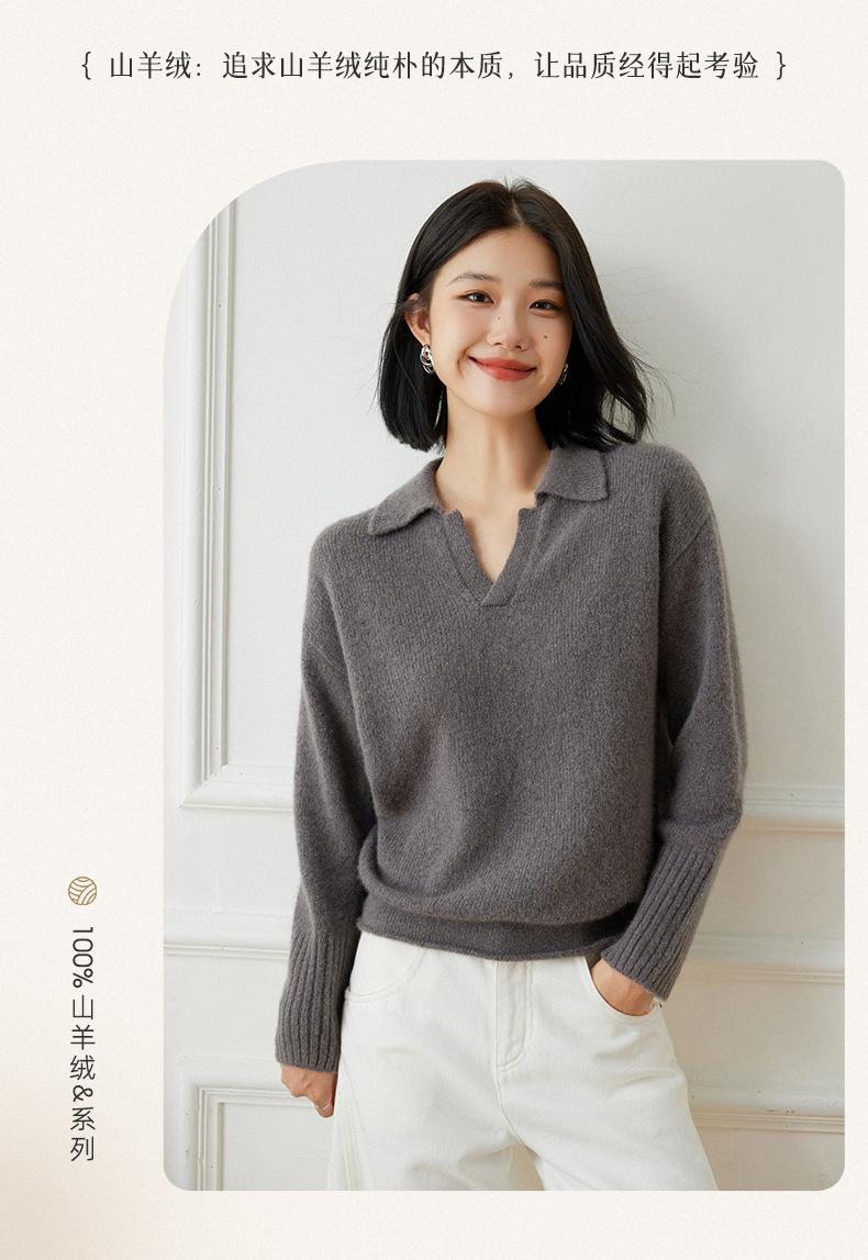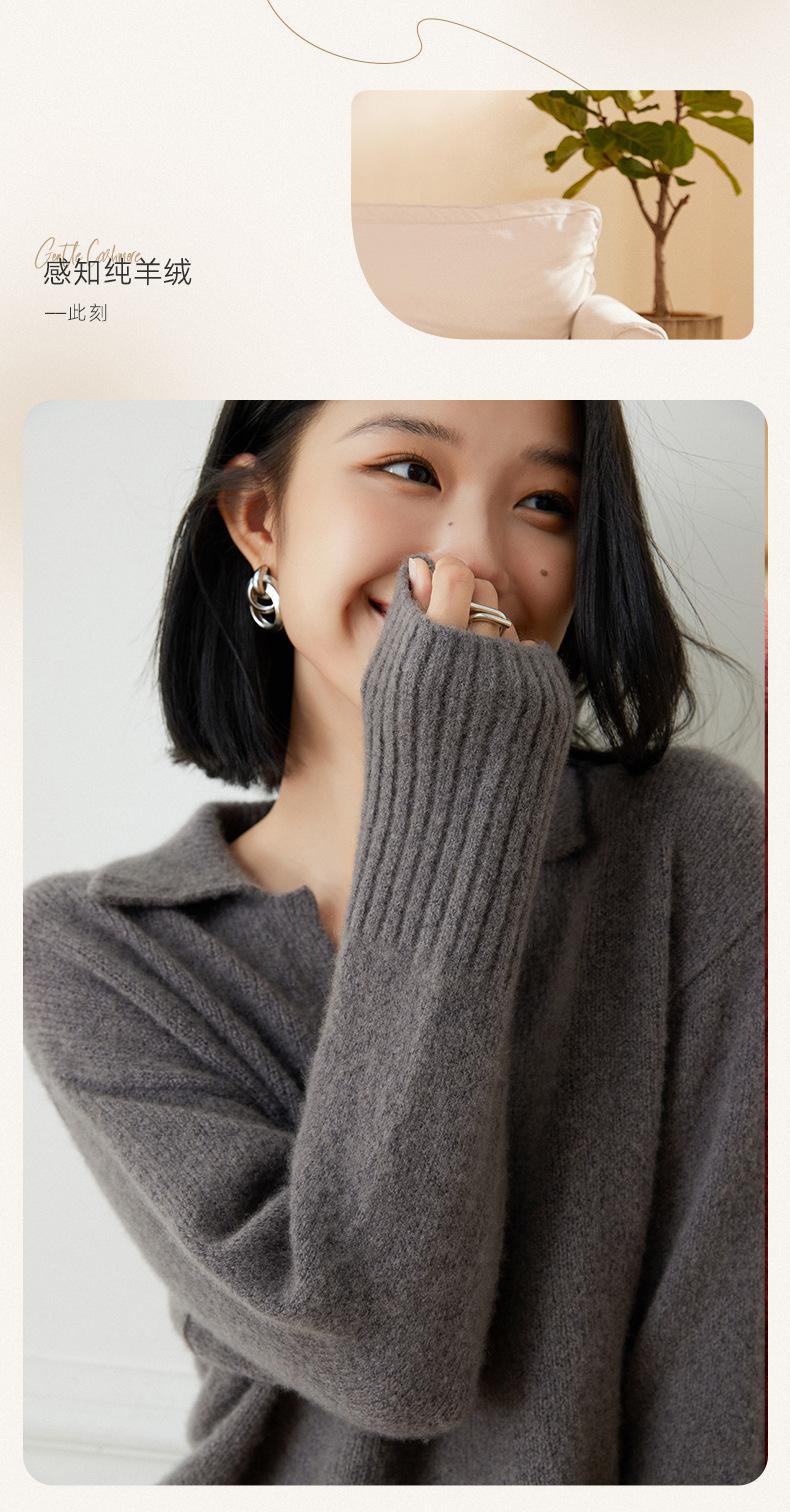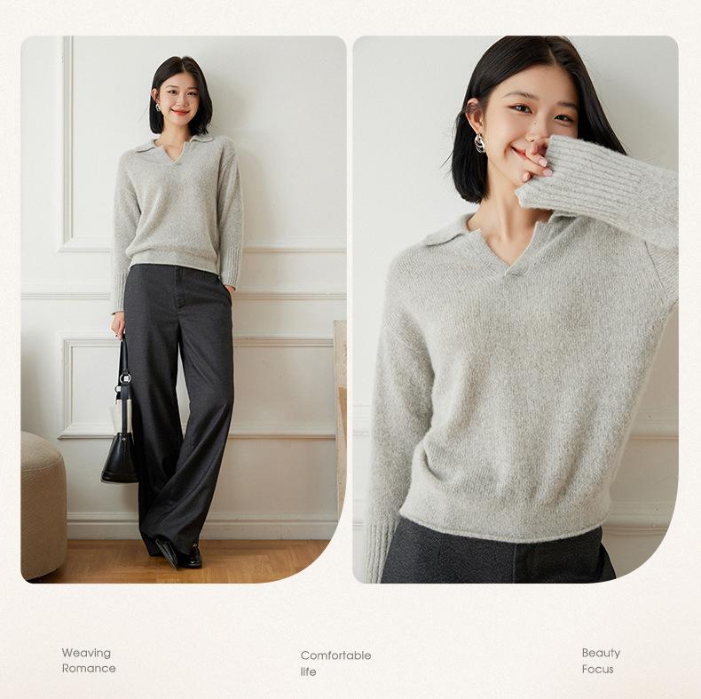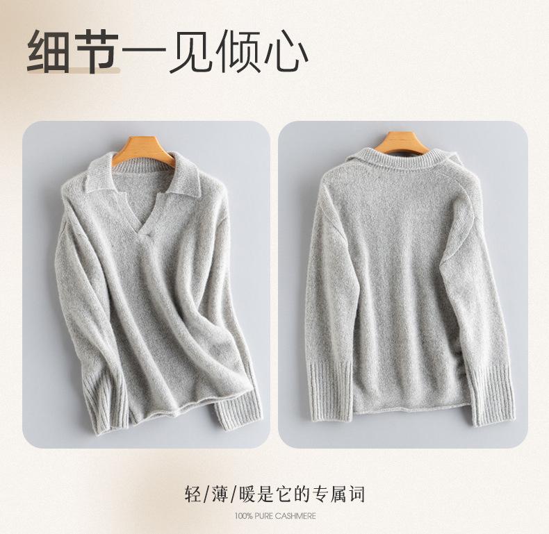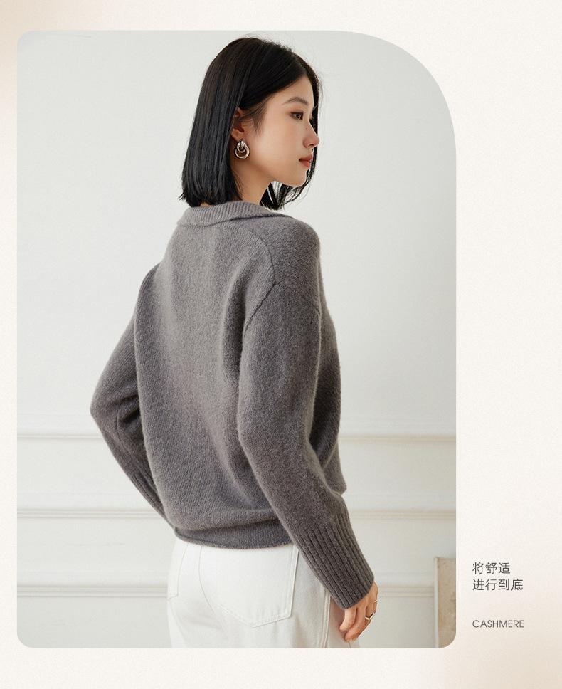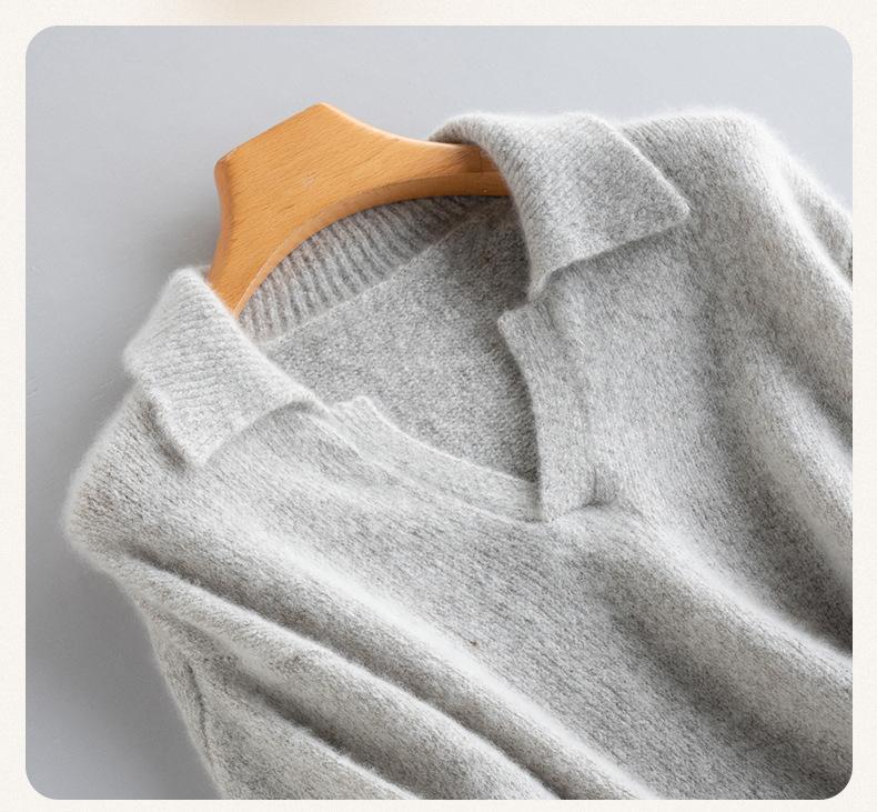 Suéter de Punto Minimalista Casual Holgado con Cuello Polo para Mujer 100% Cachemira Pura Otoño e Invierno Nueva Moda Capa Base Versátil
