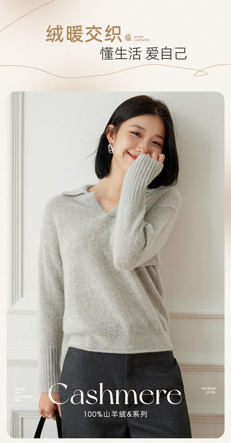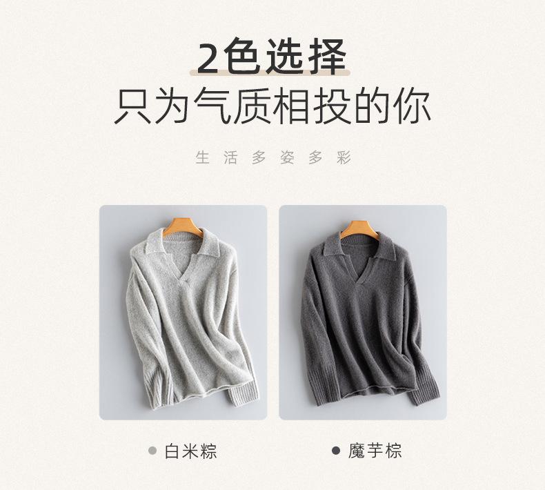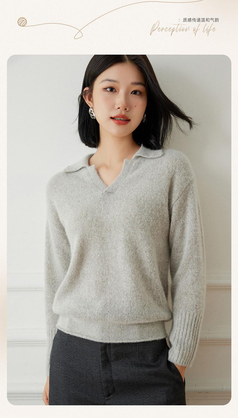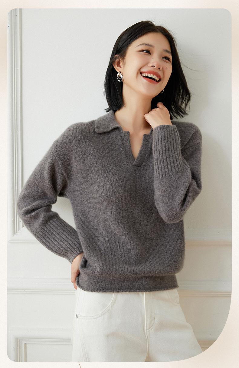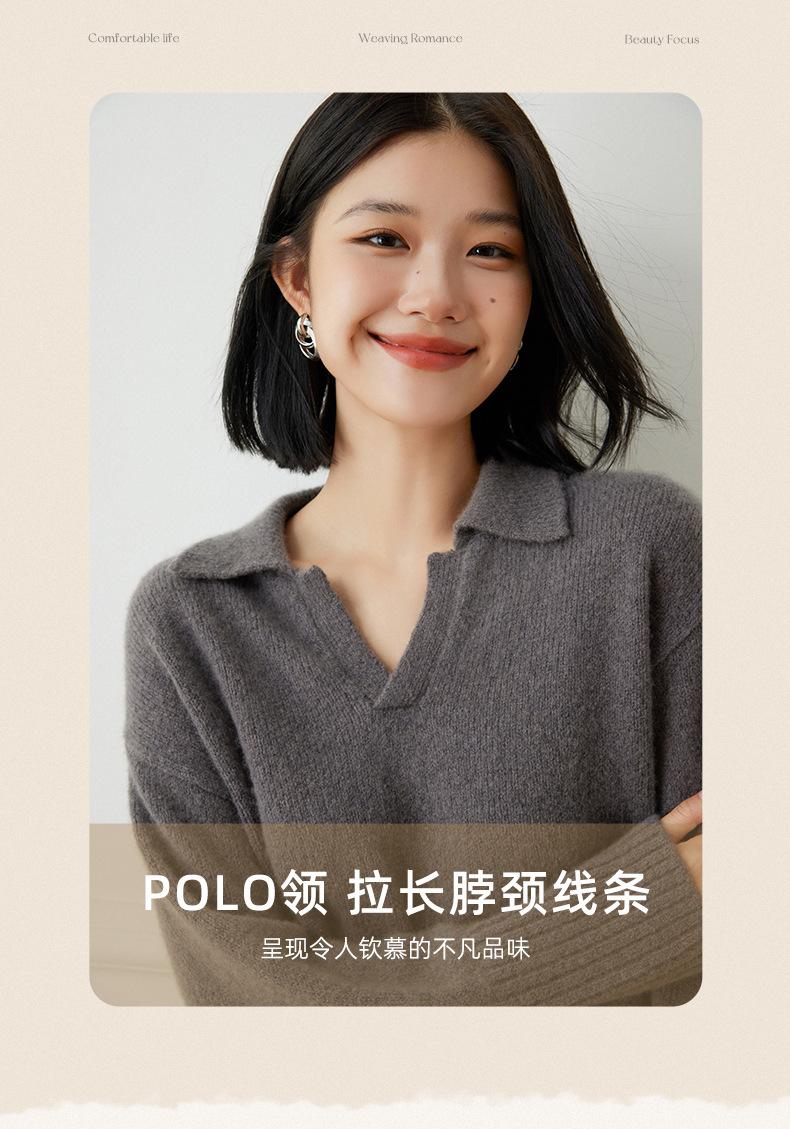 Suéter de Punto Minimalista Casual Holgado con Cuello Polo para Mujer 100% Cachemira Pura Otoño e Invierno Nueva Moda Capa Base Versátil