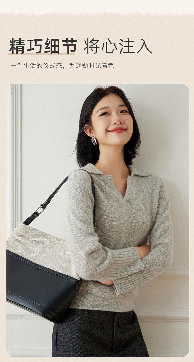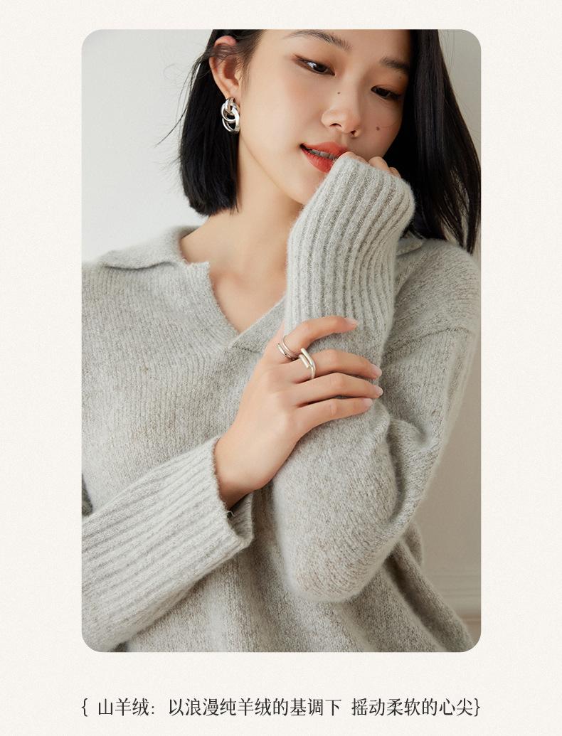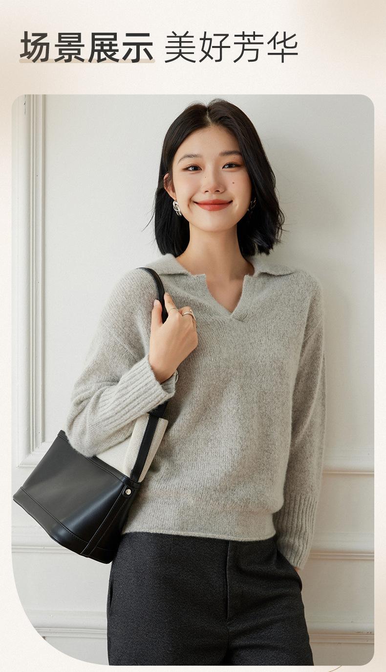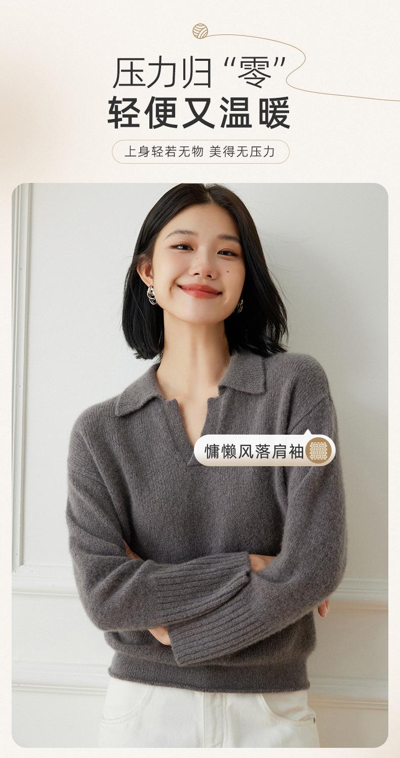 Suéter de Punto Minimalista Casual Holgado con Cuello Polo para Mujer 100% Cachemira Pura Otoño e Invierno Nueva Moda Capa Base Versátil